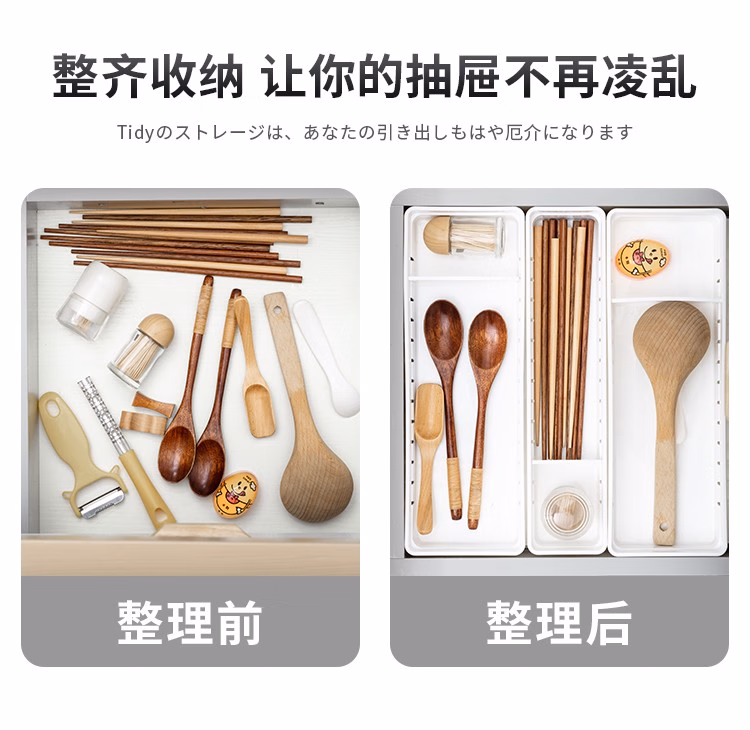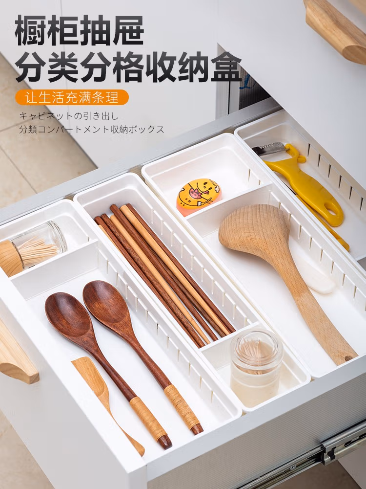 家の物语(KATEISTORY) 厨房收纳盒抽屉用餐具分隔整理盒橱柜塑料置物架分格储物盒 白色大号3个装