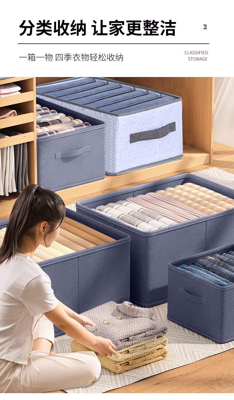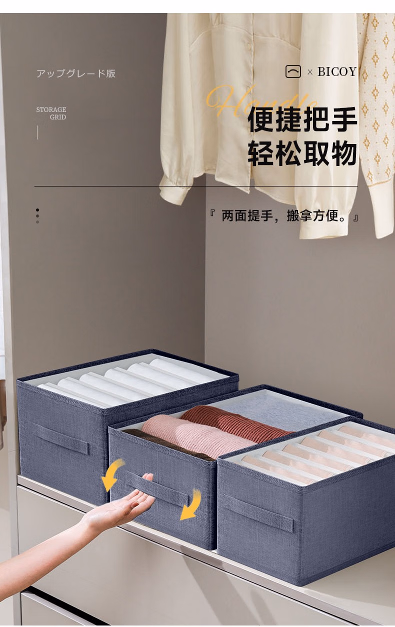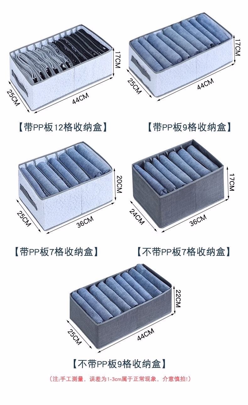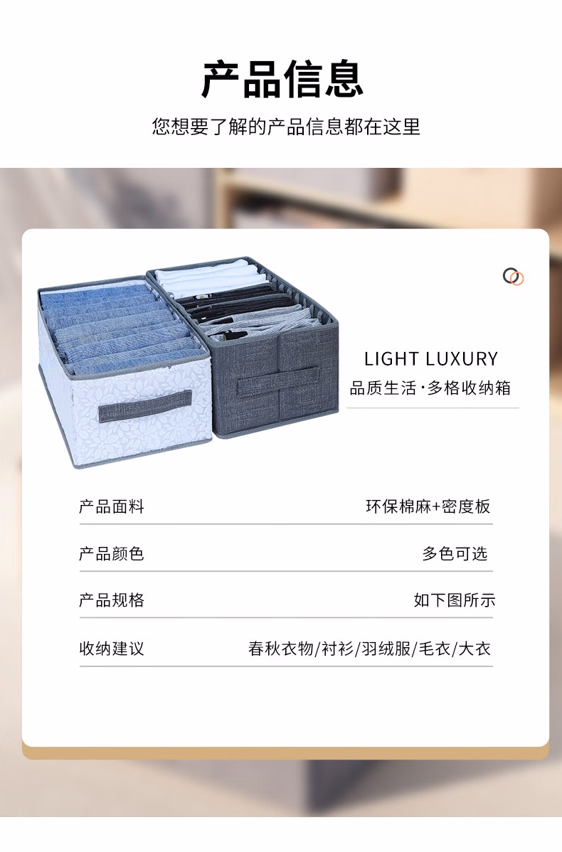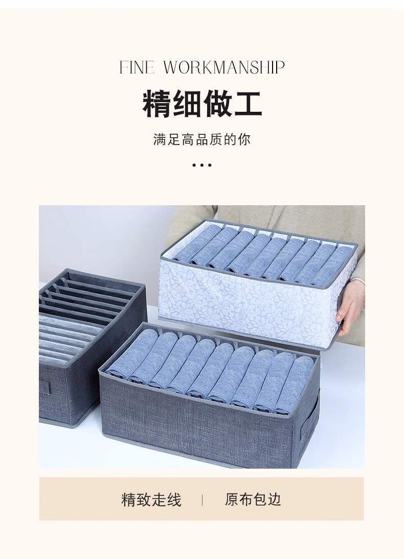 箱居裤子收纳袋衣服T恤整理袋分隔收纳神器衣柜衣橱分隔整理箱牛仔裤收纳盒 加厚大号7格 灰色