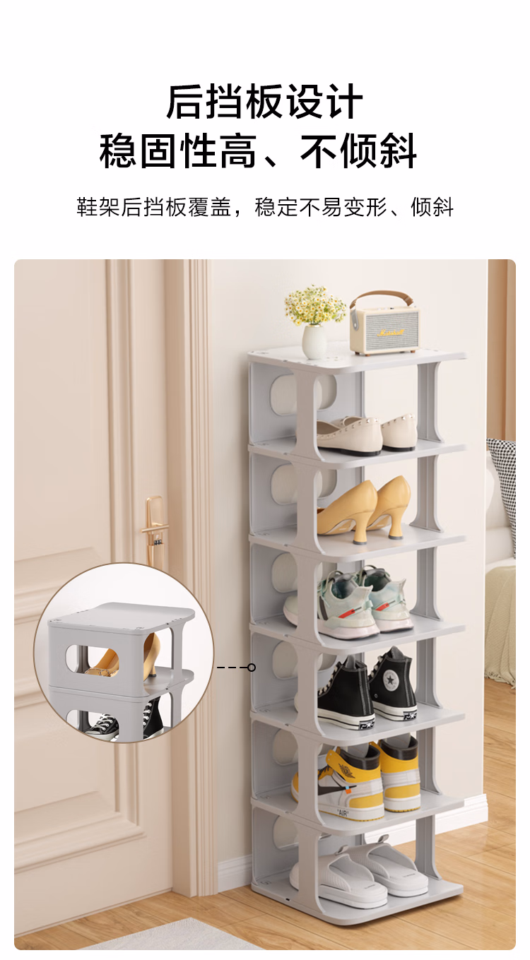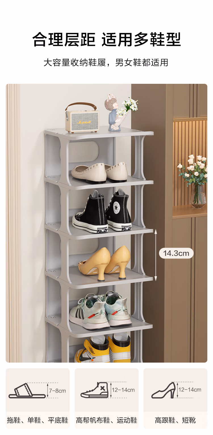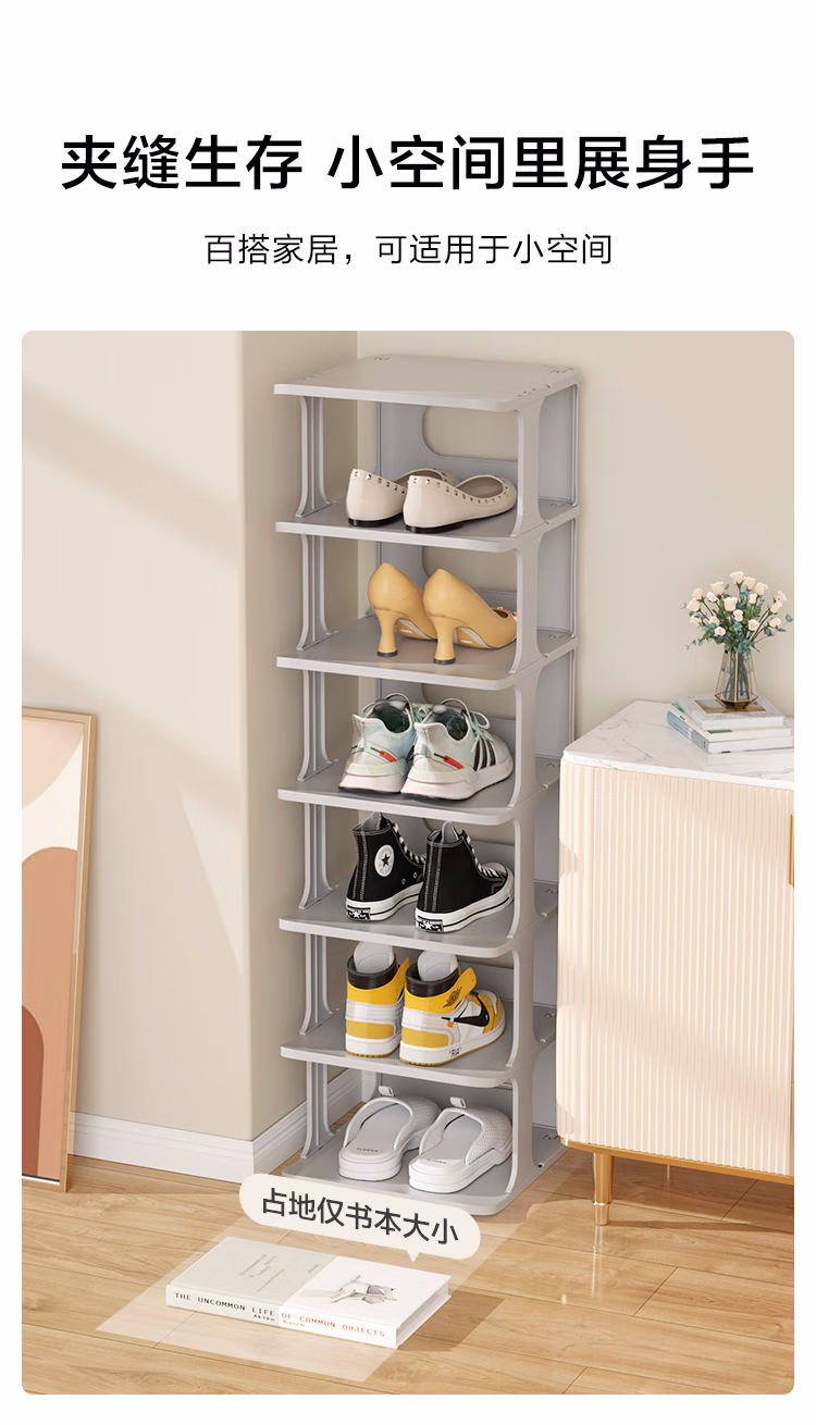 鞋架 鞋托拖鞋置物架 夹缝省空间浴室拖鞋分层架 免打孔放鞋收纳架子 1列7层