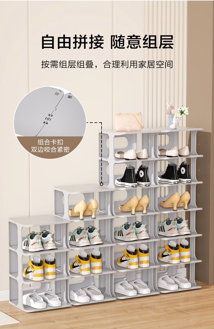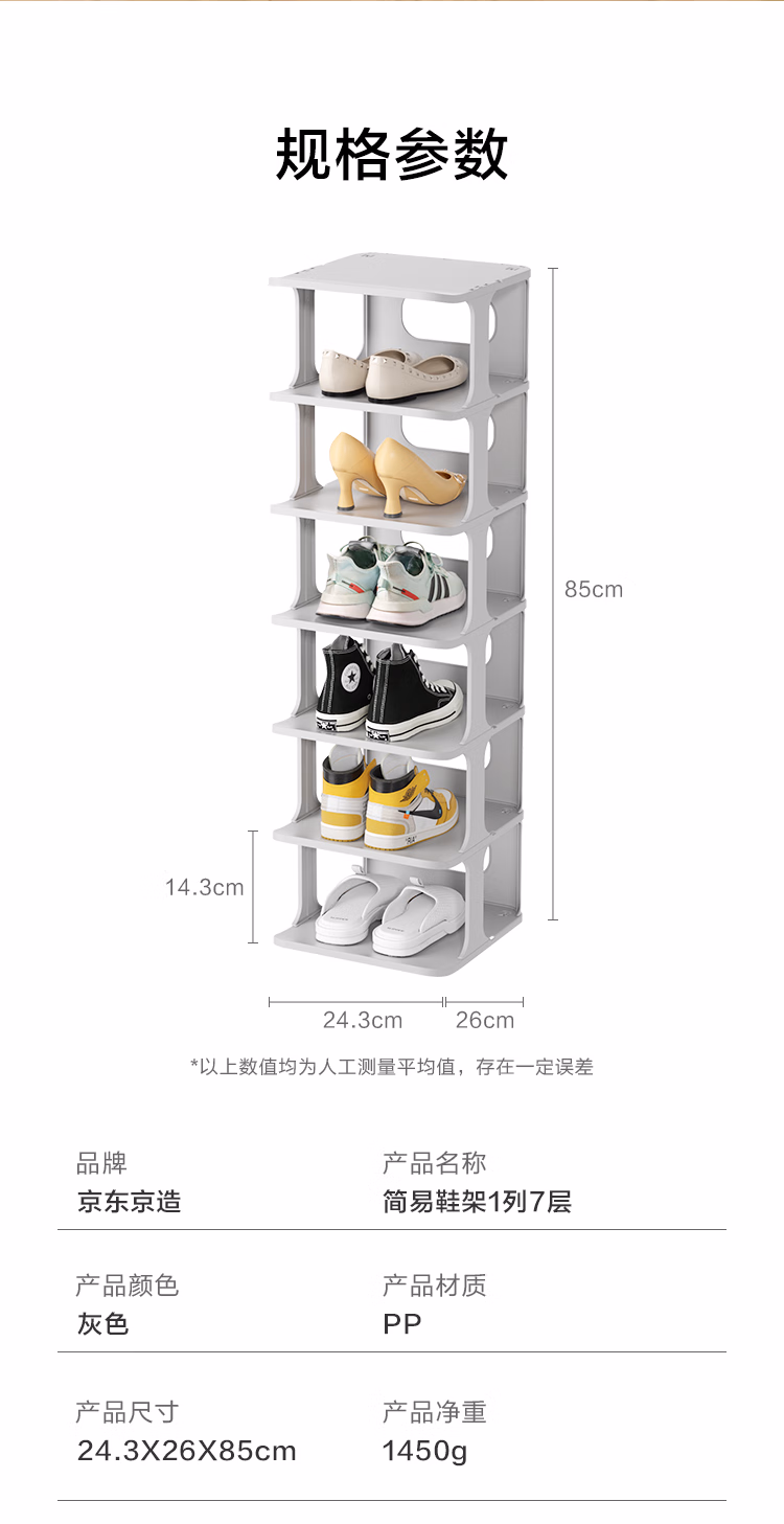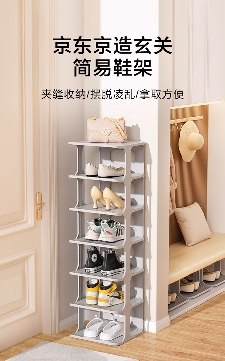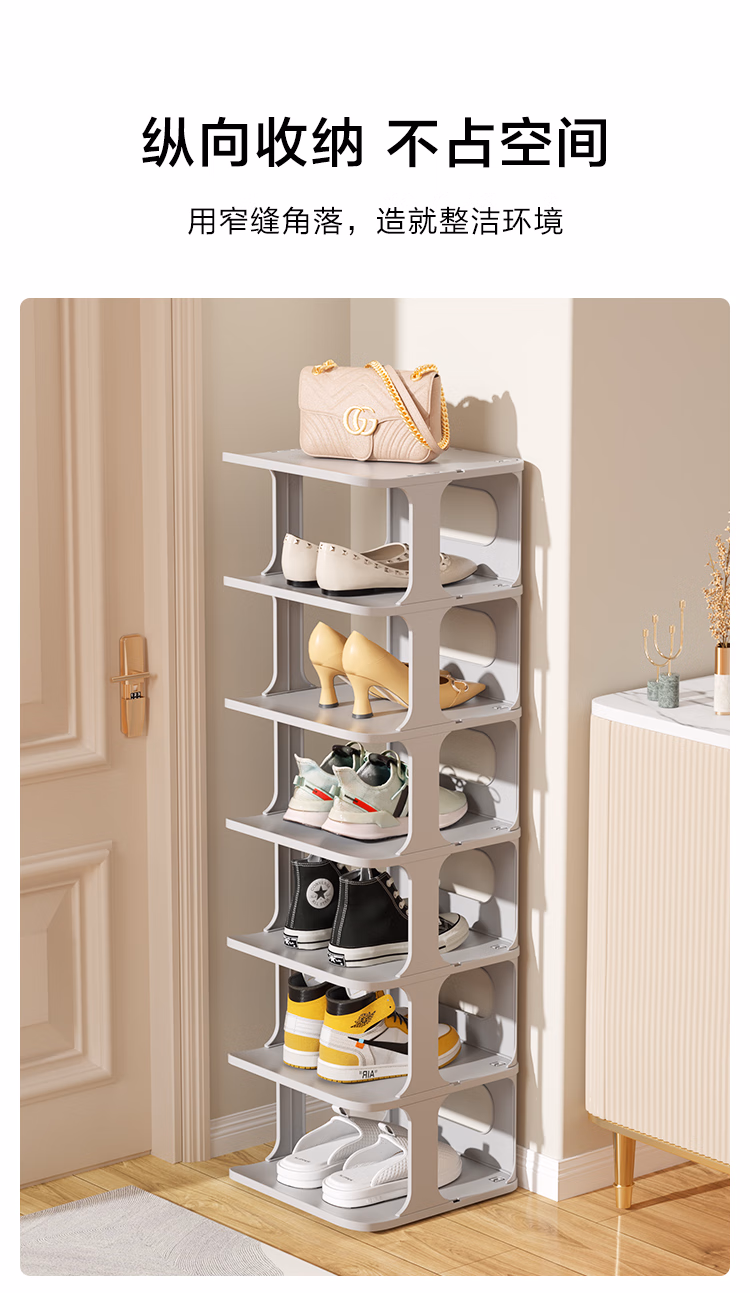 鞋架 鞋托拖鞋置物架 夹缝省空间浴室拖鞋分层架 免打孔放鞋收纳架子 1列7层