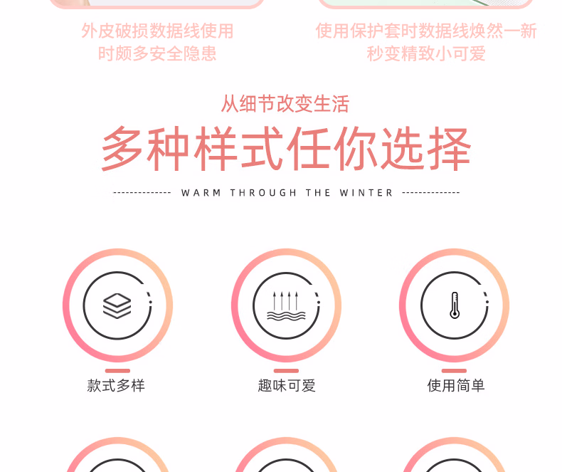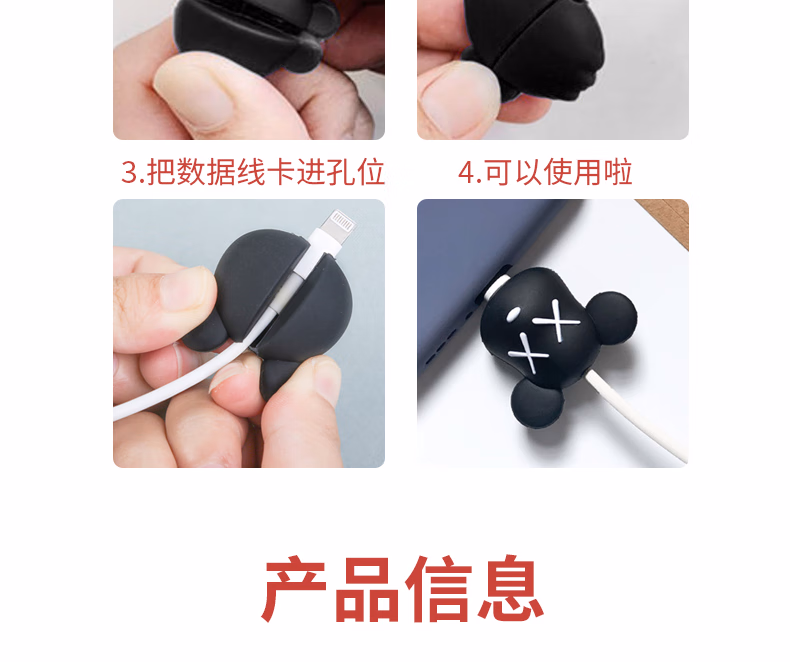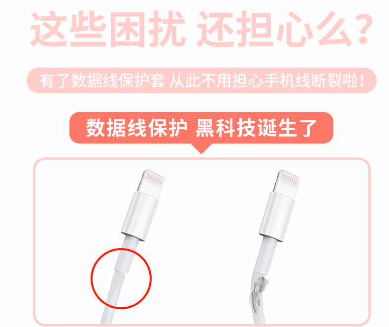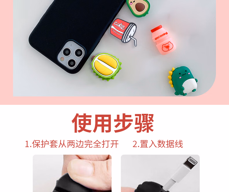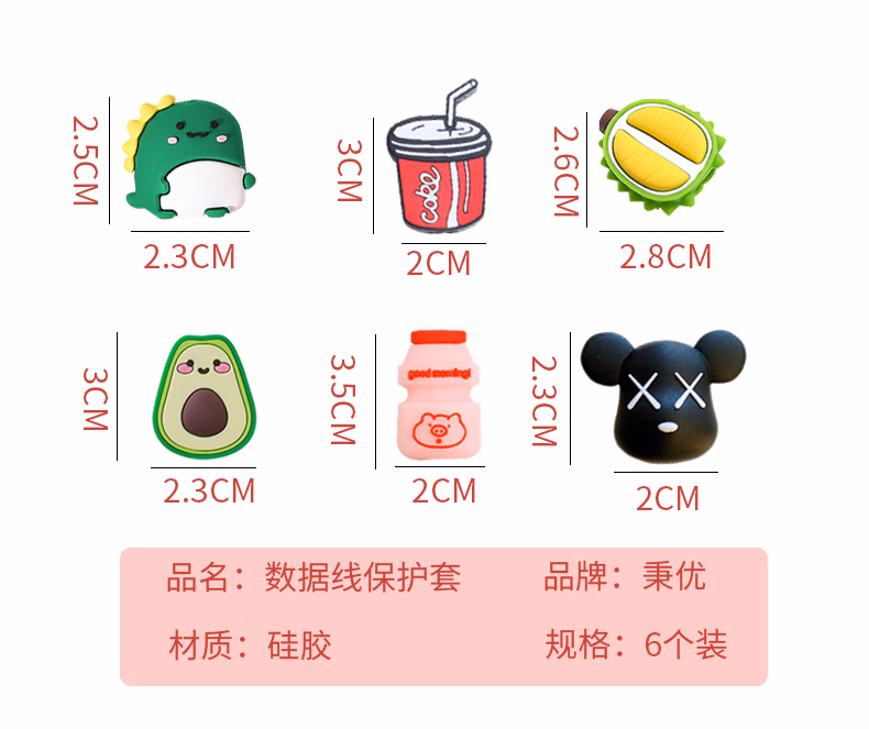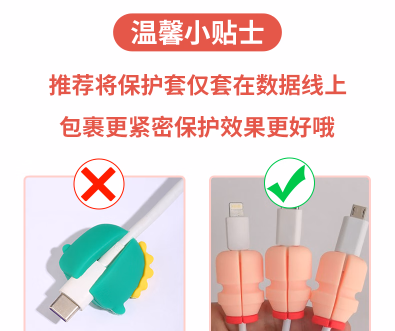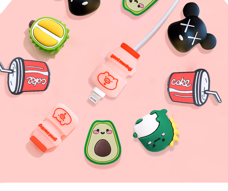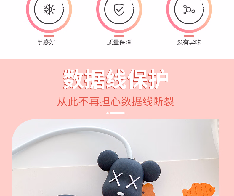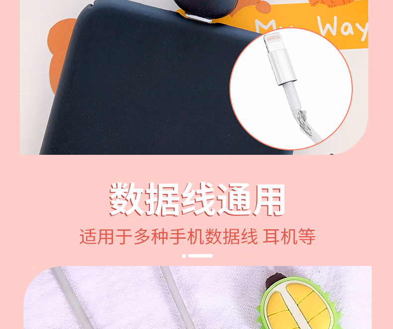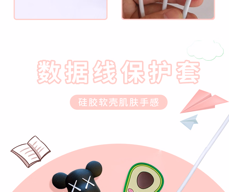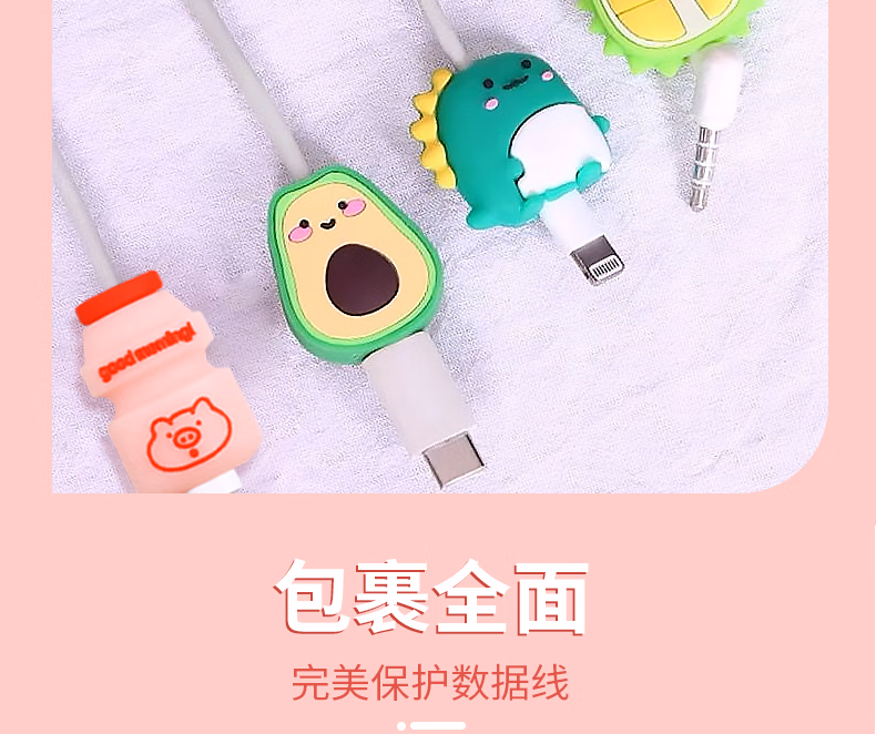 秉优创意数据线保护套 可爱卡通手机充电线防折断适用苹果安卓typec快充各种接口机型 6件套