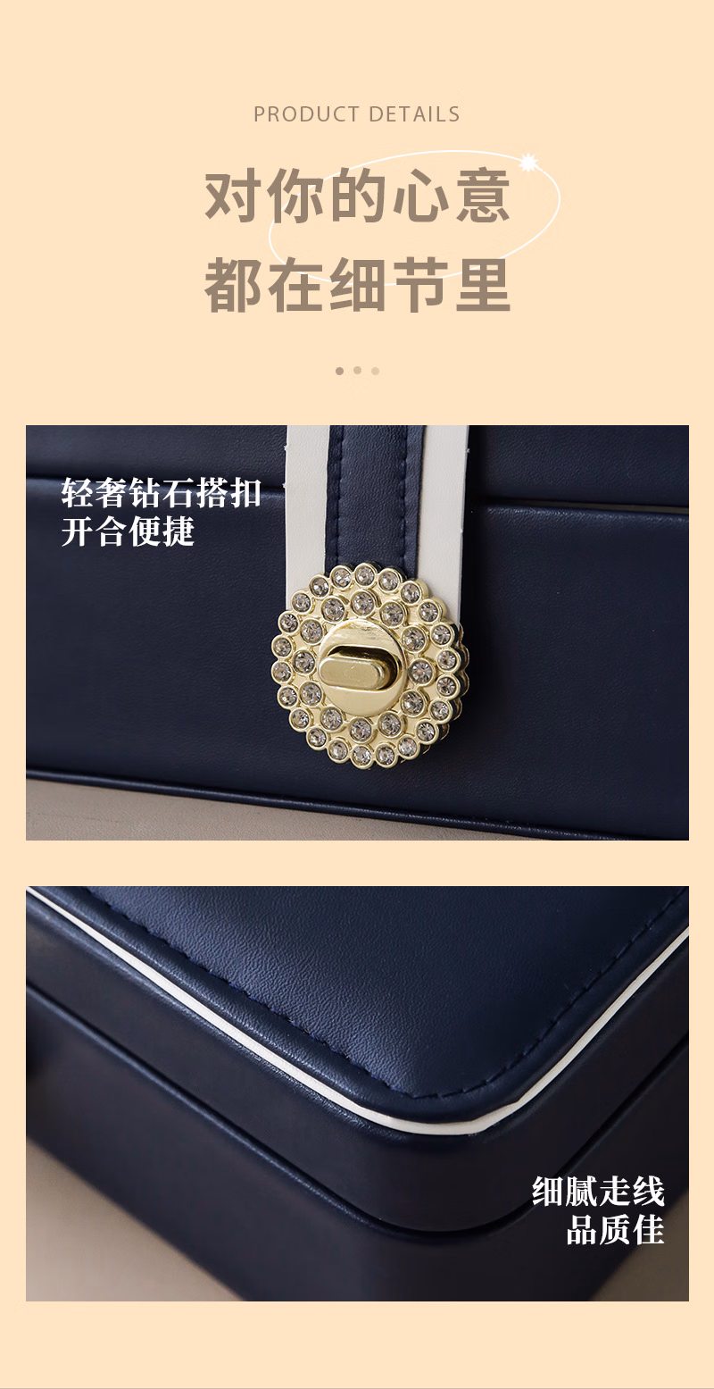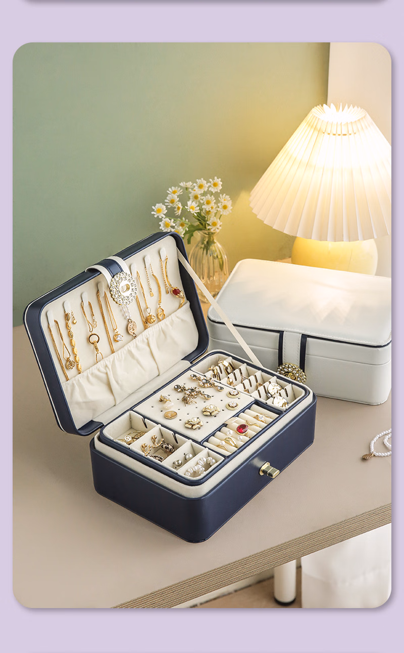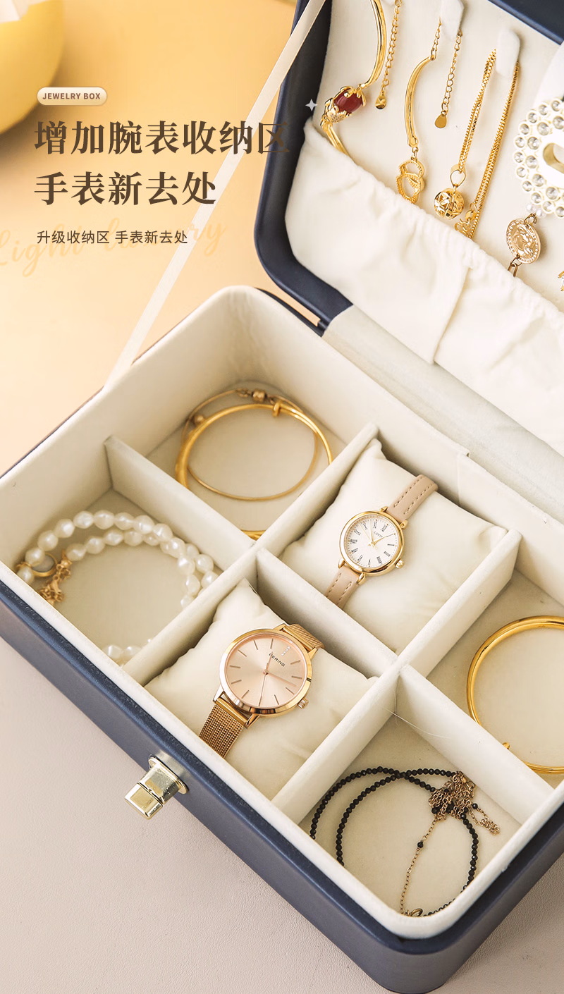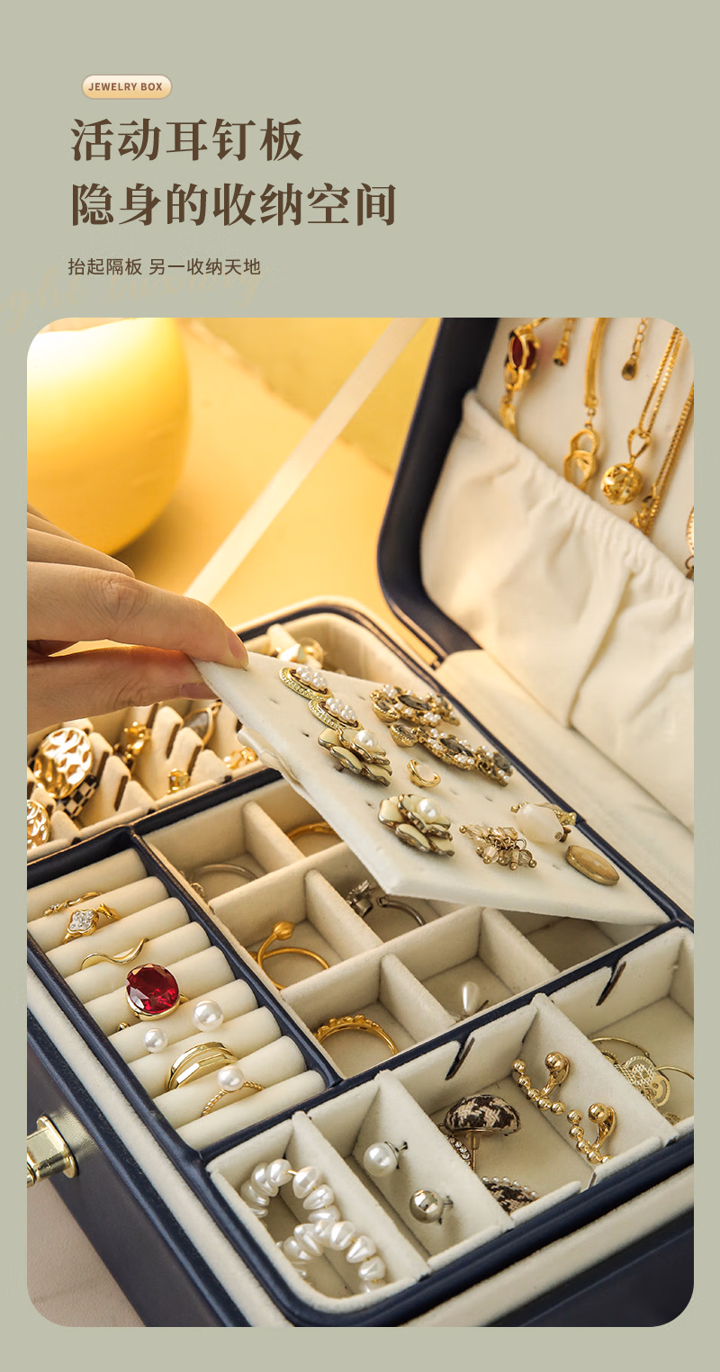 首饰盒收纳盒手饰品盒桌面精致大容量收拾项链耳环手表手链高档珠宝盒订婚婚礼女生生日礼物送女友轻奢款蓝色