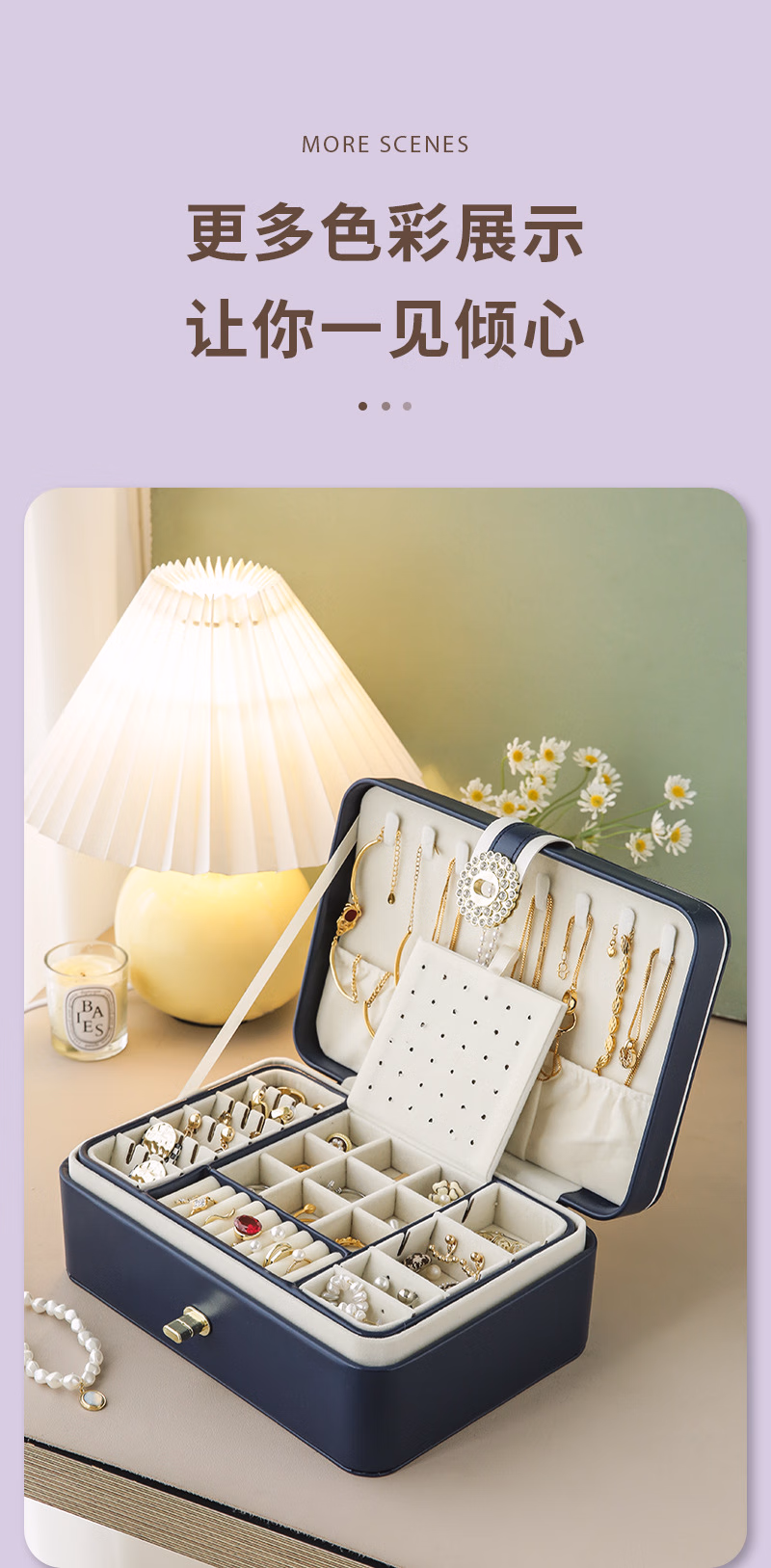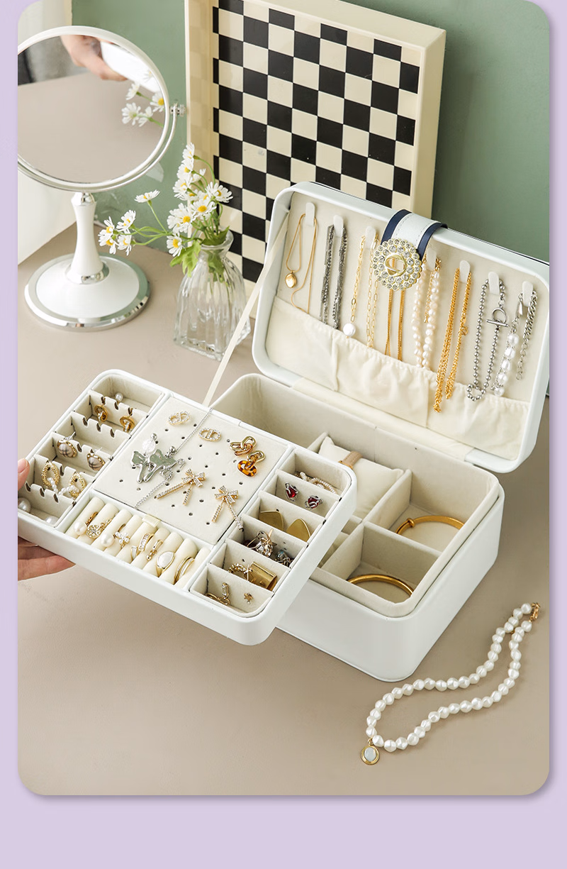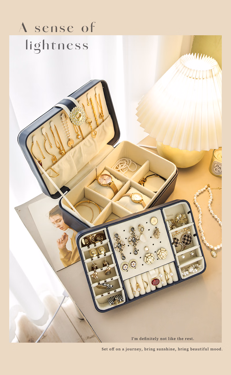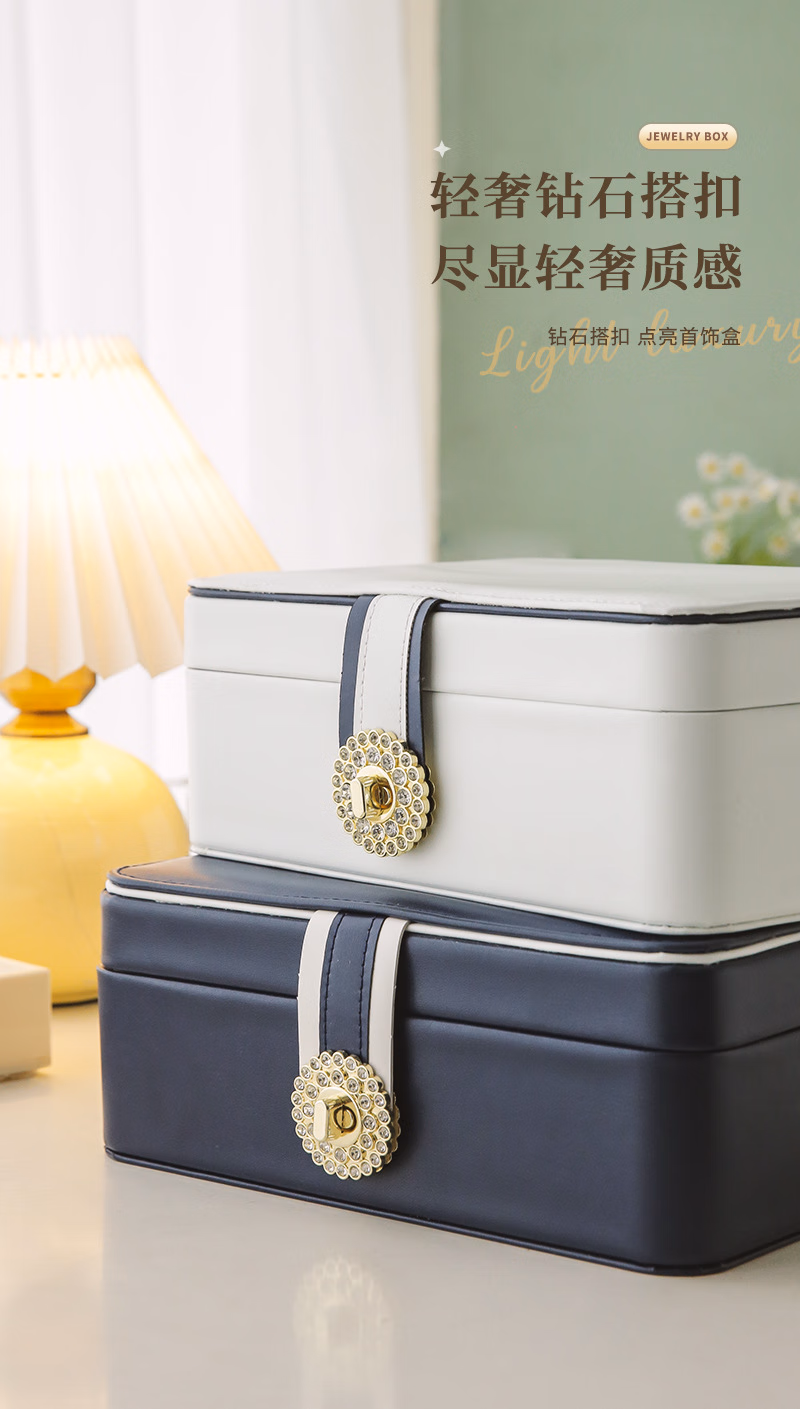 首饰盒收纳盒手饰品盒桌面精致大容量收拾项链耳环手表手链高档珠宝盒订婚婚礼女生生日礼物送女友轻奢款蓝色