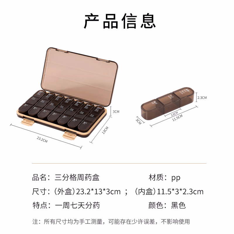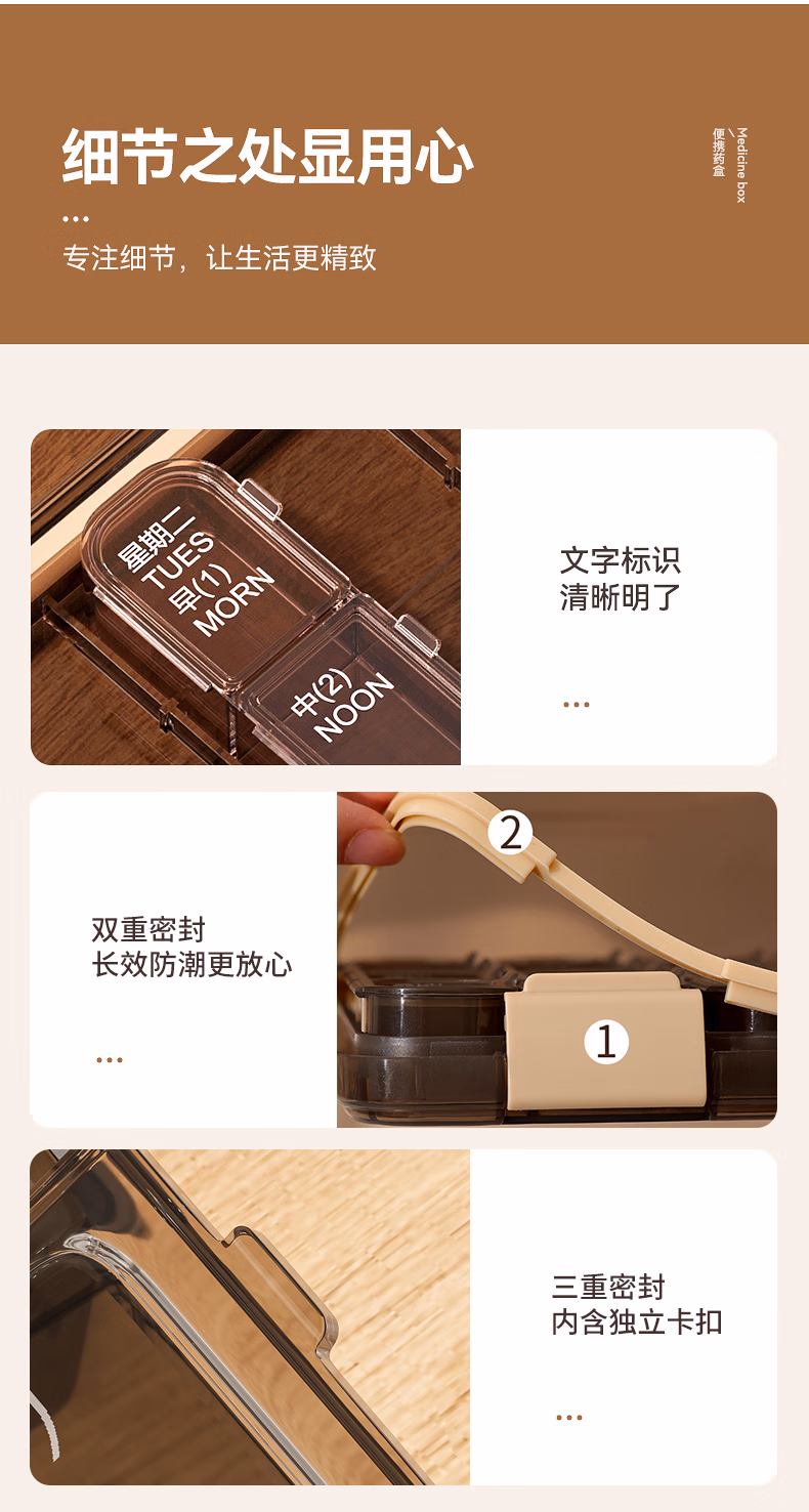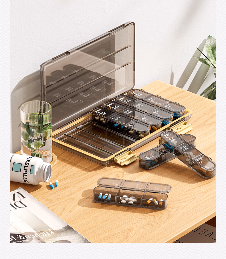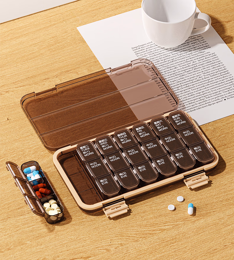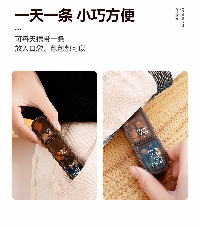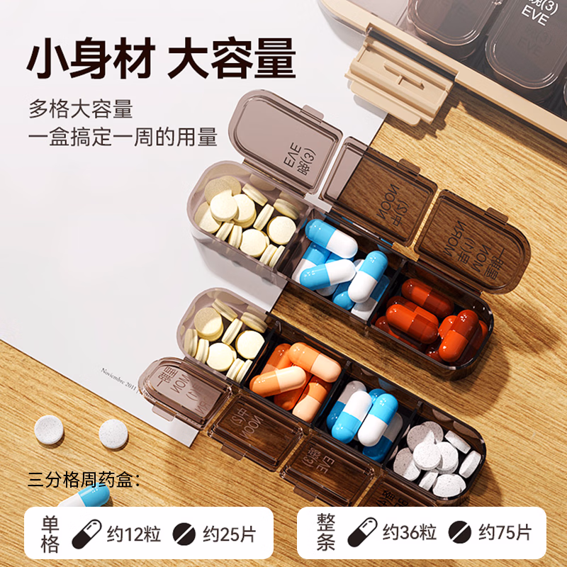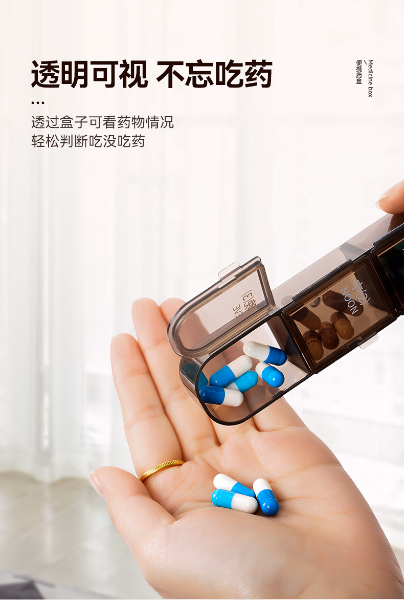 妙馨思分格装药盒子便携式老人提醒吃药七天一周大容量每日早中晚随身分药器药物旅行小药品药片分装药丸盒子