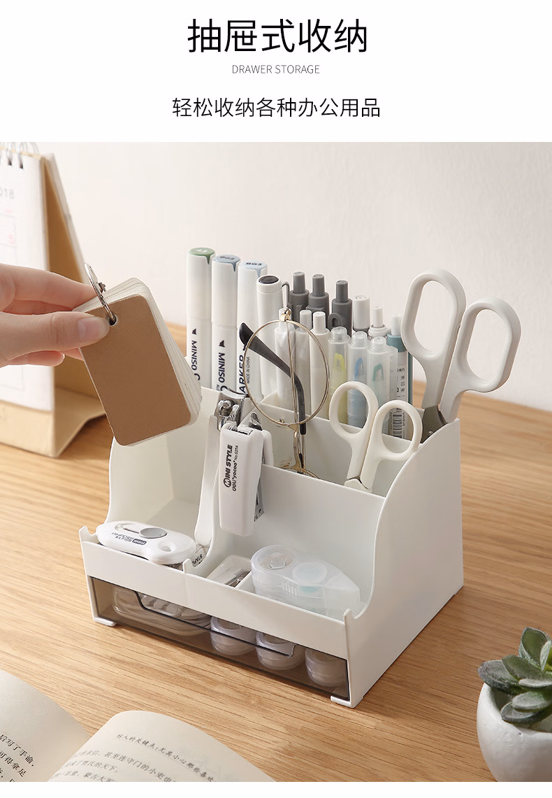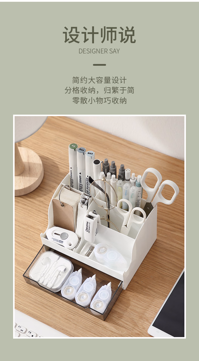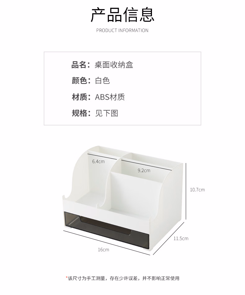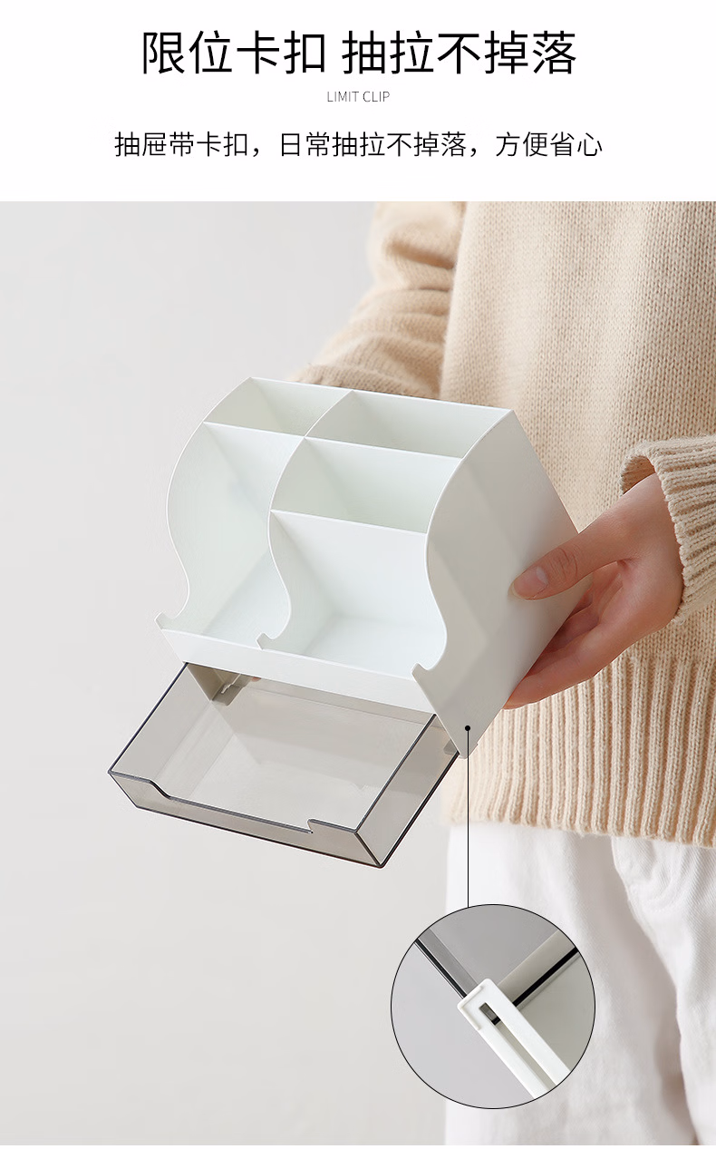 爽居桌面收纳盒笔筒多功能分格办公用品文具收纳盒首饰化妆品收纳盒学生宿舍抽屉式储物盒子 桌面收纳盒-白色(16*11.5*10.7cm)