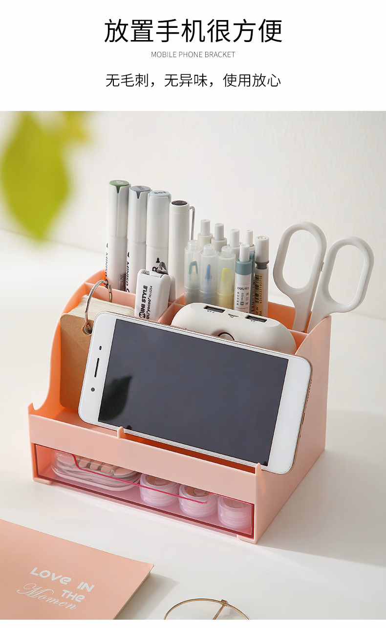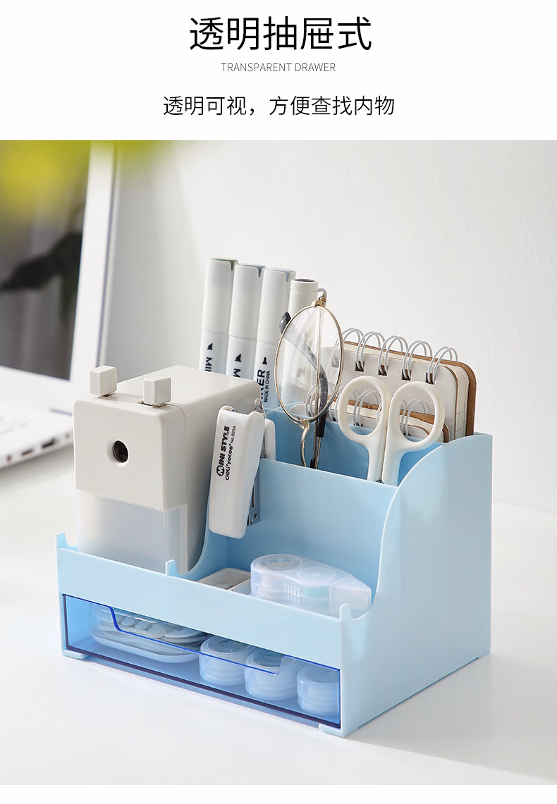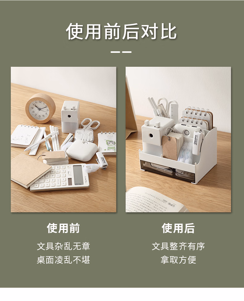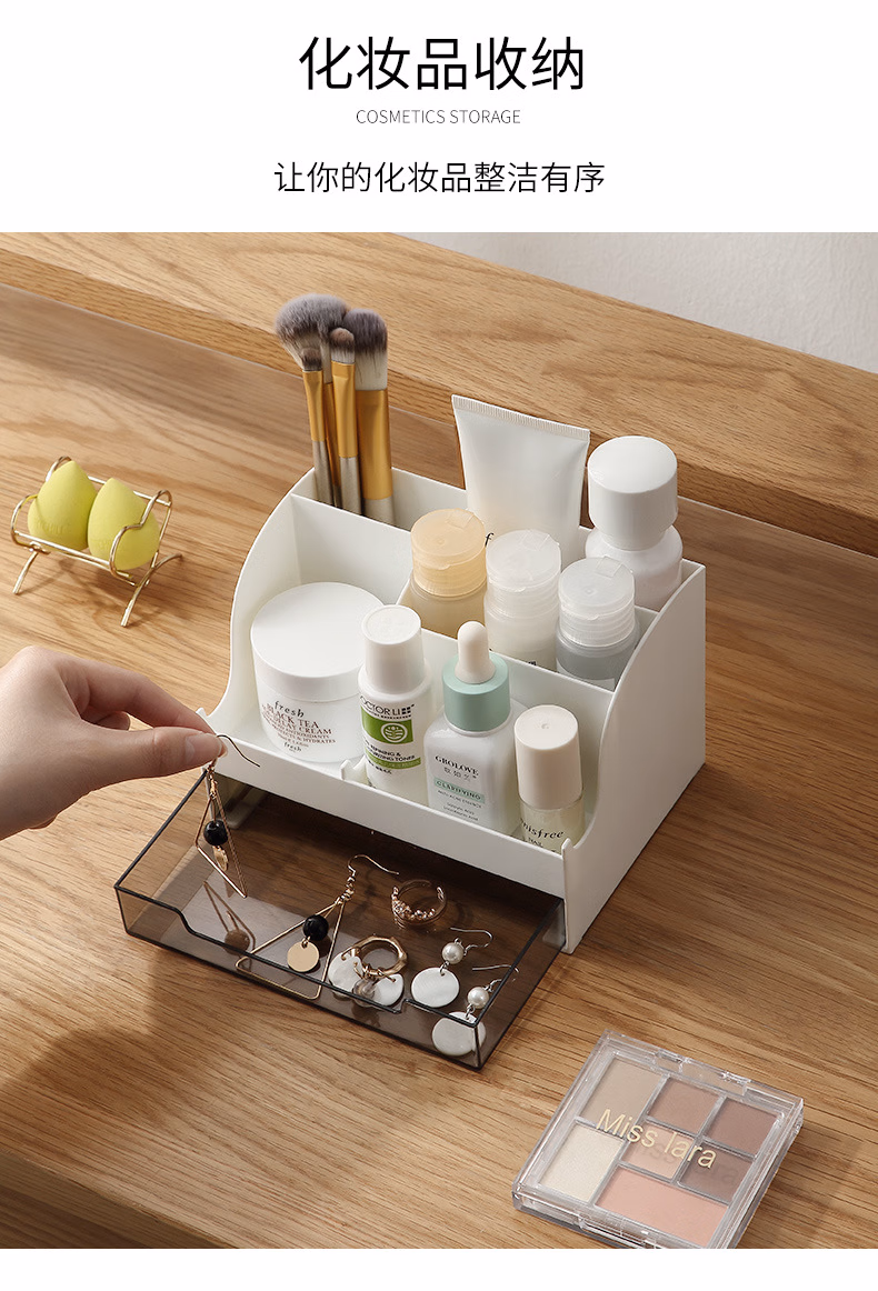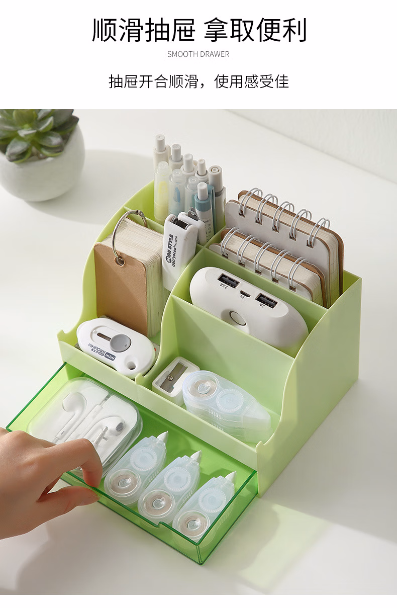 爽居桌面收纳盒笔筒多功能分格办公用品文具收纳盒首饰化妆品收纳盒学生宿舍抽屉式储物盒子 桌面收纳盒-白色(16*11.5*10.7cm)