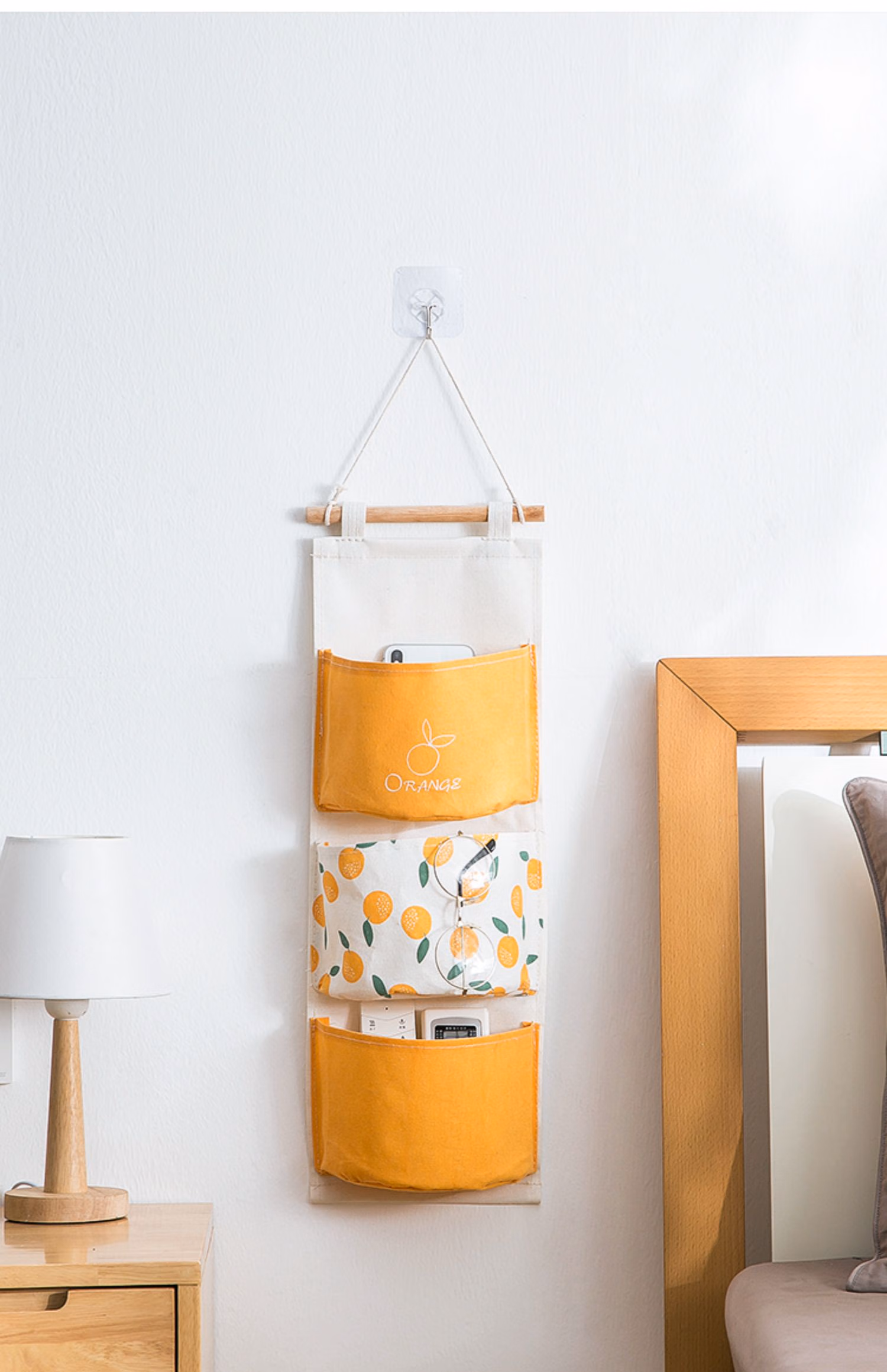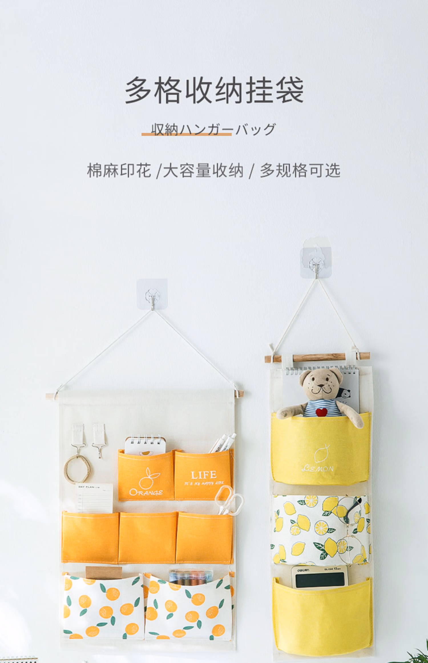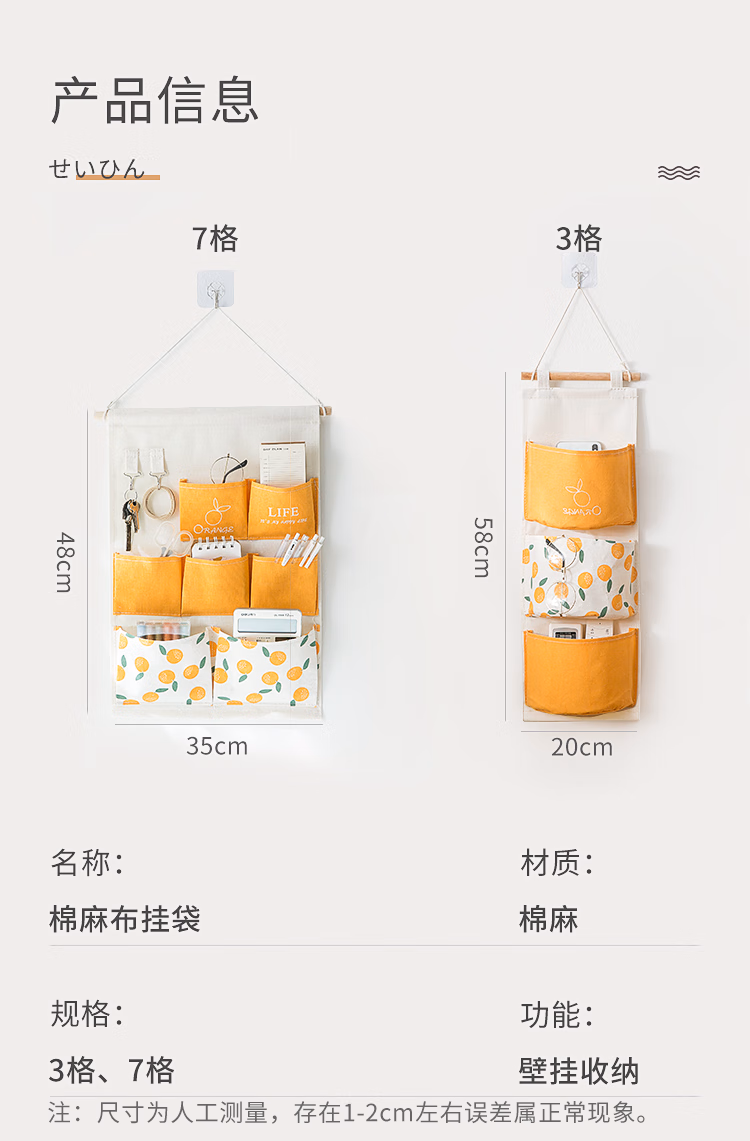 卡维瑞收纳袋挂墙上宿舍储物袋门后布艺收纳挂袋衣柜悬挂置物袋床头床帘储物袋带钥匙挂钩 7格云朵款