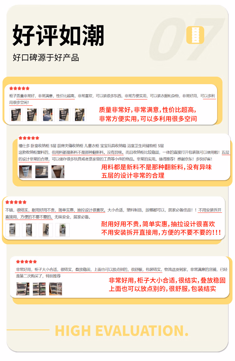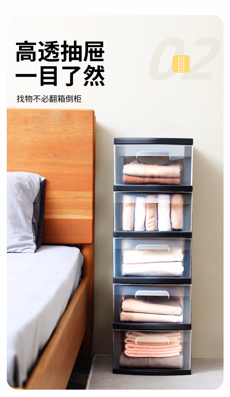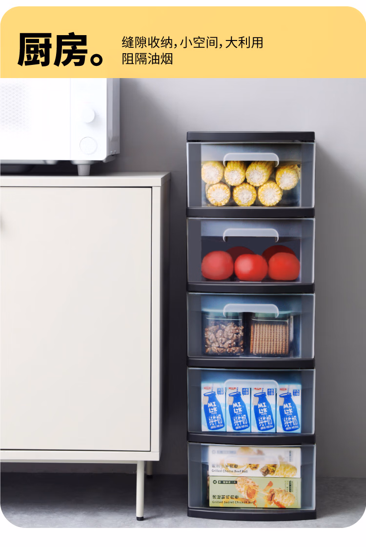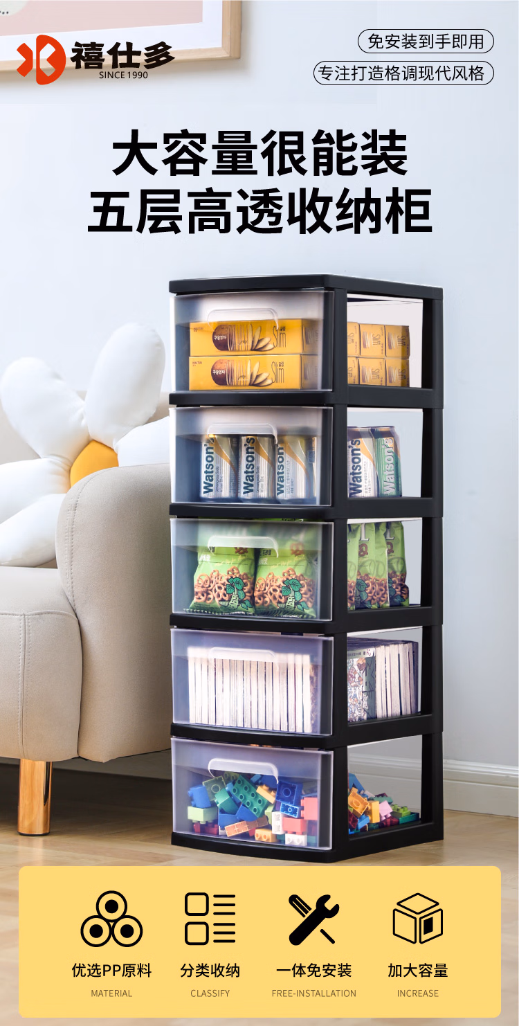 禧仕多卧室收纳柜 5层 厨房夹缝收纳柜 儿童衣柜 宝宝玩具收纳箱 浴室卫生间储物柜 5层