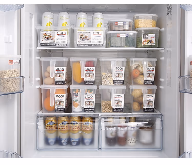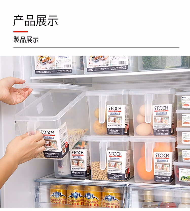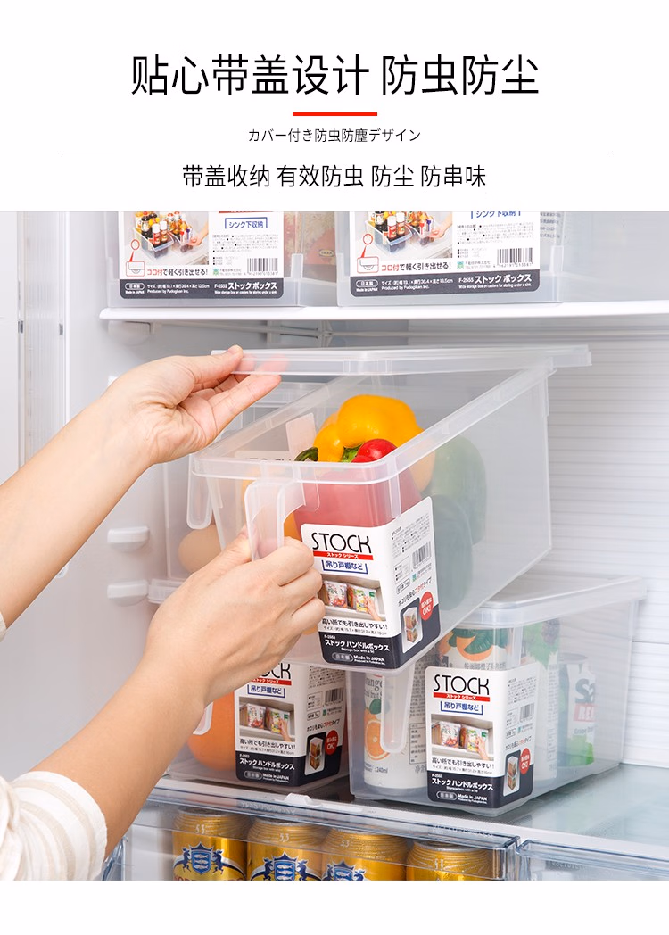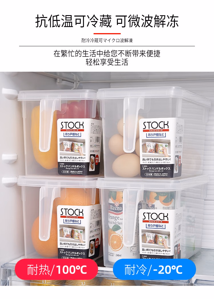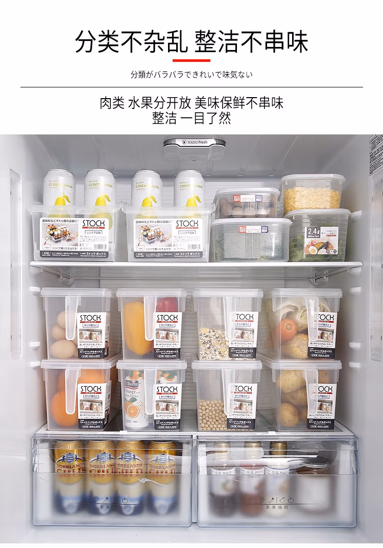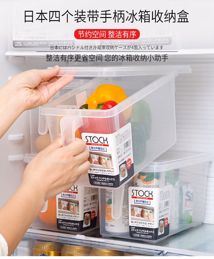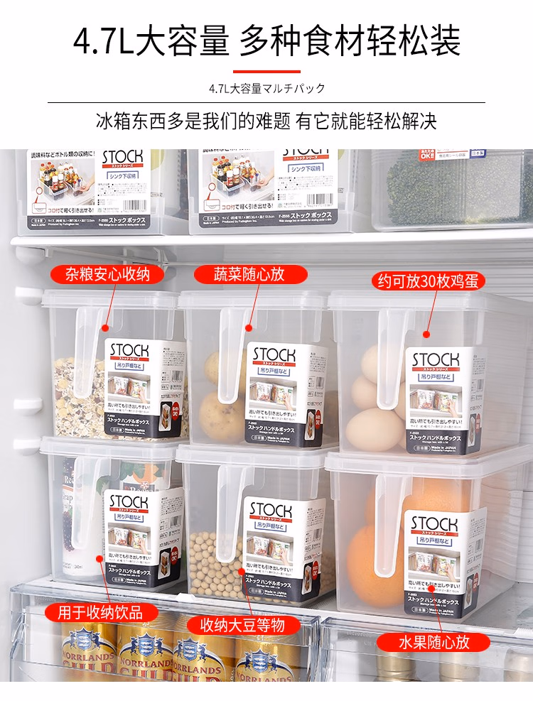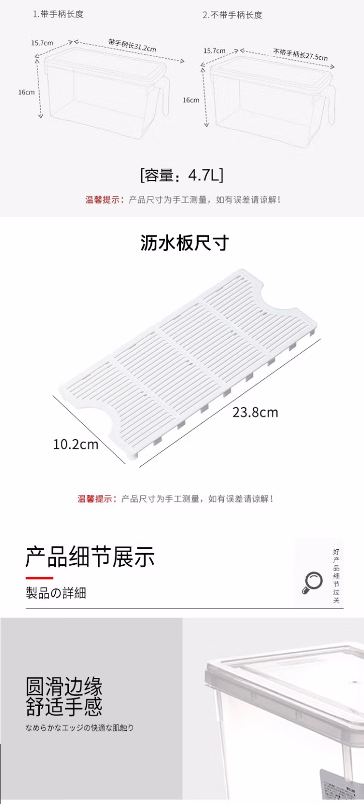 家の物语冰箱收纳盒保鲜盒4个装便携水果盒沥水厨房收纳盒塑料带手柄食品级储物盒杂粮收纳箱4.7L