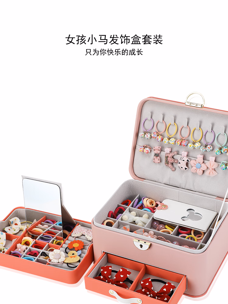 SOFIS小马小女孩发饰套装生日礼物女孩首饰盒儿童礼品可爱公主发卡头绳皮筋六一圣诞礼物diy化妆盒 小马粉套盒 250/185/135