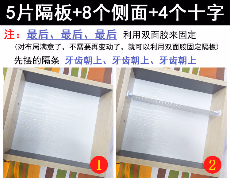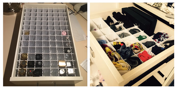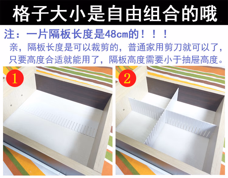 禾娘抽屉收纳分隔板整理格子片袜子分区隔断分割挡板自由组合衣柜神器 4片长47cm*7cm高 隔板