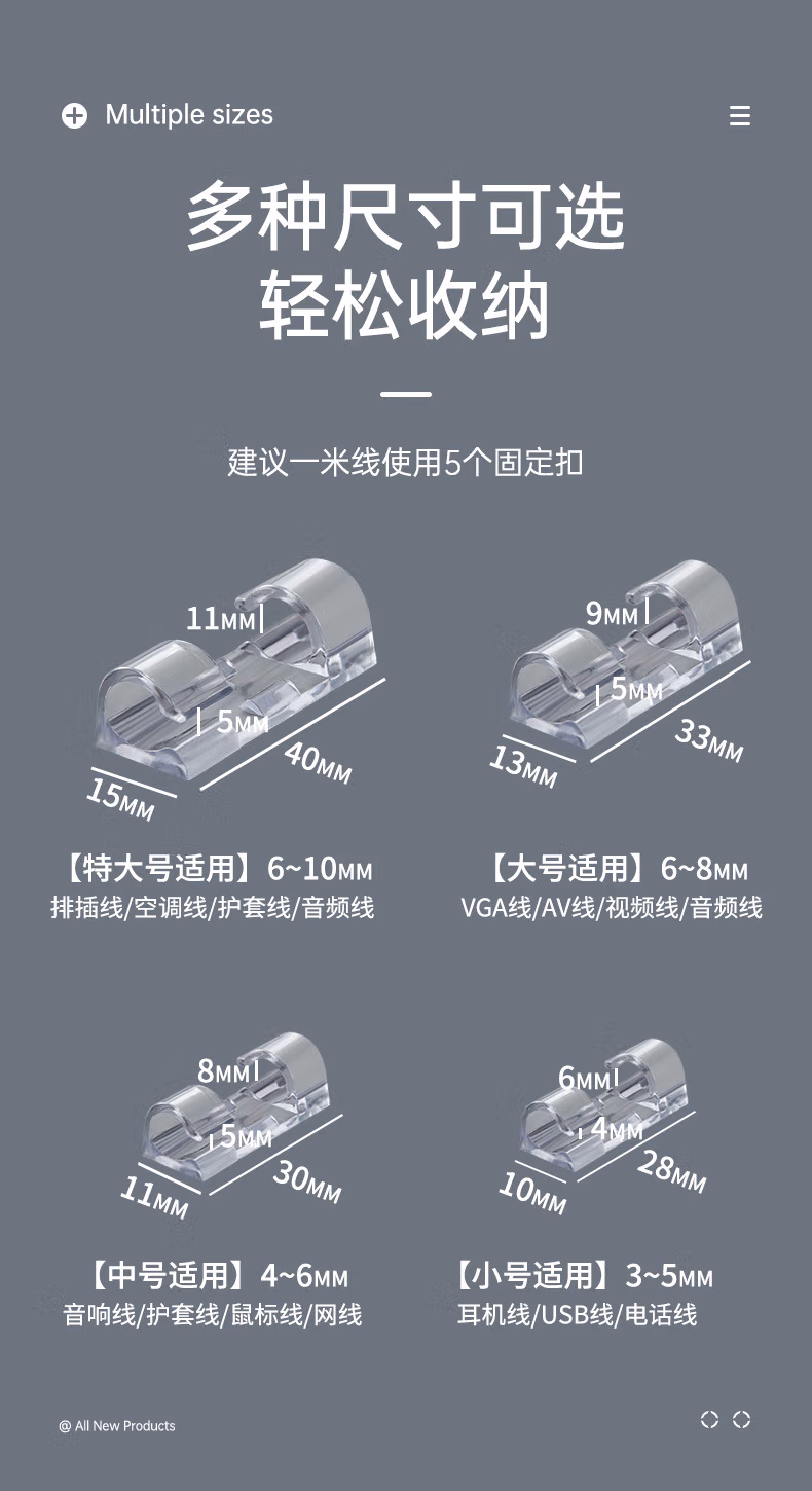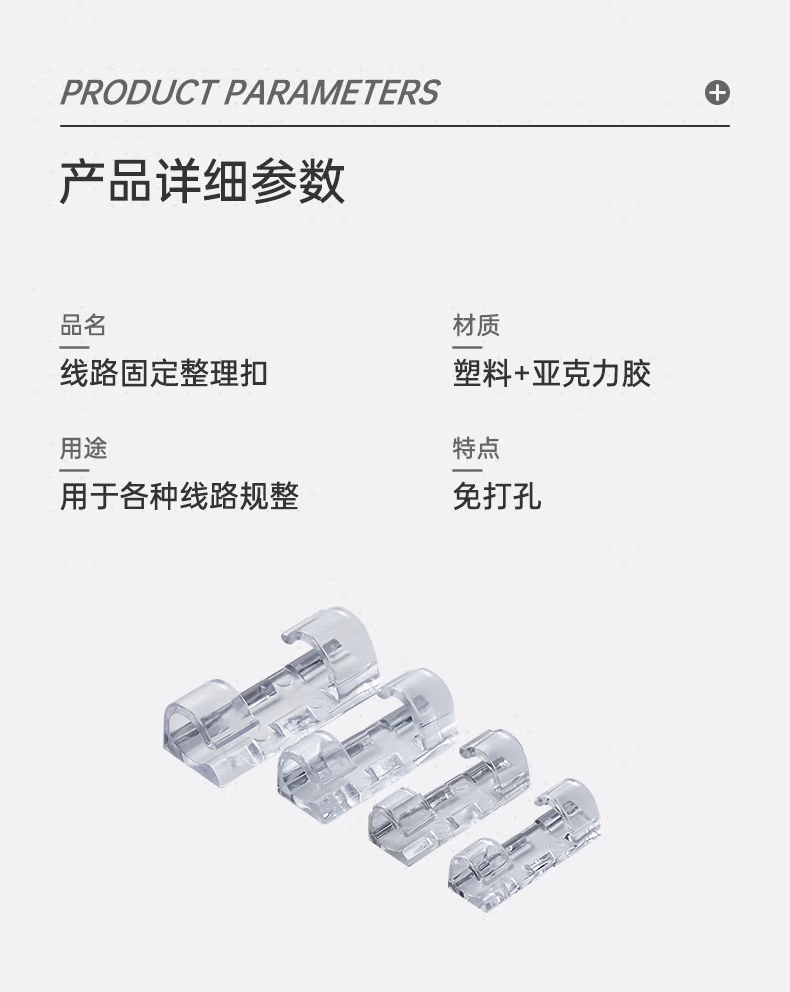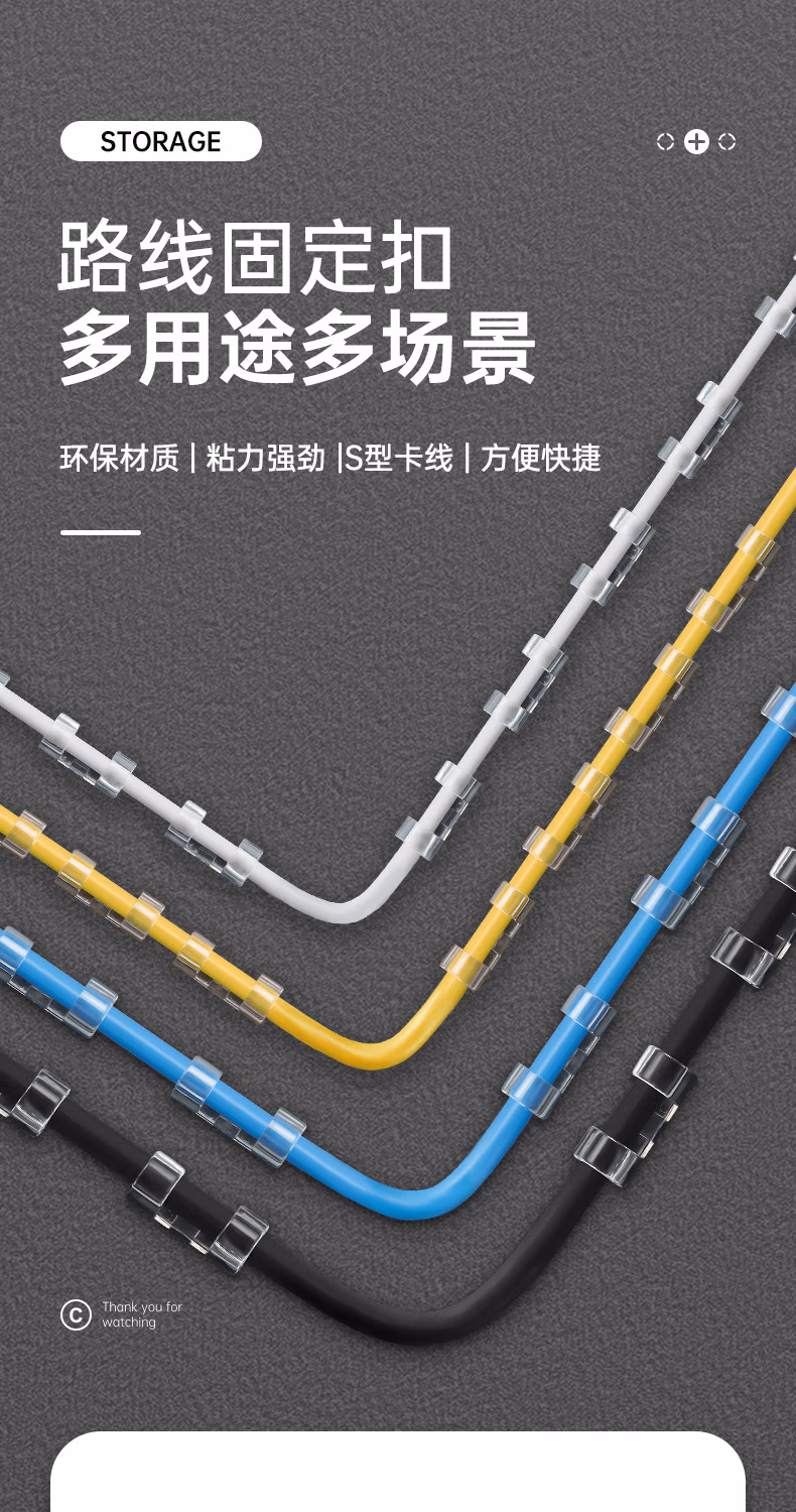 【带强力背胶】自粘电线理线器透明固定夹线卡子网线收纳整理器数据线固线夹 大号20个装【使用6-8mm线】