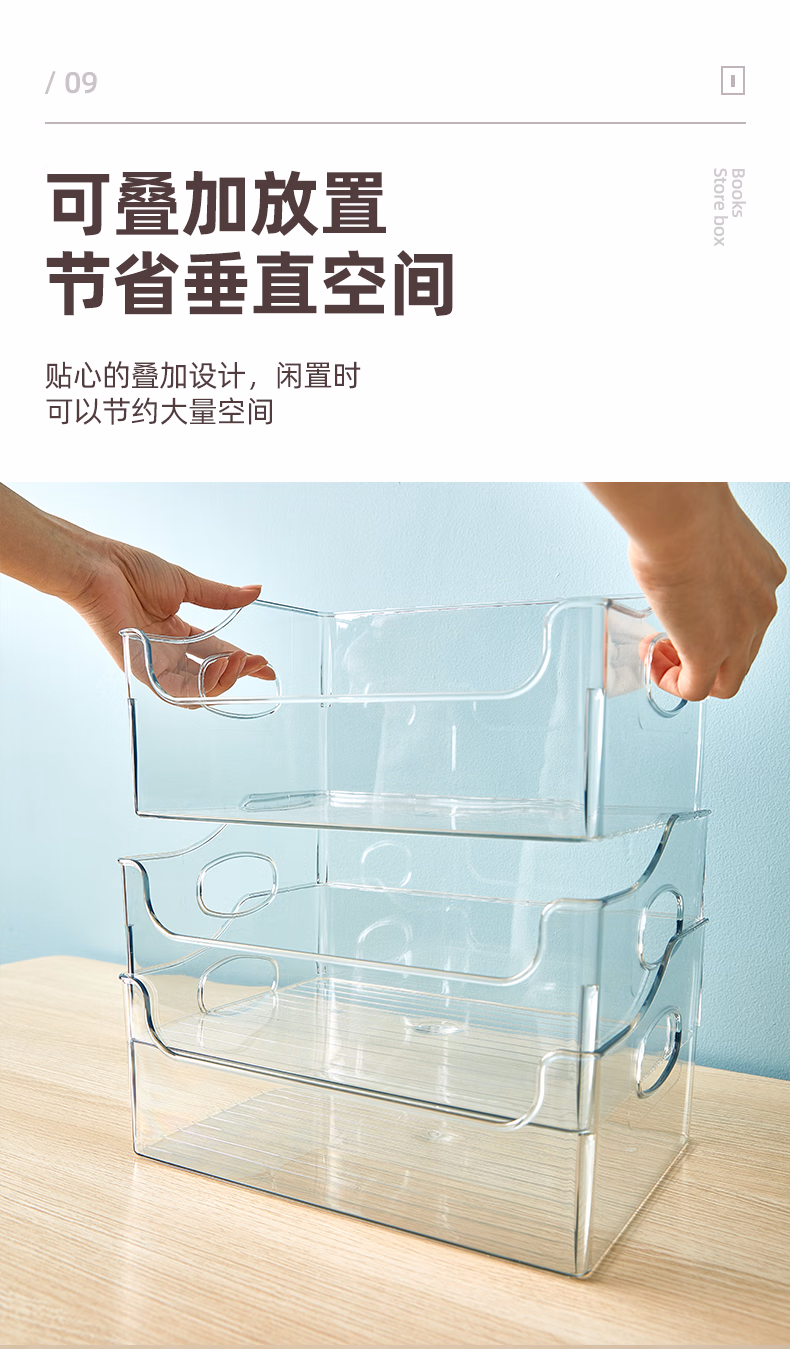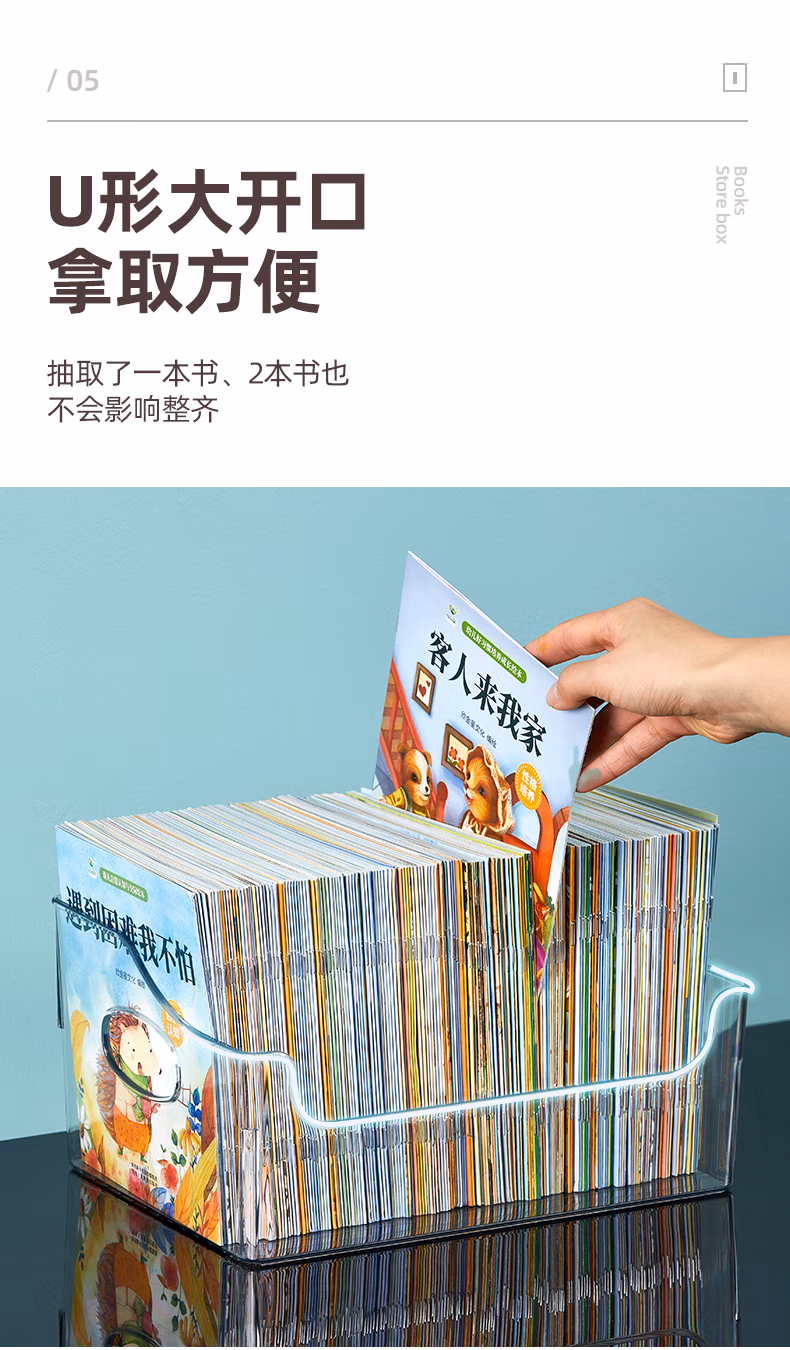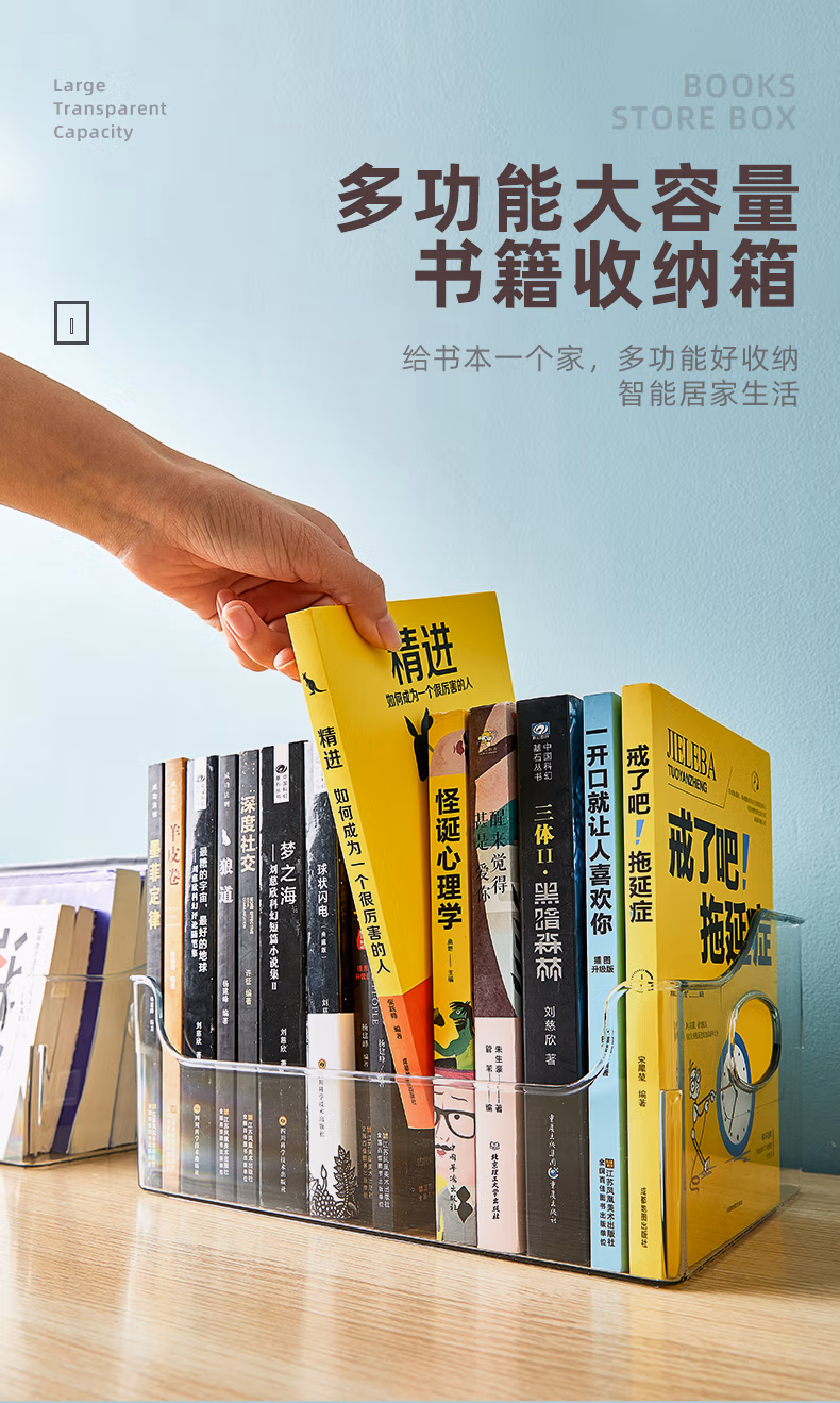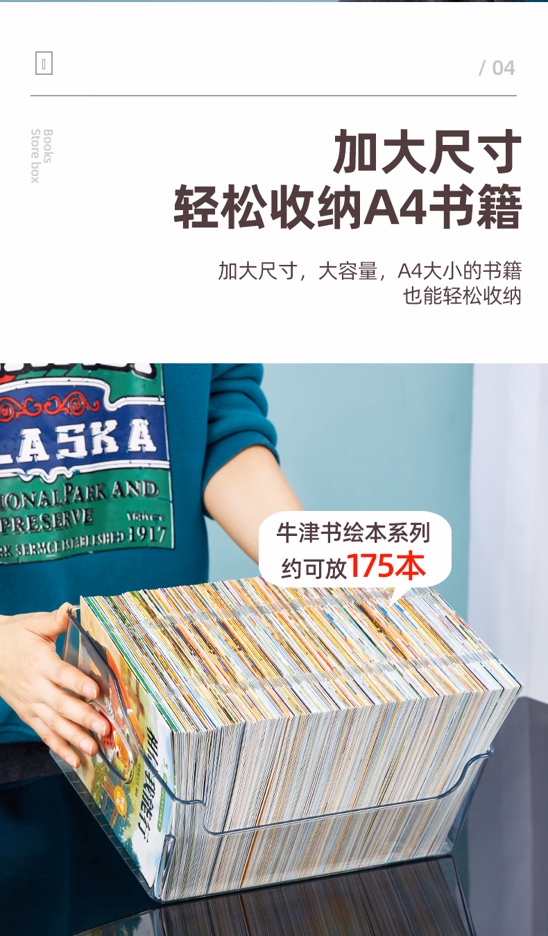 贝朵阳书本收纳盒桌面置物架透明储物书籍整理箱学生儿童书架高中教室绘本筐书立架 大号