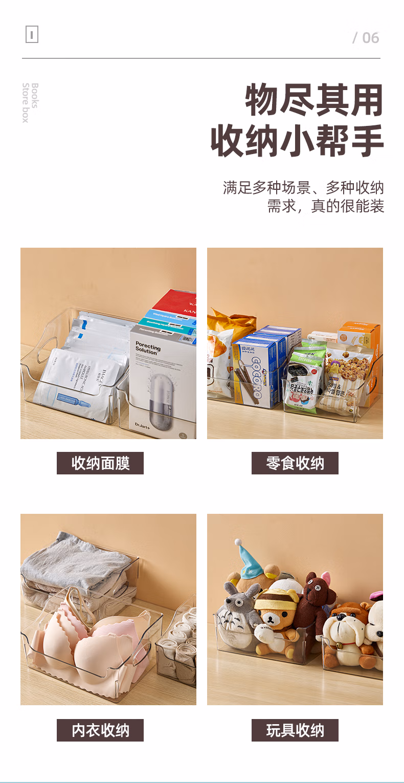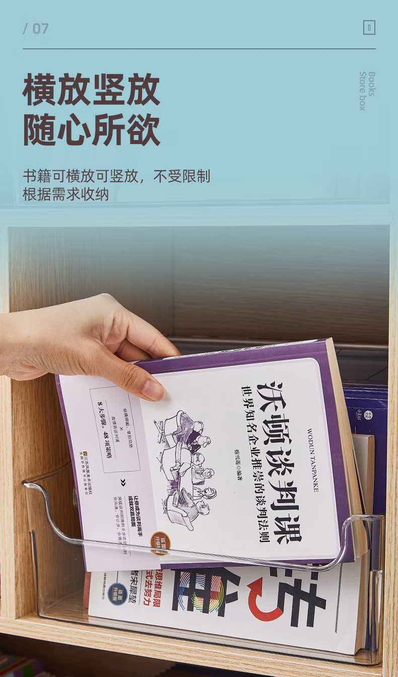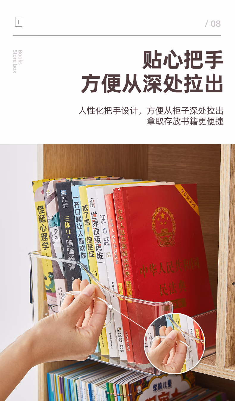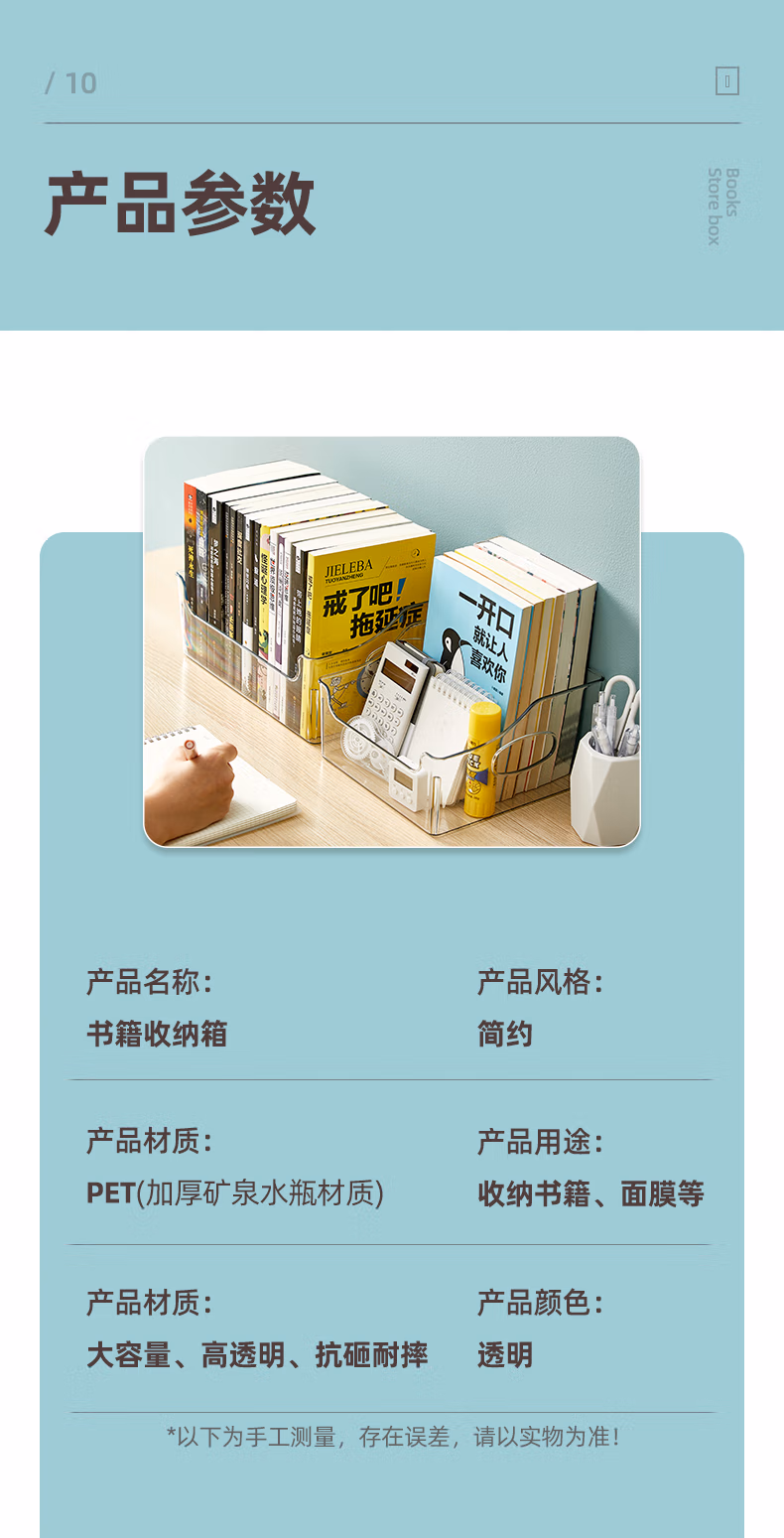 贝朵阳书本收纳盒桌面置物架透明储物书籍整理箱学生儿童书架高中教室绘本筐书立架 大号