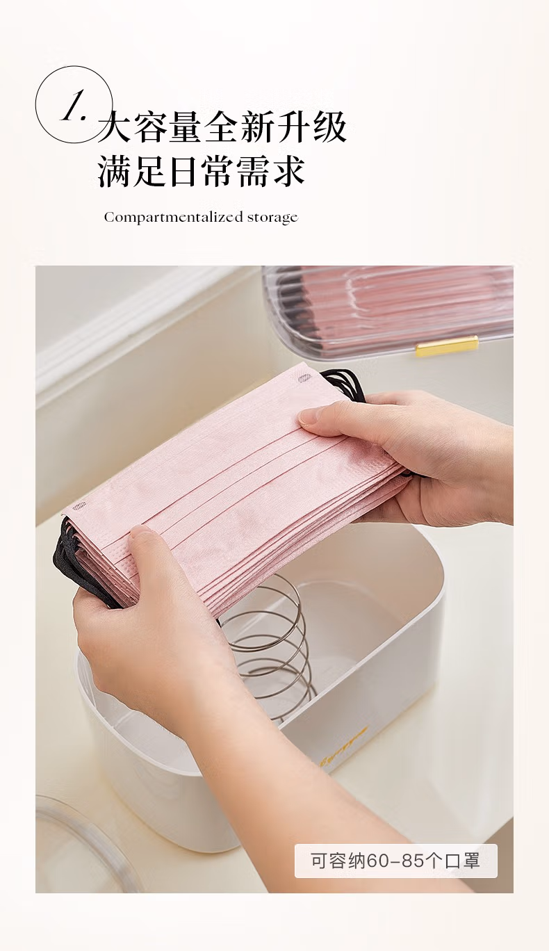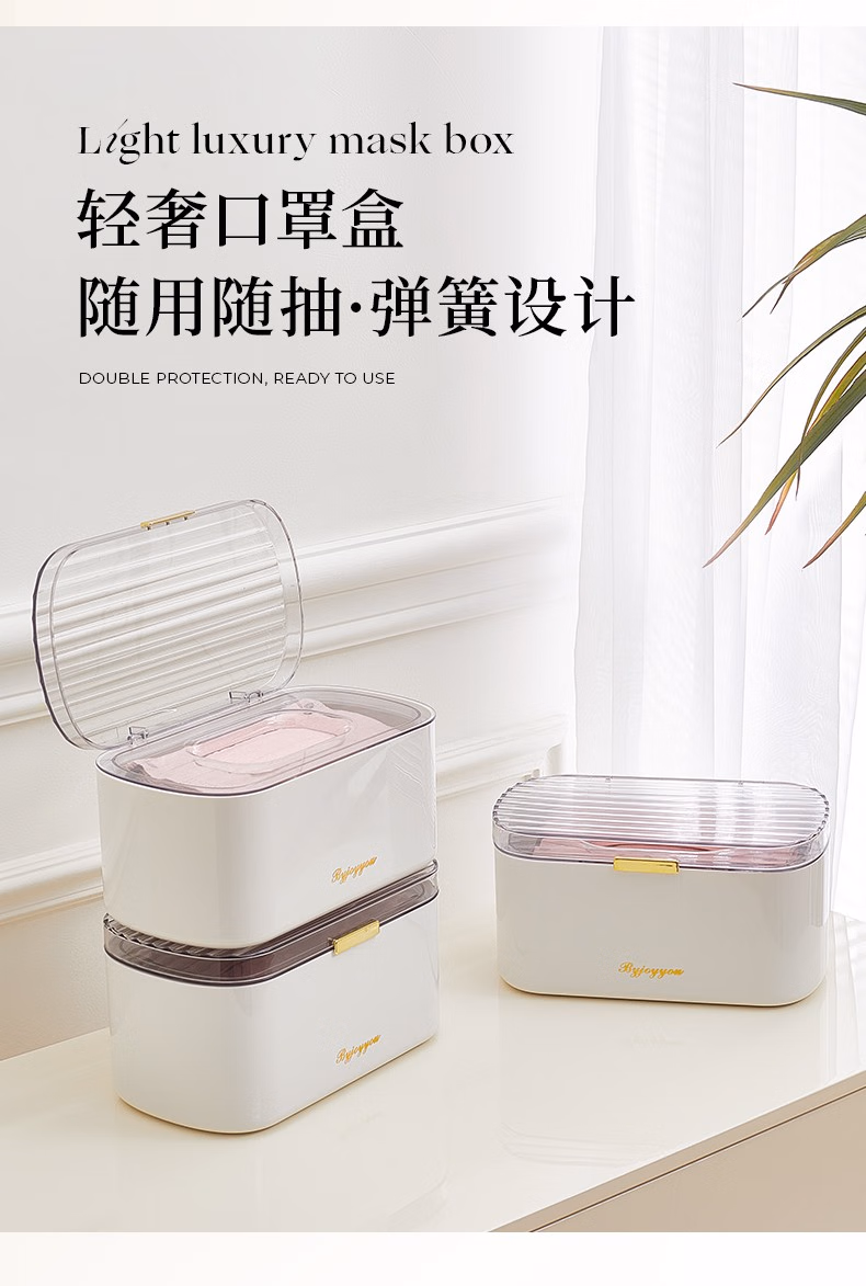 EACHY轻奢收纳盒家用口罩存放盒玄关防尘盒口鼻罩神器放口耳罩盒子 奶油白