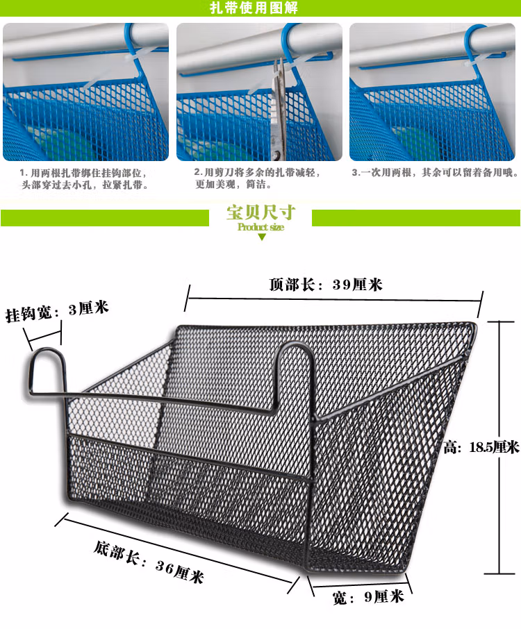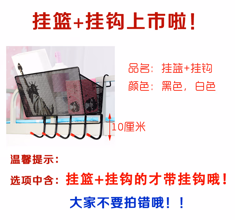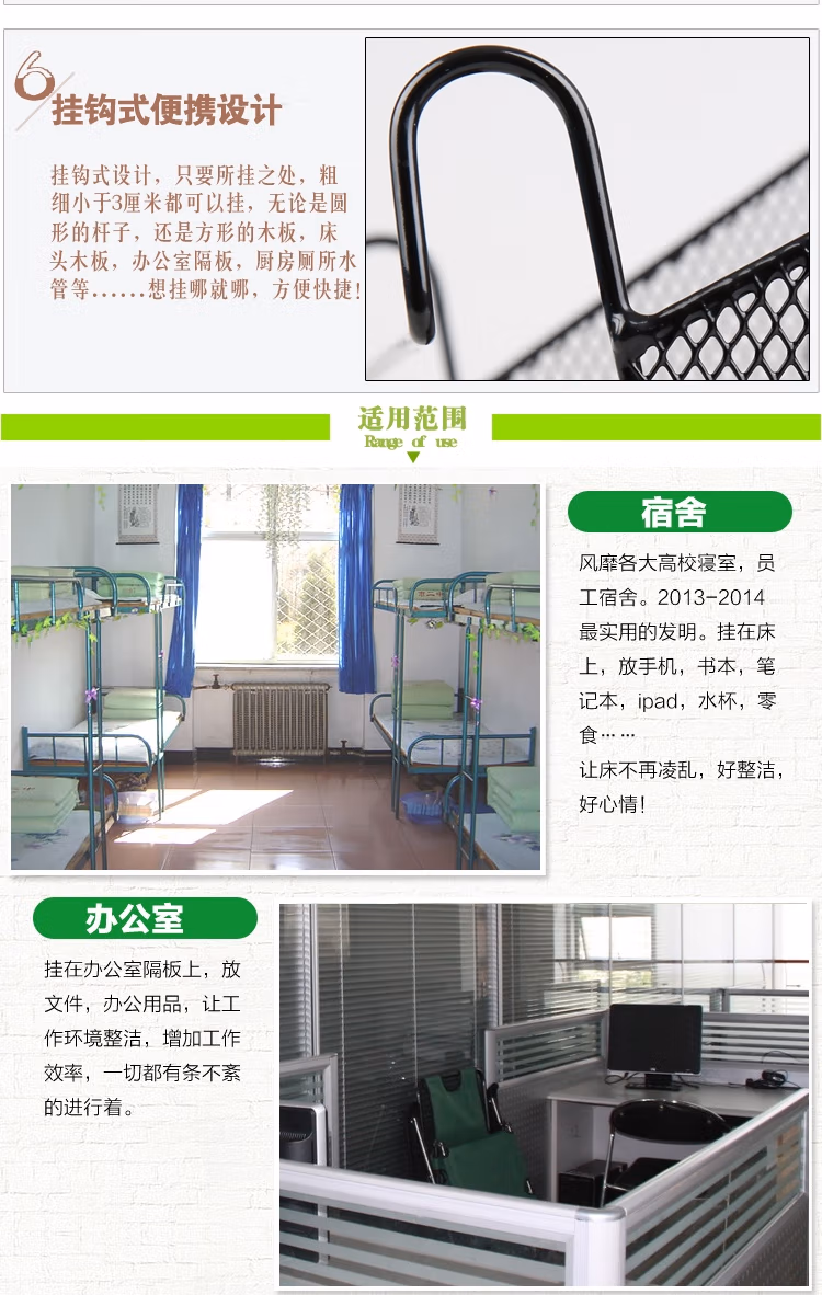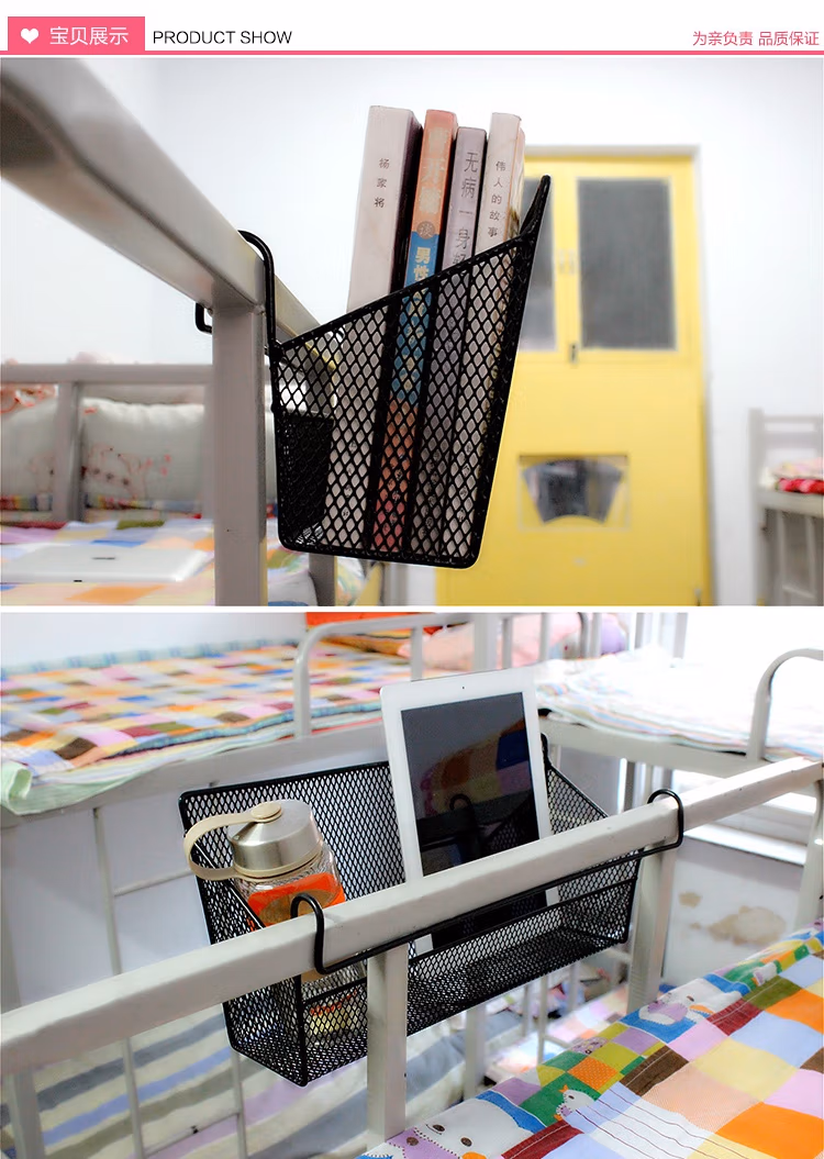 名卡宿舍神器床头收纳架男女寝室上铺床边挂篮床头置物架篮子 黑色国内升级-送绑带