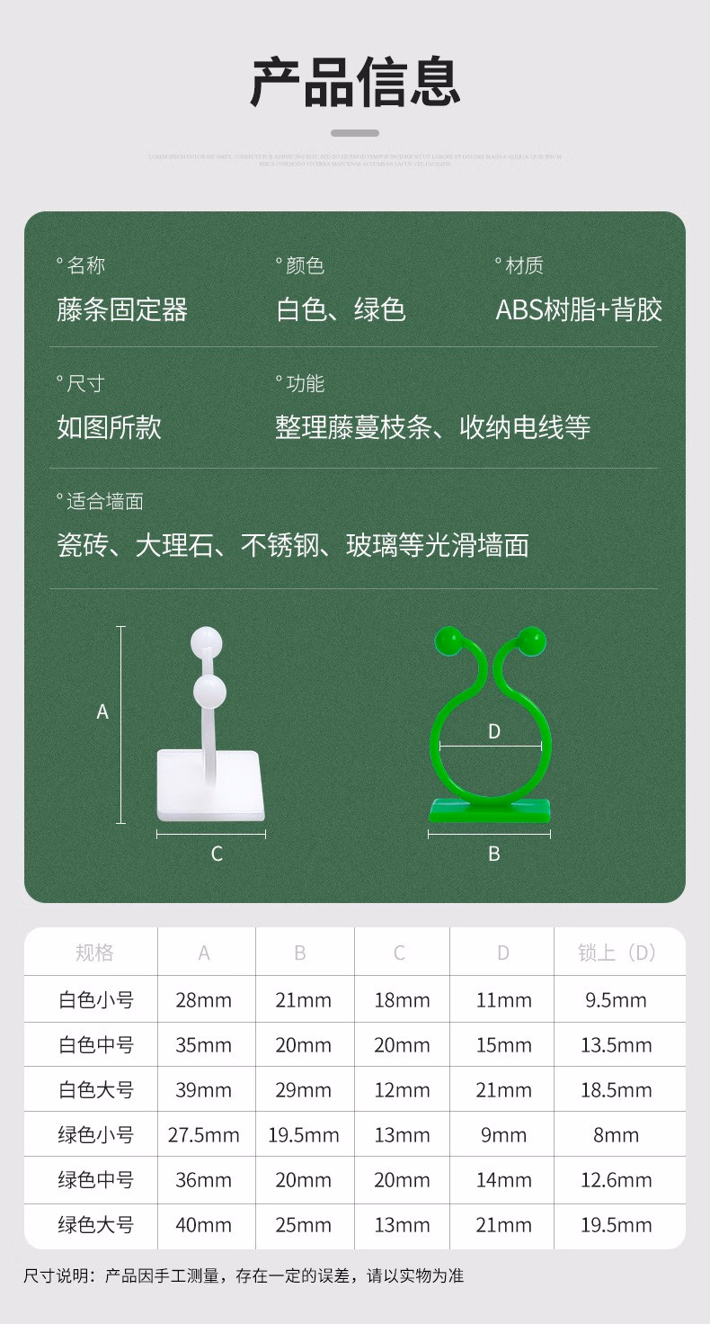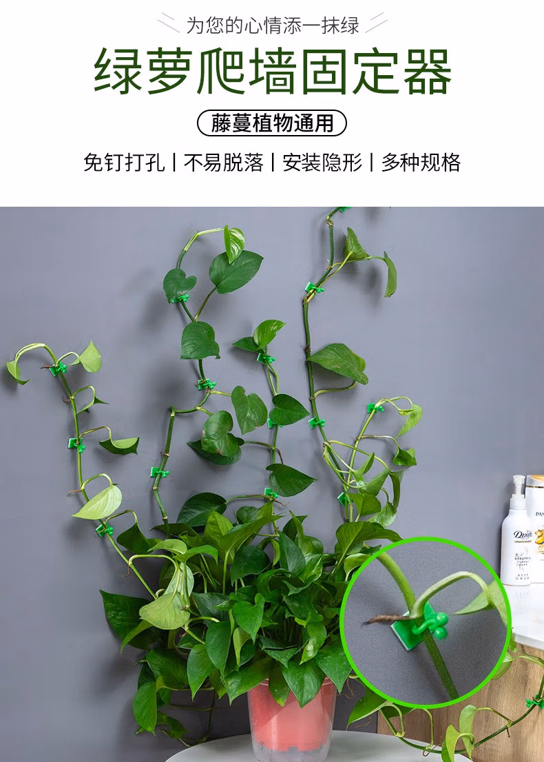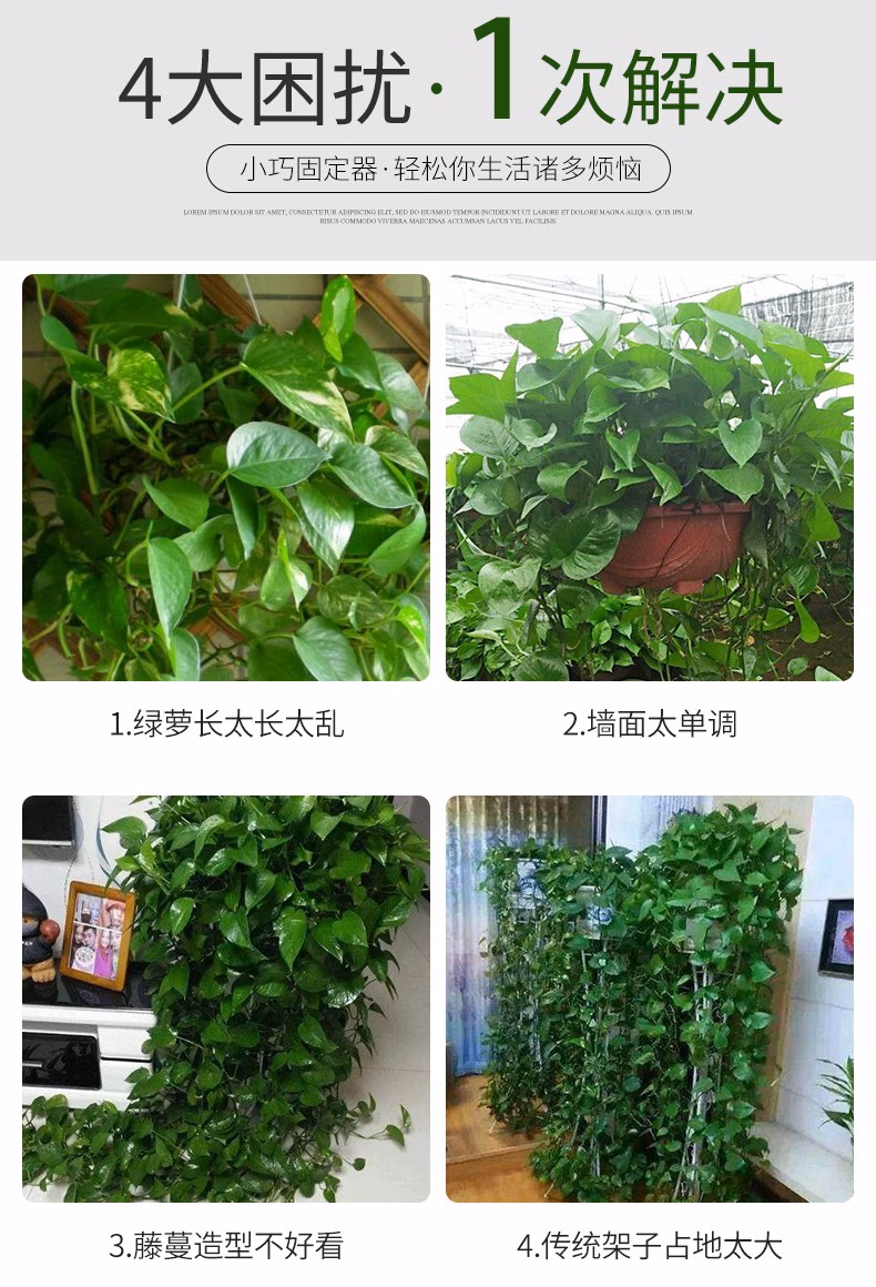 首力50个装绿萝固定器藤蔓爬墙神器绿植爬藤植物攀爬固定器免钉贴墙自粘式挂钩无痕花架阳台固定调节卡扣 【绿色】小号50个(固定枝头细藤)