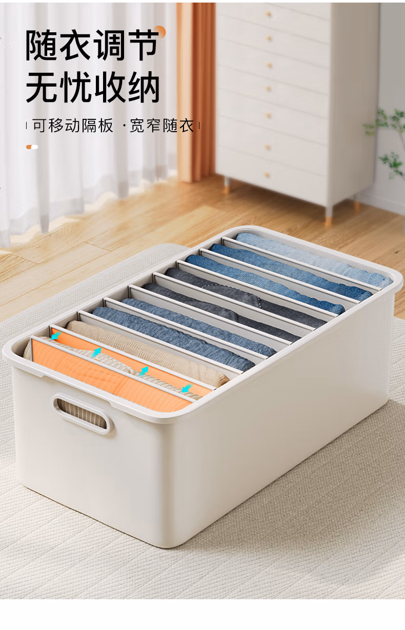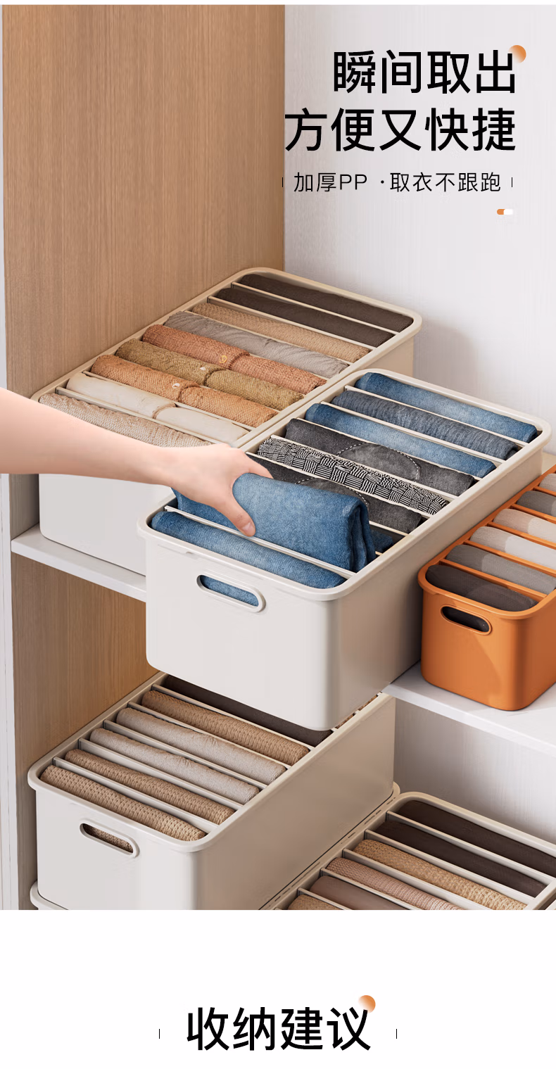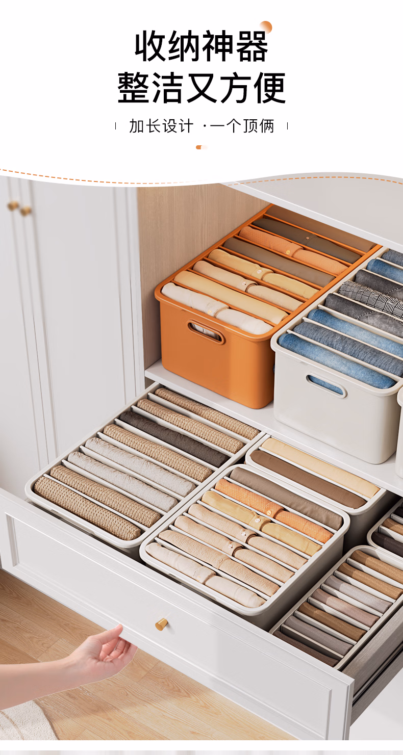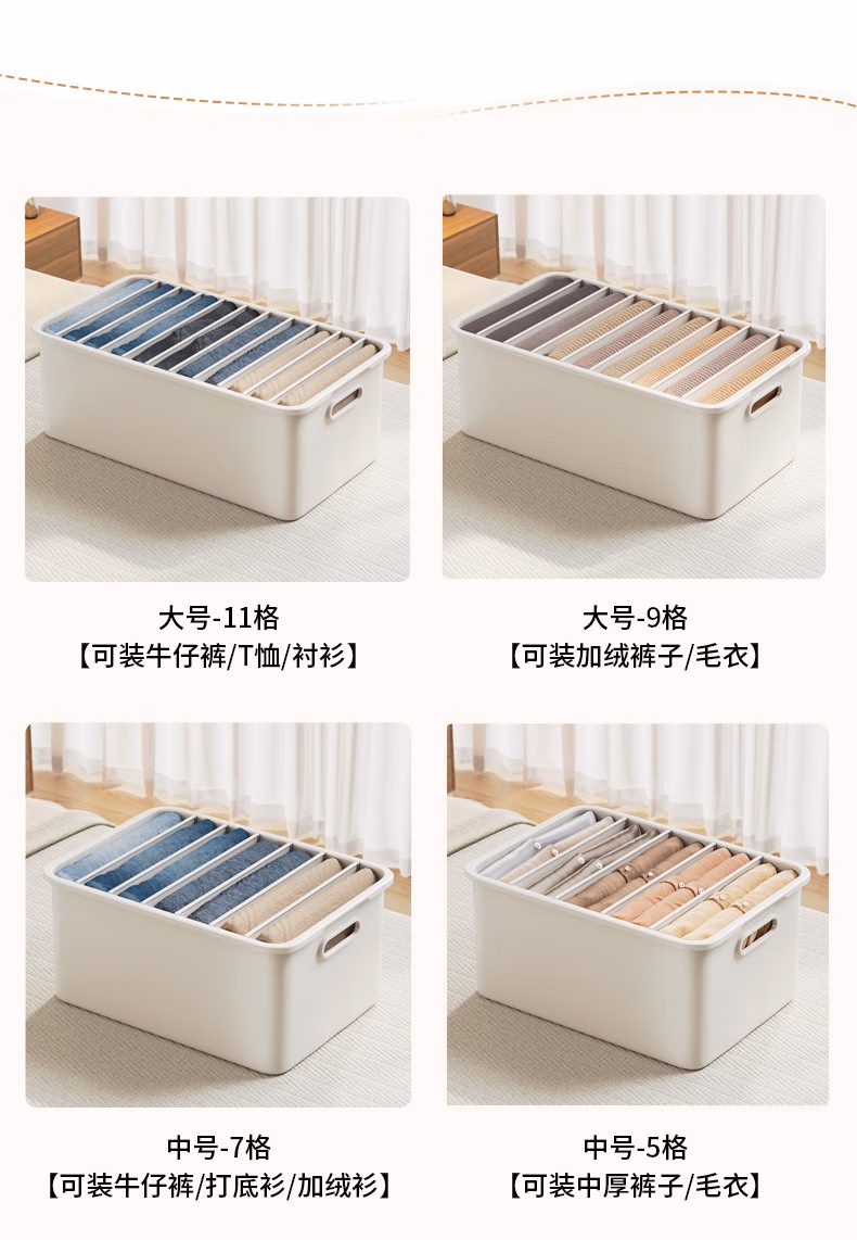 佳帮手收纳盒裤子收纳神器分格衣物收纳箱衣柜抽屉衣服裤子分隔收纳储物整理箱 大号-9格【可装牛仔裤/外套】-单只