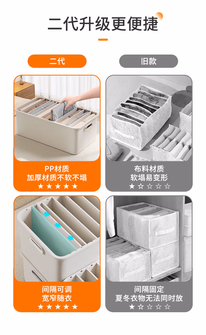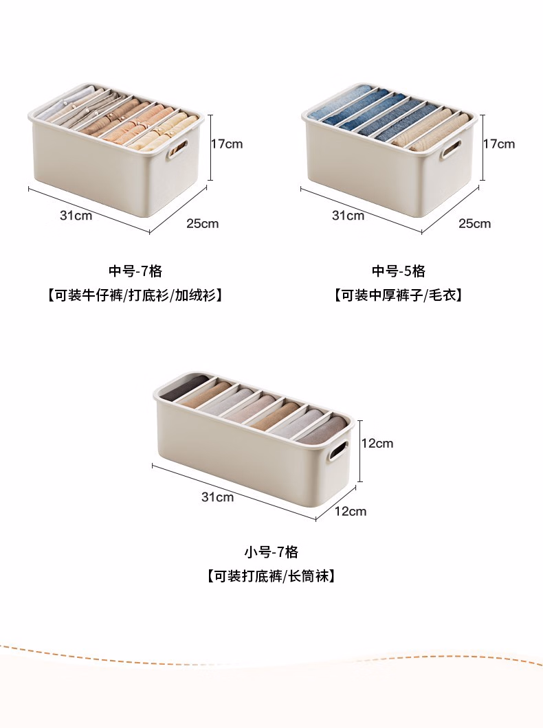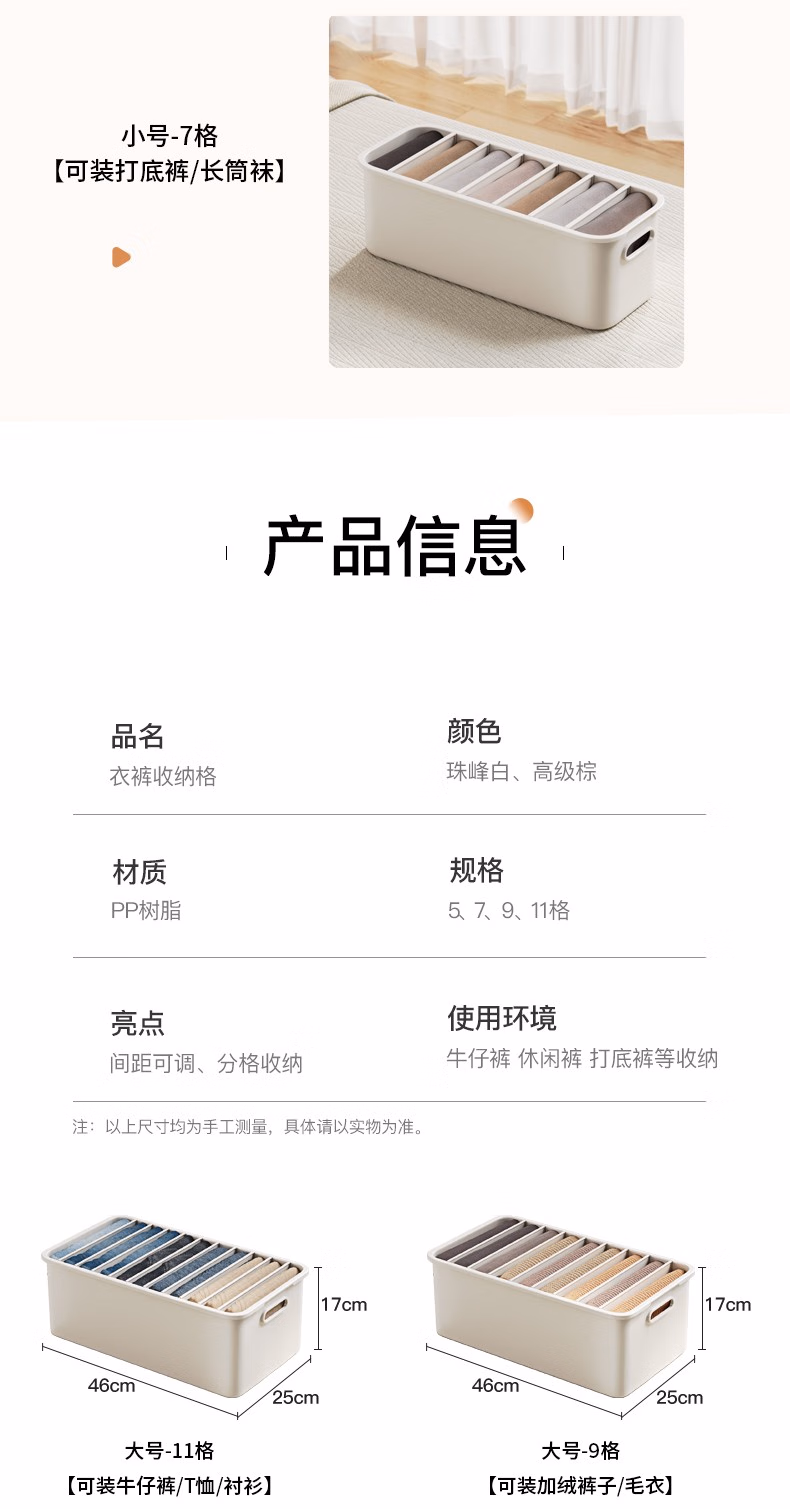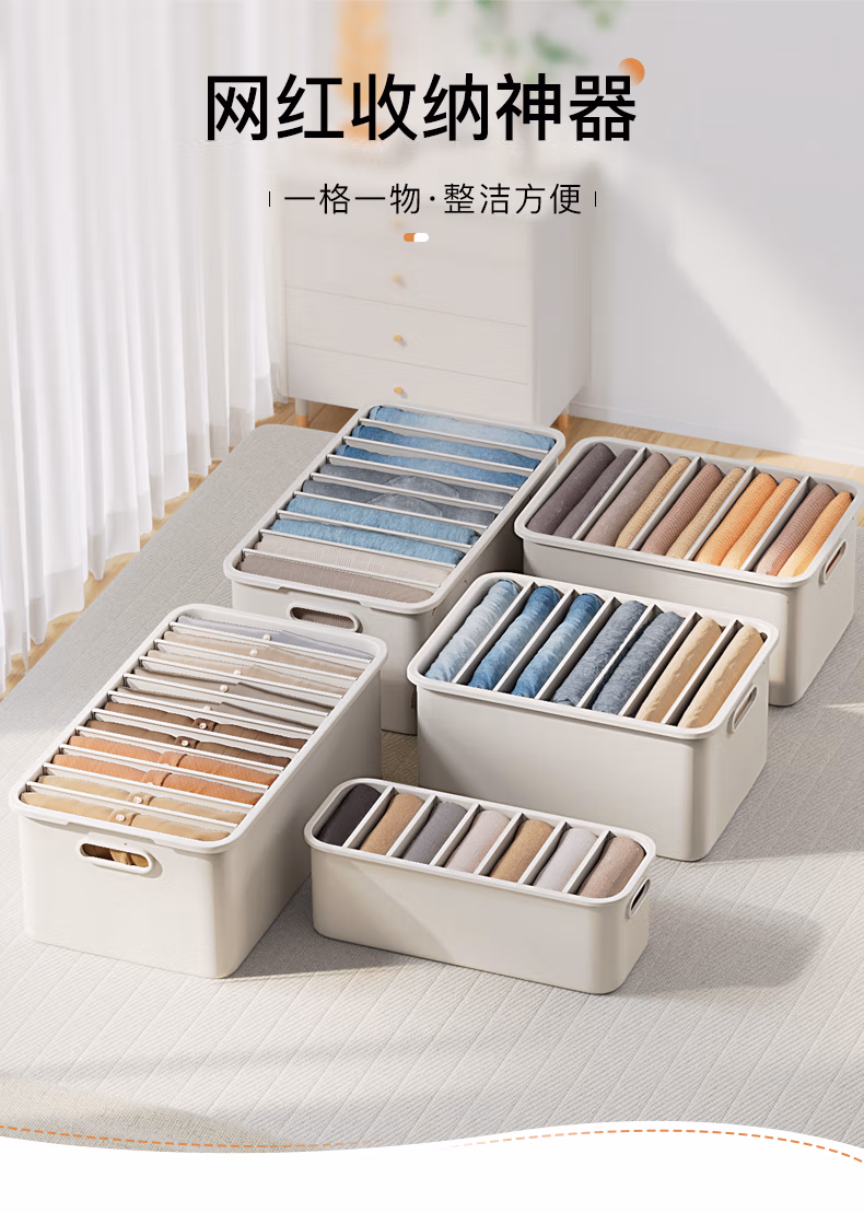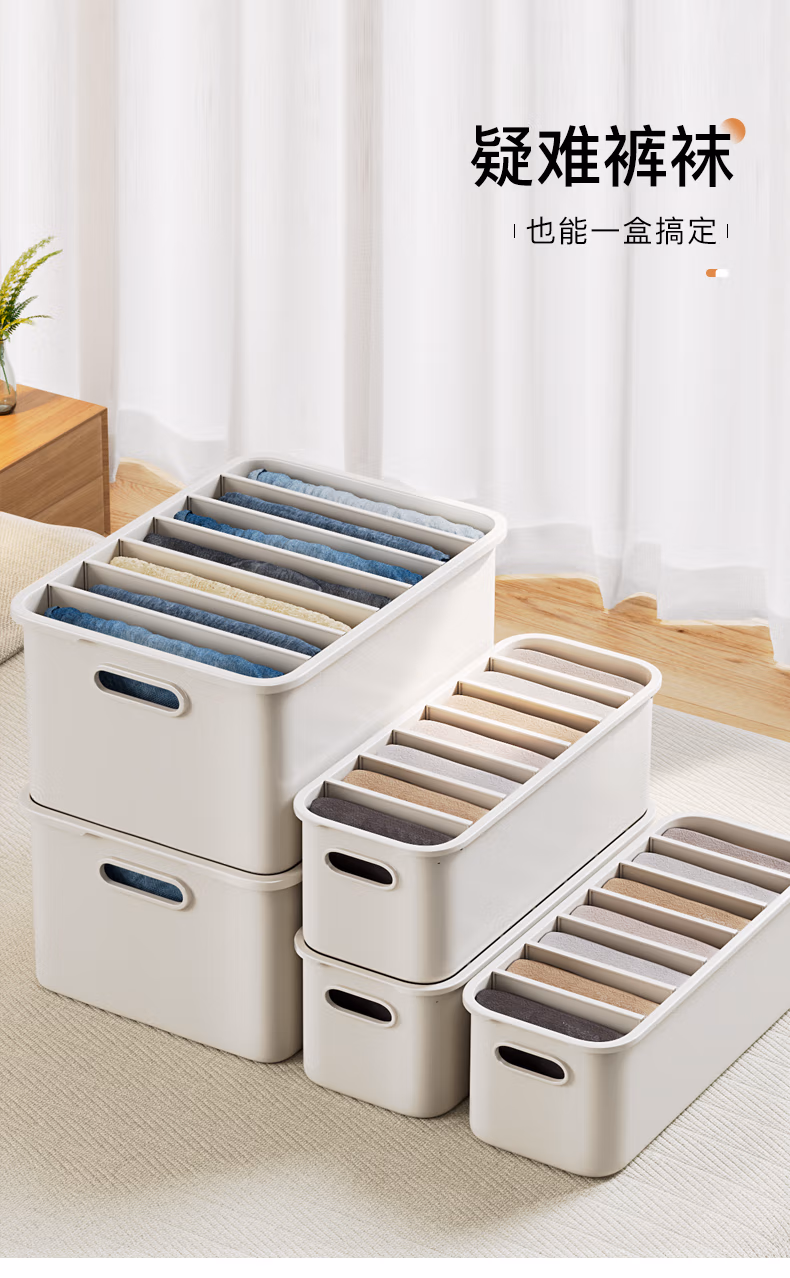 佳帮手收纳盒裤子收纳神器分格衣物收纳箱衣柜抽屉衣服裤子分隔收纳储物整理箱 大号-9格【可装牛仔裤/外套】-单只