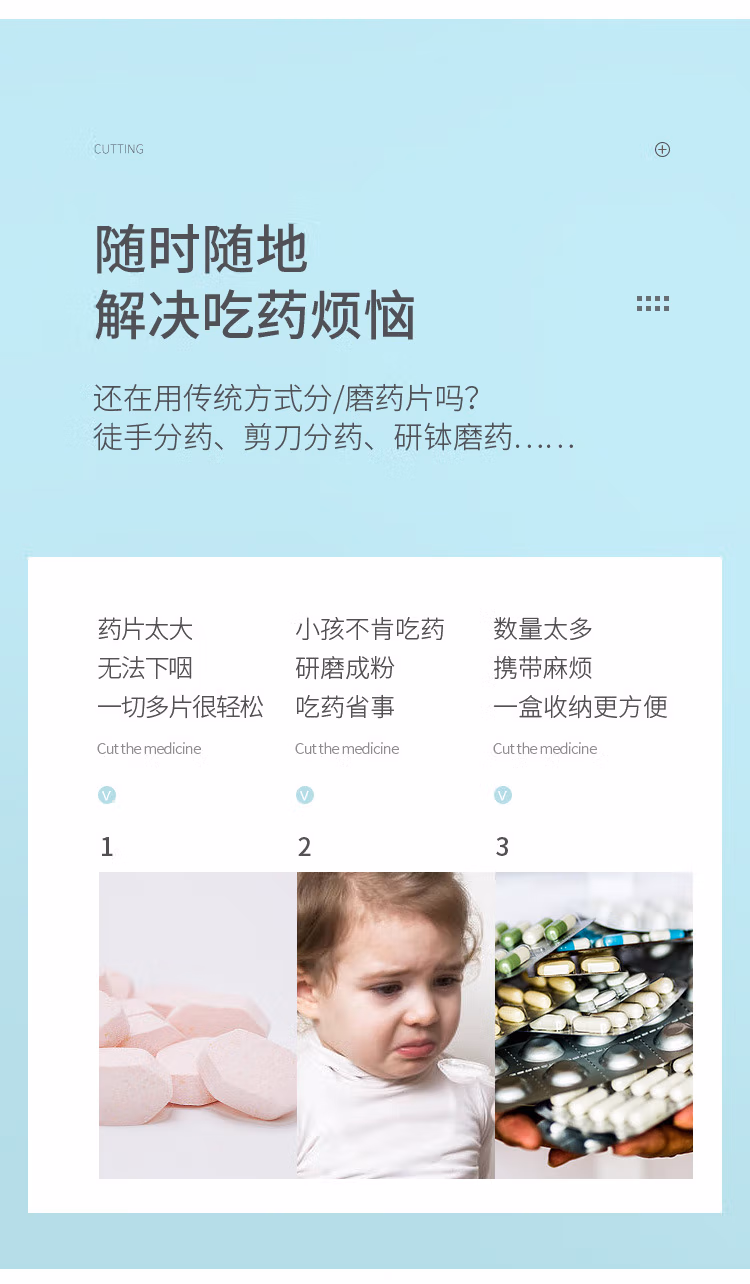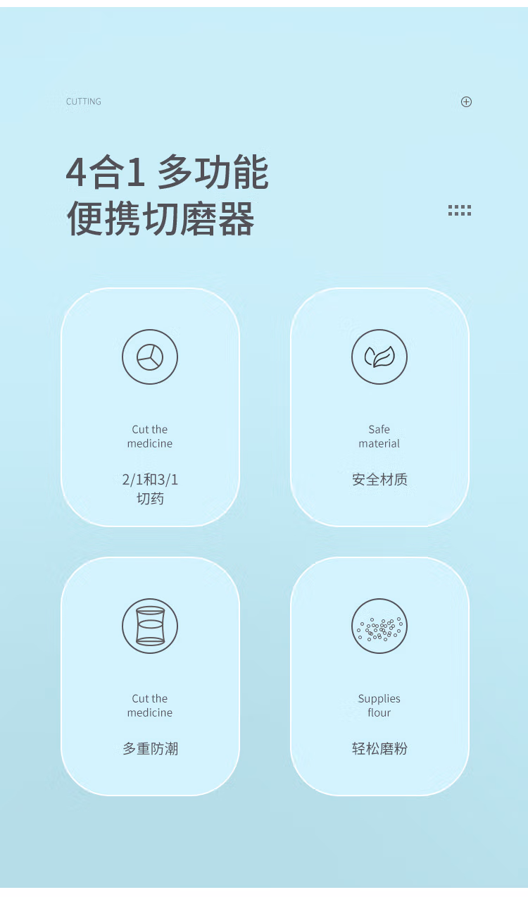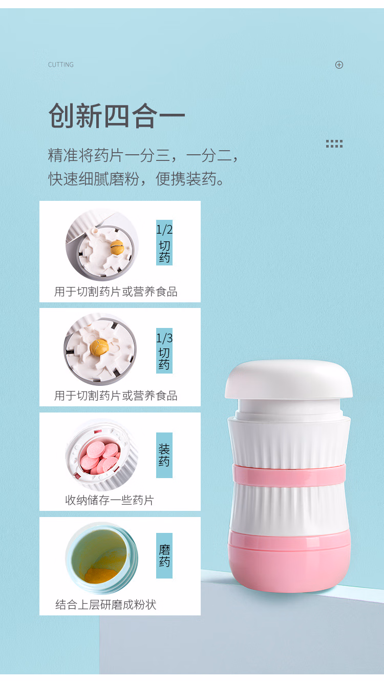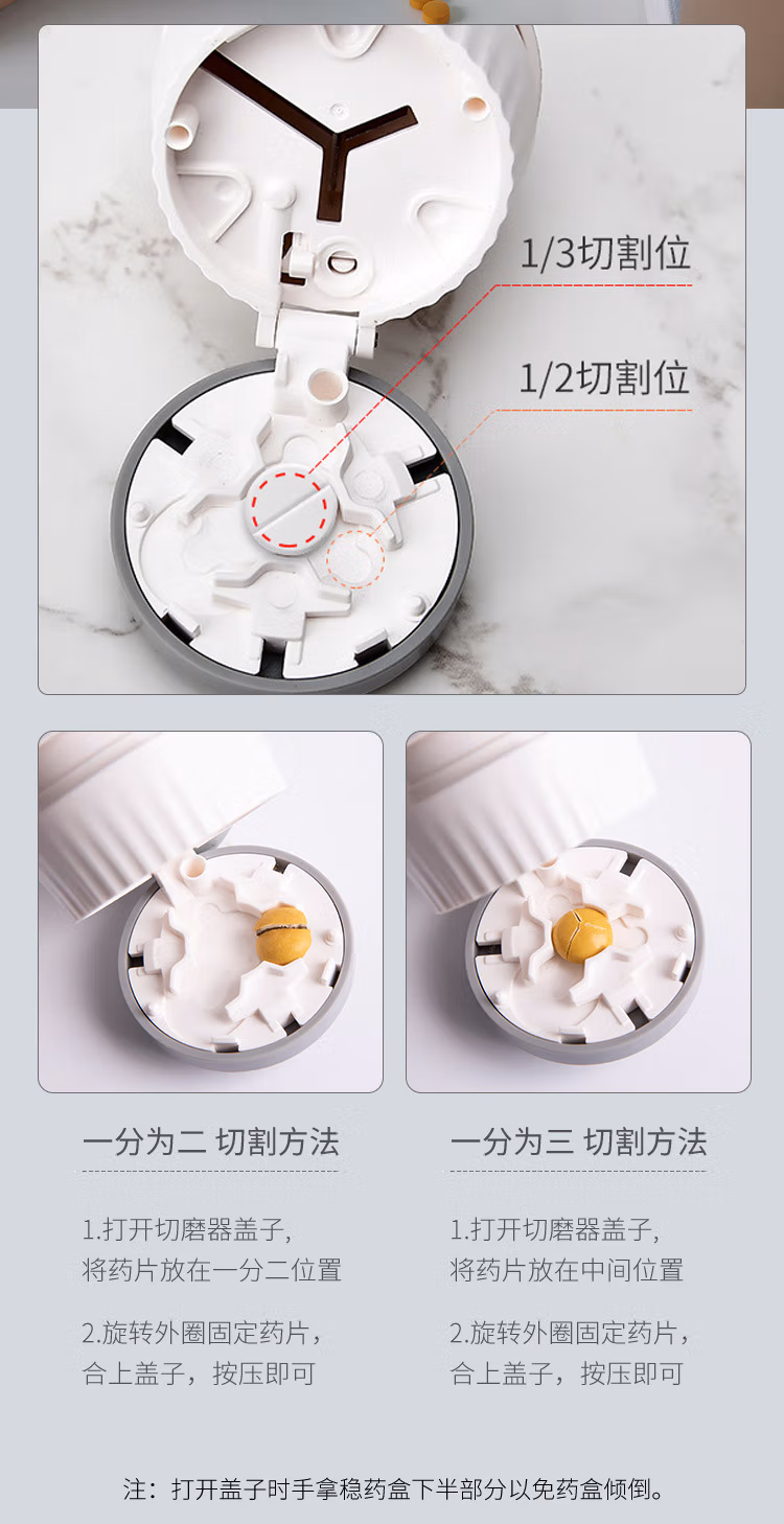 日式切药器一分三迷你便携分药盒多功能药片磨药粉研磨器割药剪药一分二三四儿童碾药片剪刀【升级新款】多功能日式切药器(带清洁刷) 【四合一:一分二、一分三、磨药分、装药】