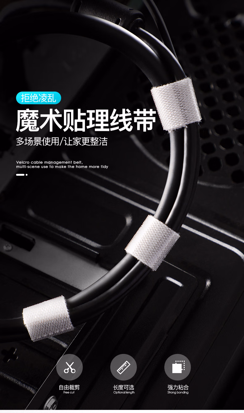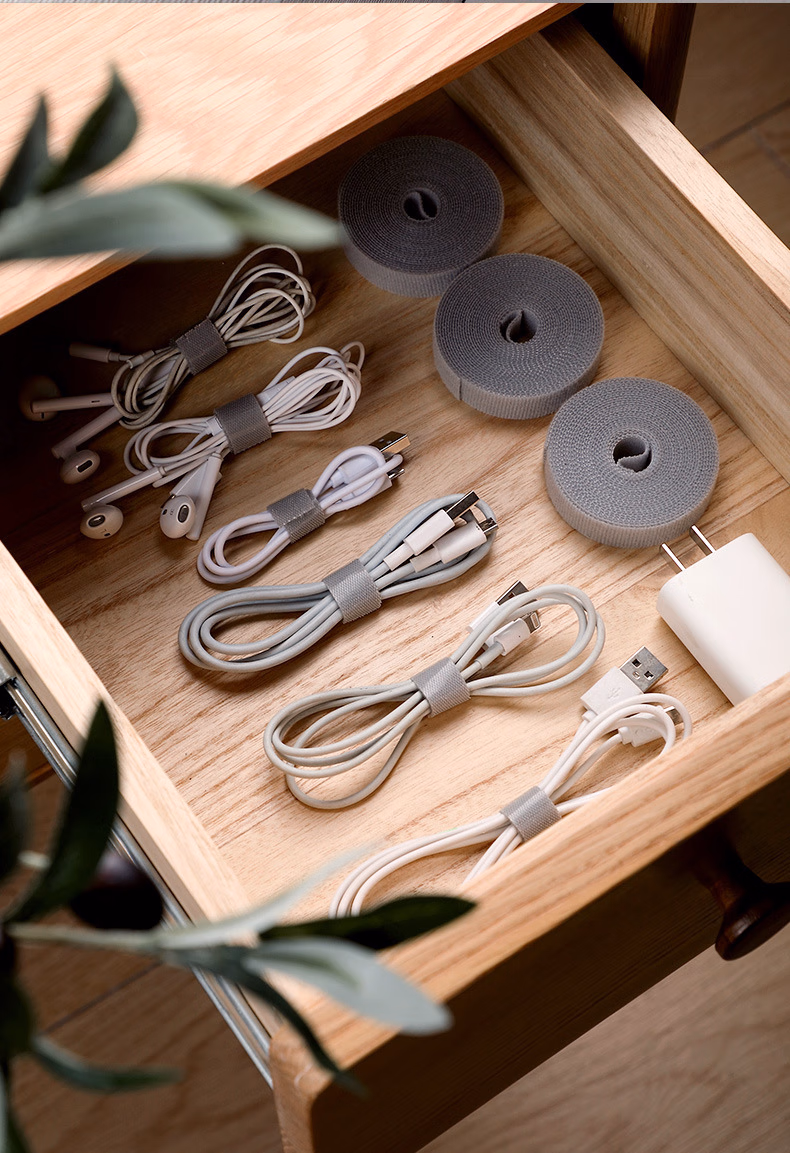 八海鸟数据线收纳【可手撕5米长】电线理线器魔术贴桌面线收纳扎带缠绕线粘扣束线带数据线整理收纳神器