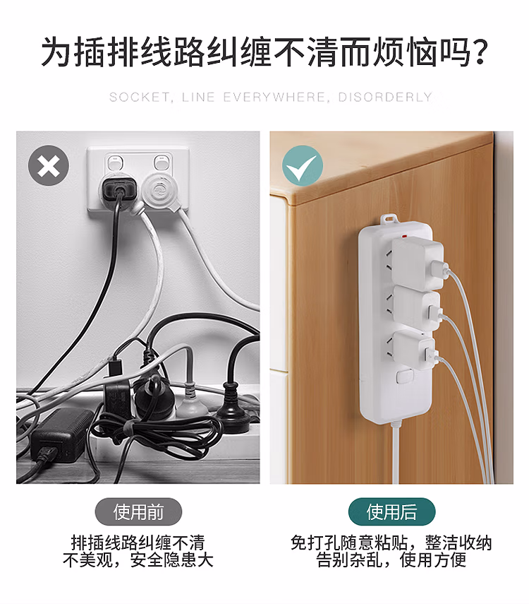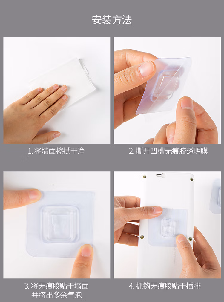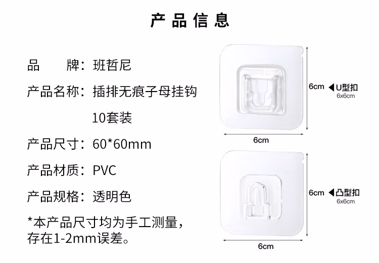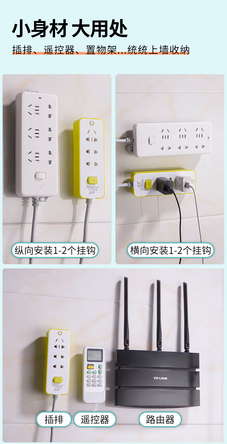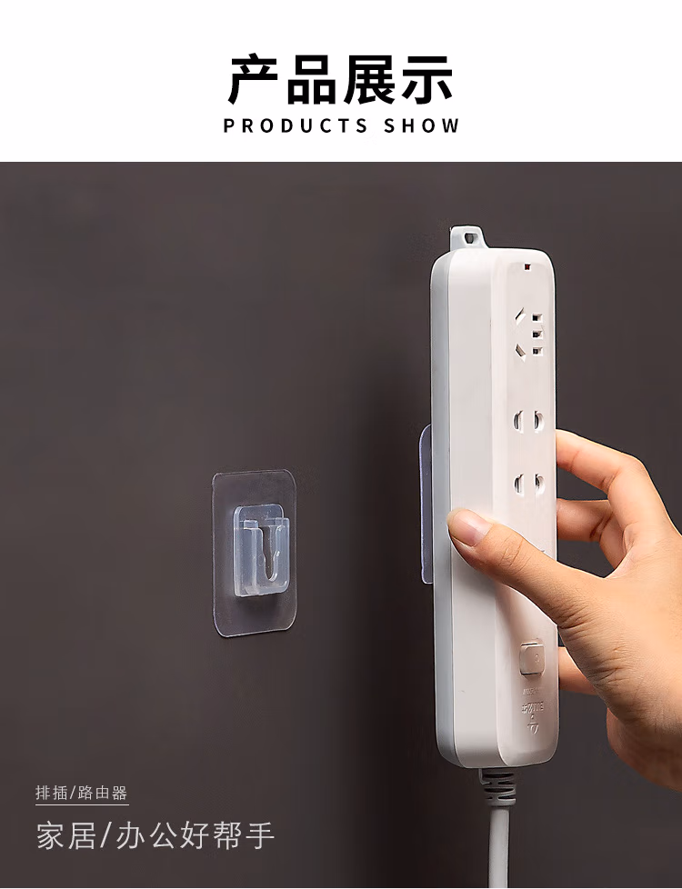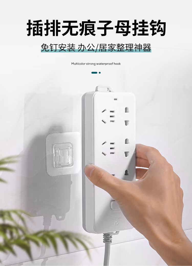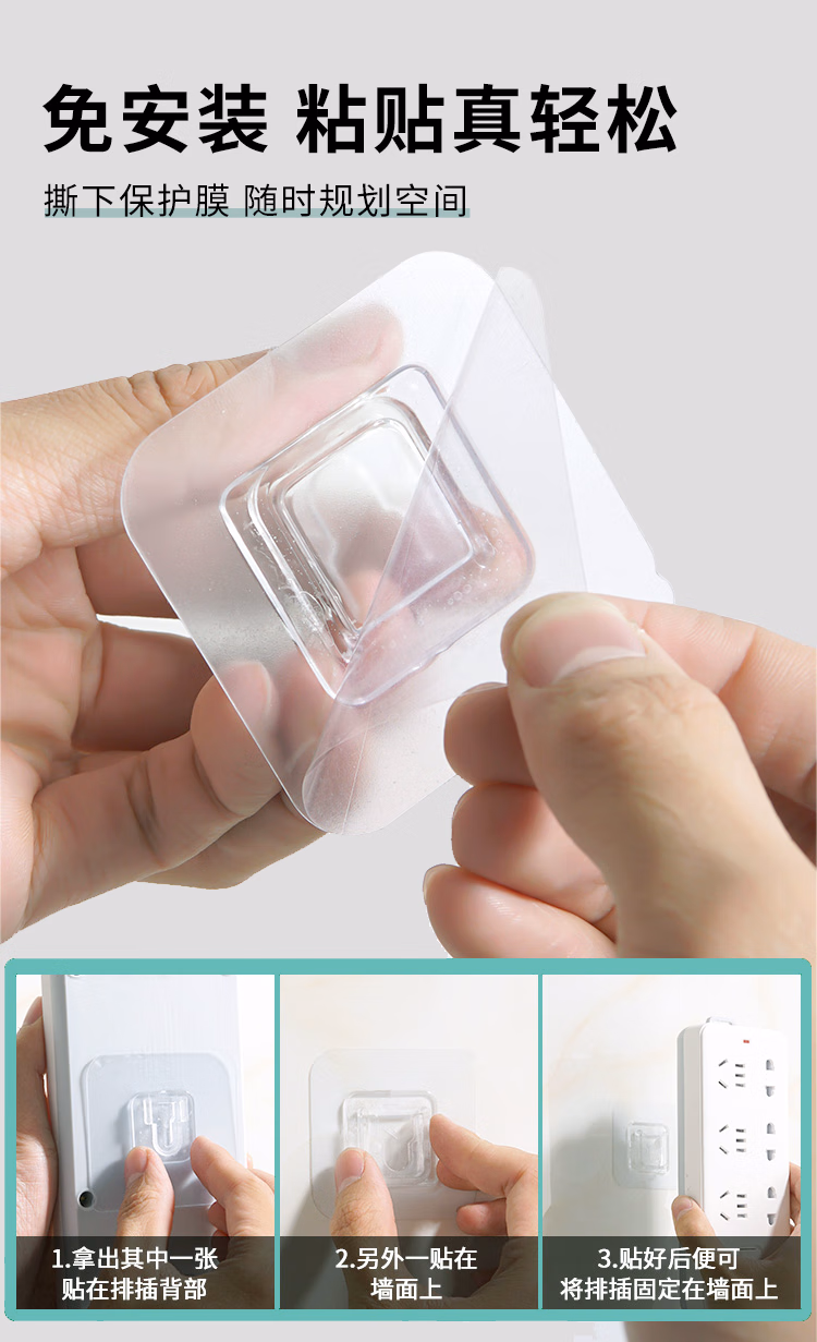 班哲尼插排固定器子母扣强力粘胶贴片卡扣多功能无痕固定器免打孔壁挂路由器收纳神器免钉透明粘钩 10套装