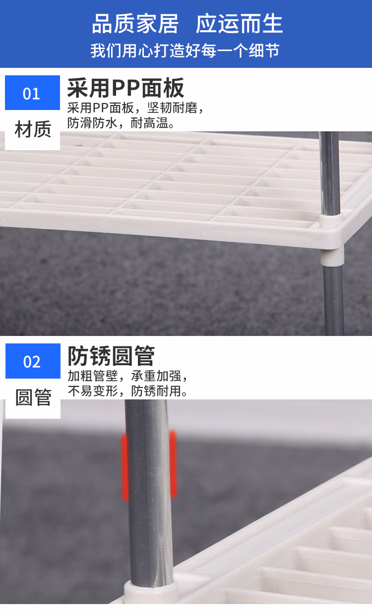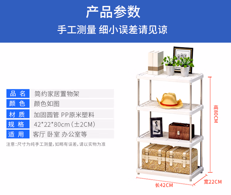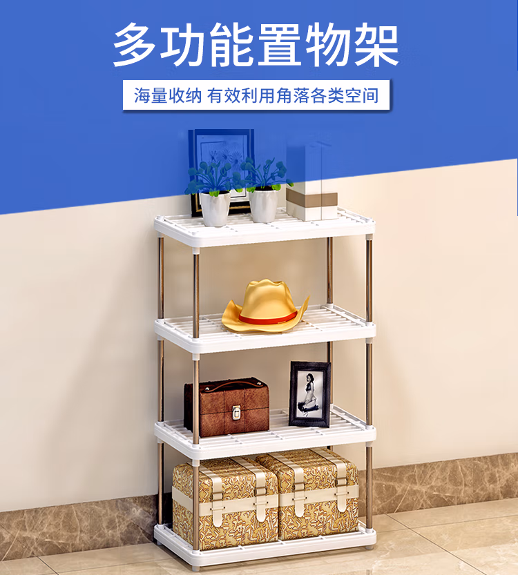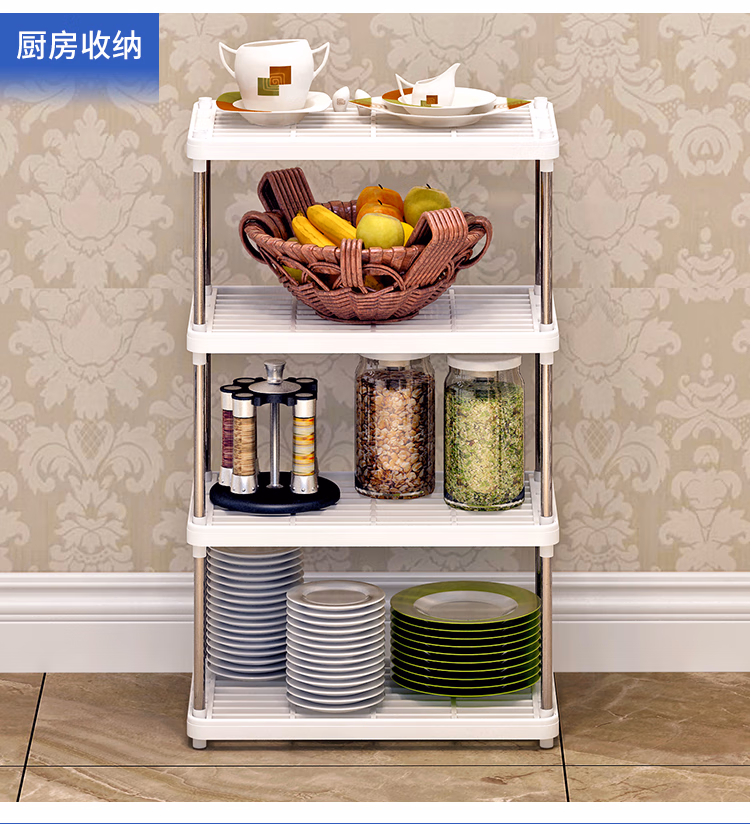 林仕屋厨房置物架落地 台面收纳架 卫生间浴室置物架 四层层架 落地储物架 自营办公室家用收纳架书架