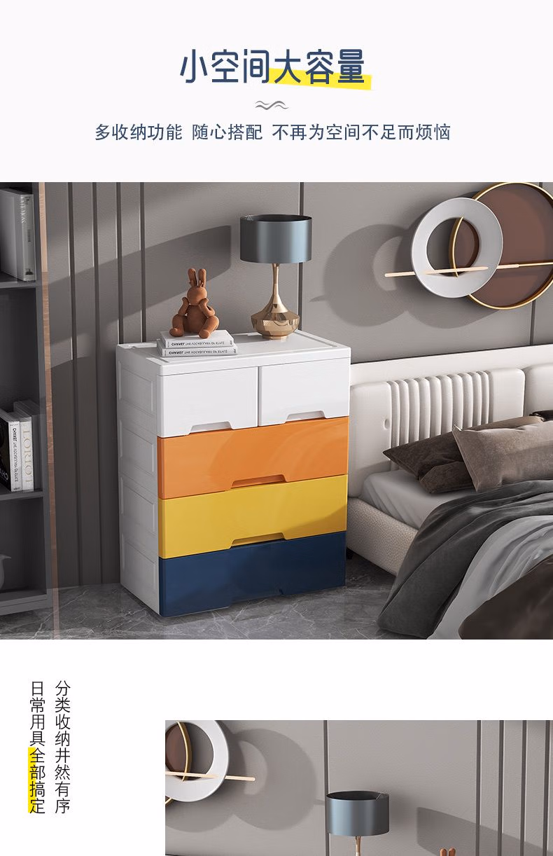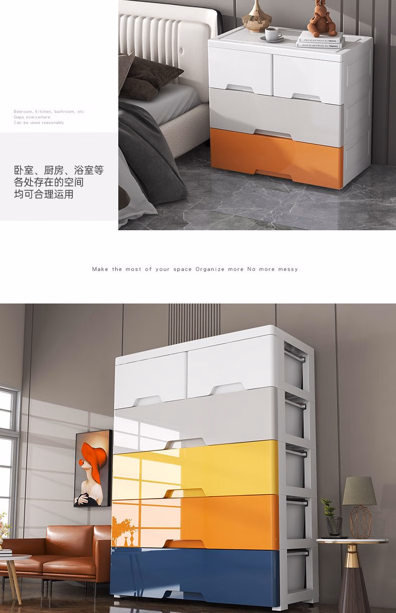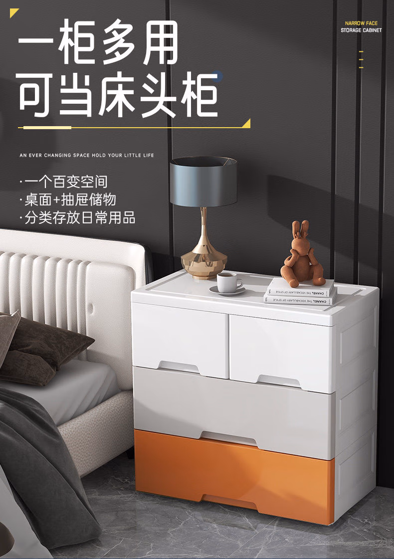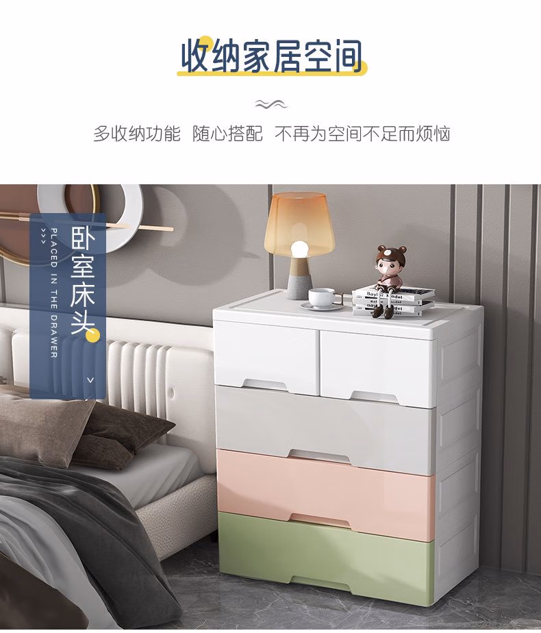 小米(M I)米 家生态家居通用床头柜简约现代储物置物柜简易塑料抽屉式卧室家用小型床边收纳柜 48面宽【3层】莫兰迪
