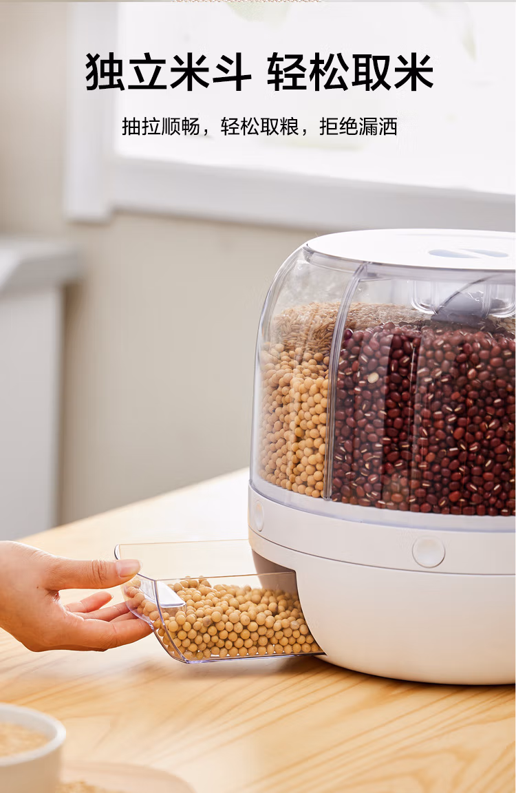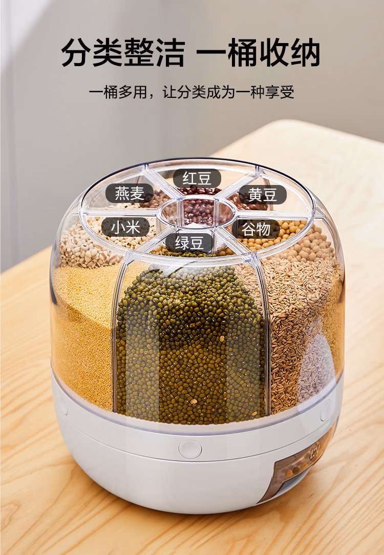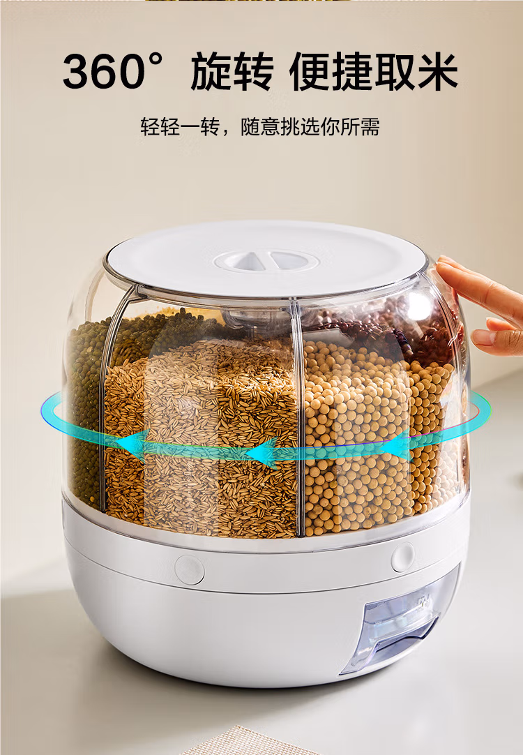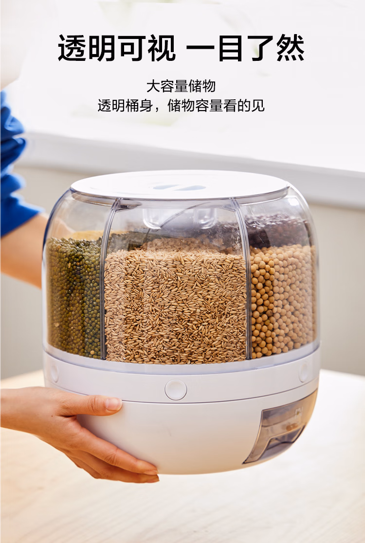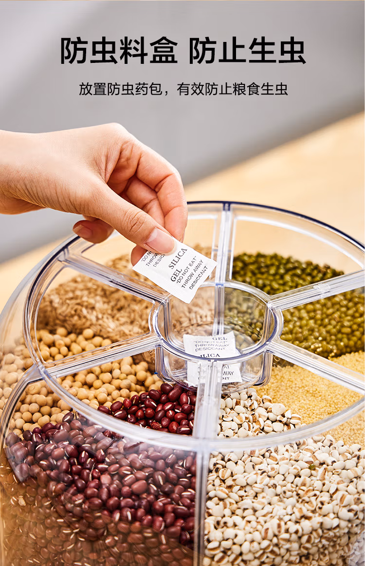 可旋转五谷杂粮收纳盒分格装米桶防虫防潮家用食品级六合一收纳储米箱罐