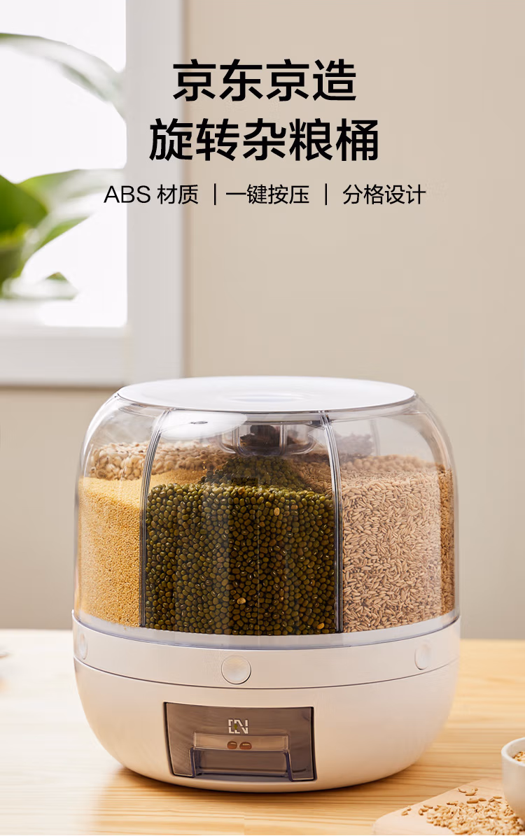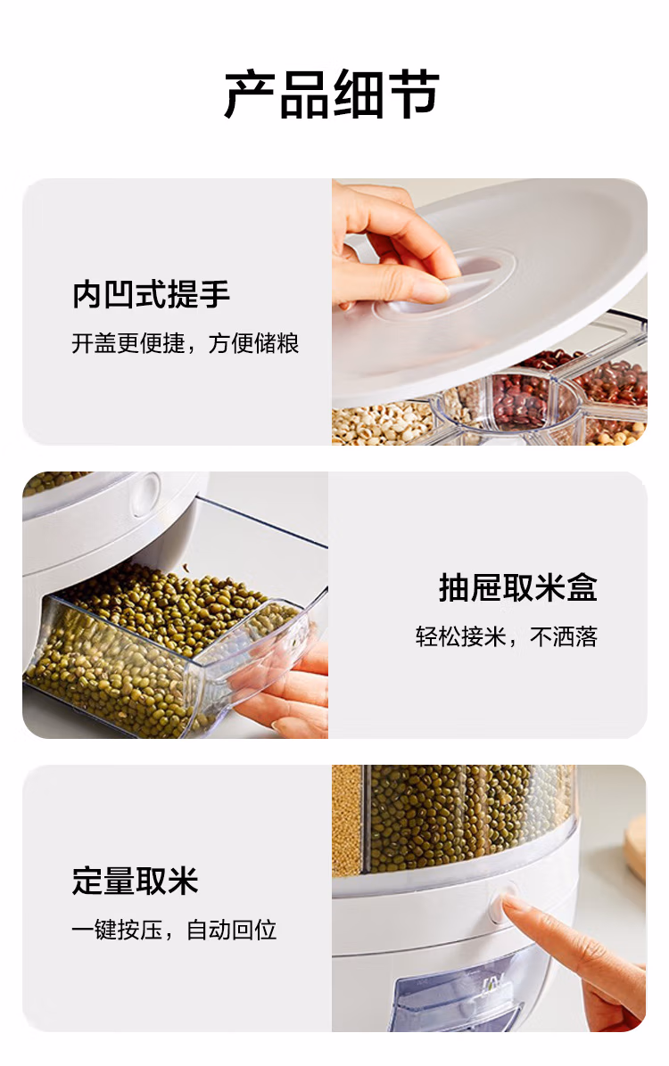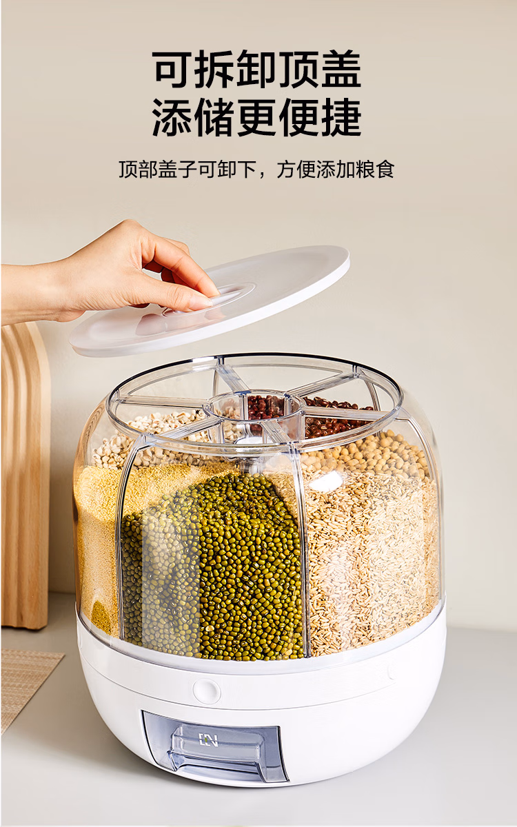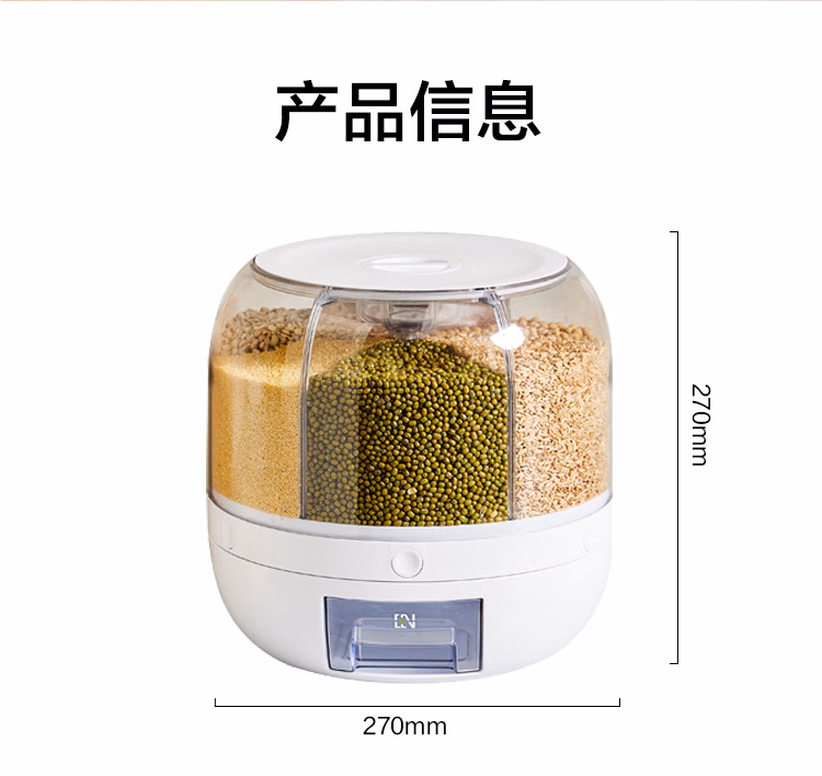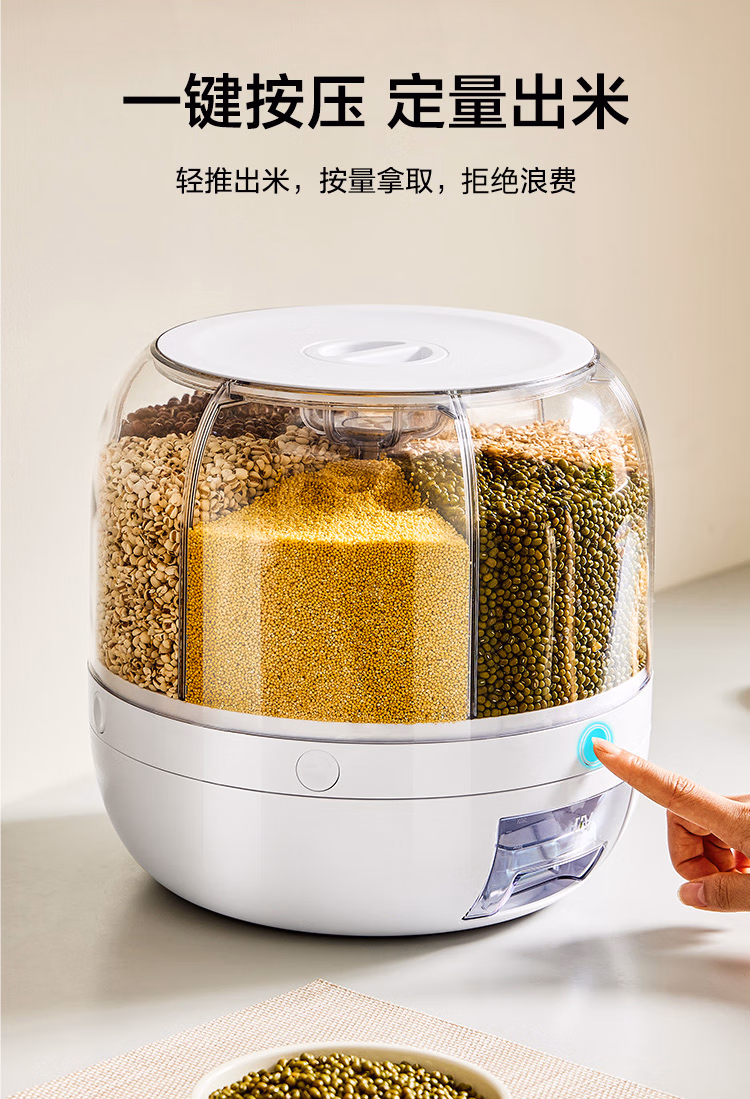 可旋转五谷杂粮收纳盒分格装米桶防虫防潮家用食品级六合一收纳储米箱罐