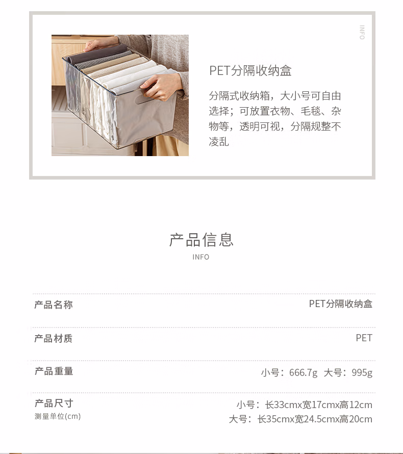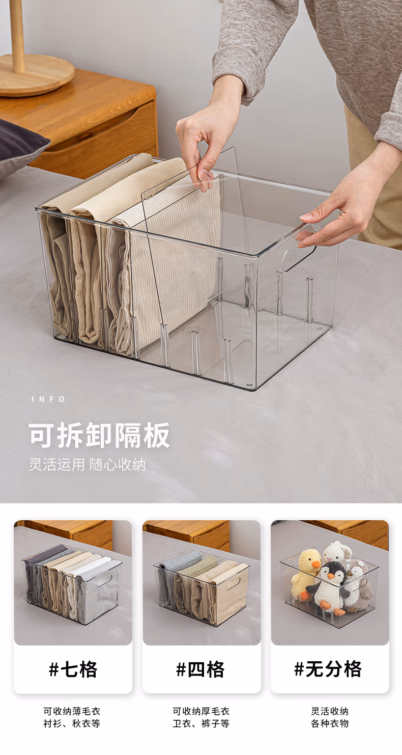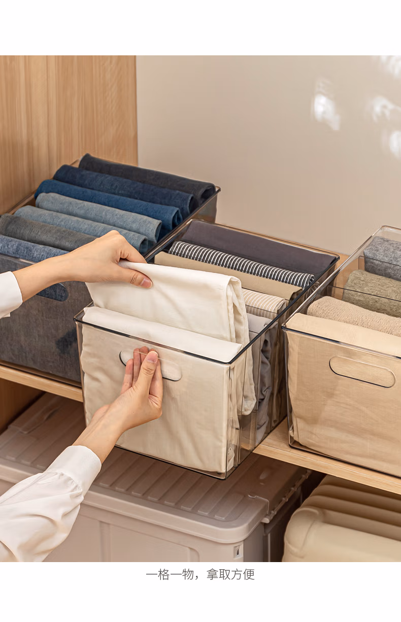 角落良品家用衣服裤子收纳箱牛仔裤分隔收纳盒抽屉式衣柜分格整理收纳盒 大号1个【35X24.5X20cm】