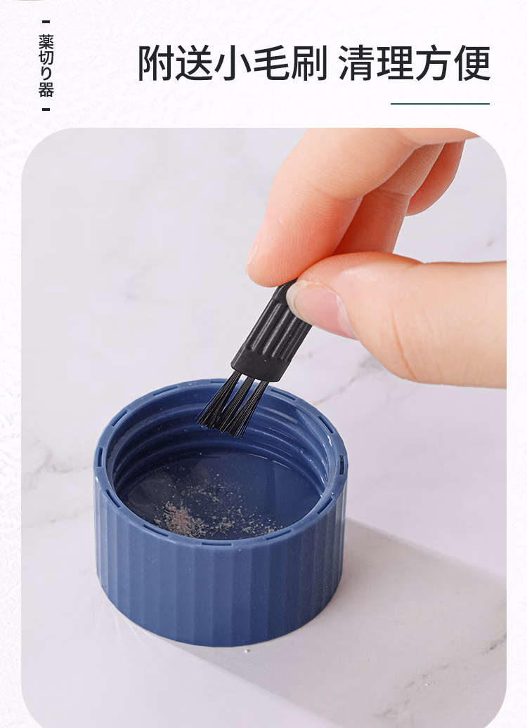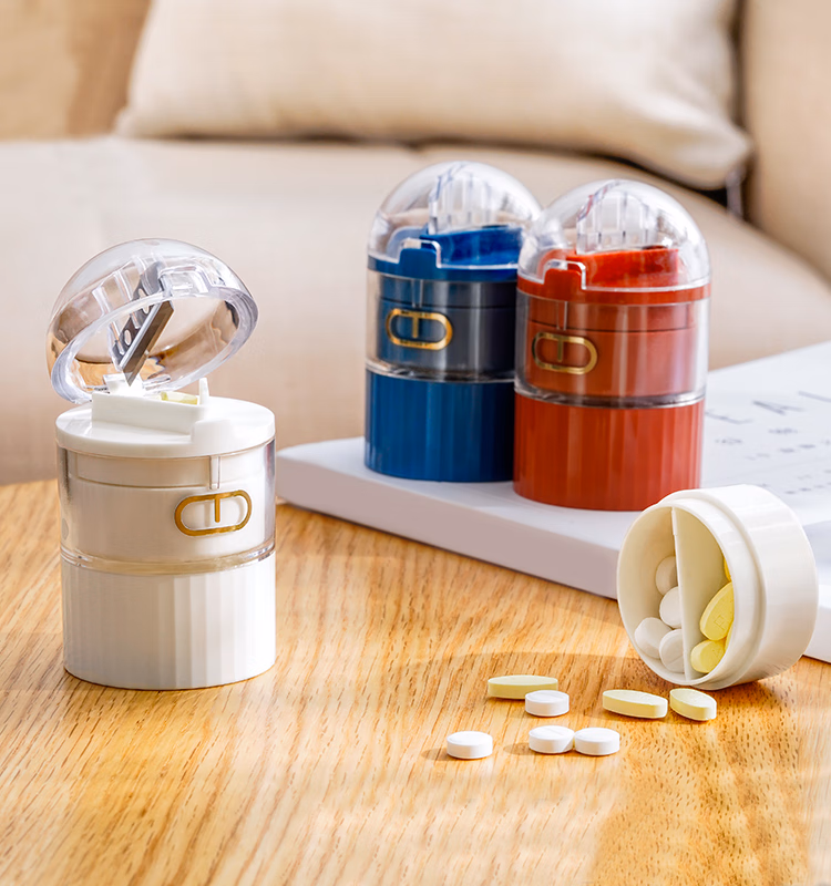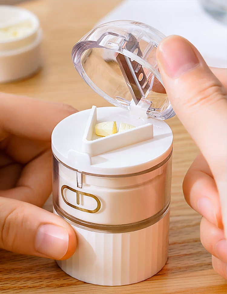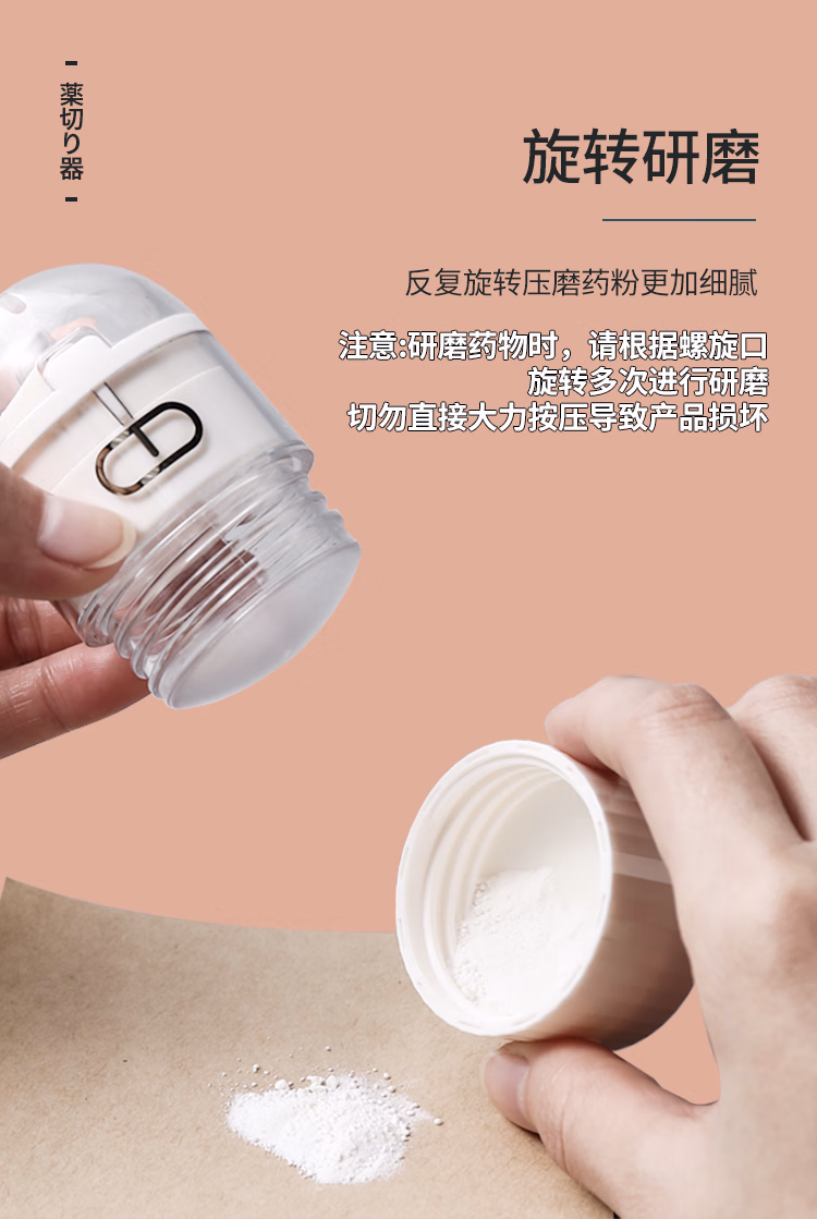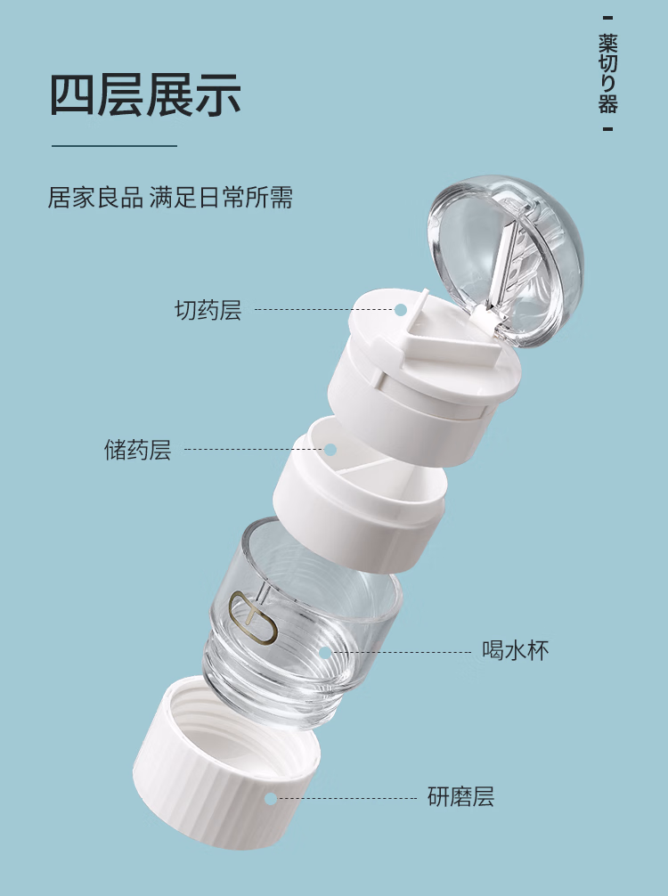 班哲尼切药器一分四可固定药片分药器四八分一分二研磨器收纳盒切药盒磨粉便携切割小药片分装药盒 圆柱白色