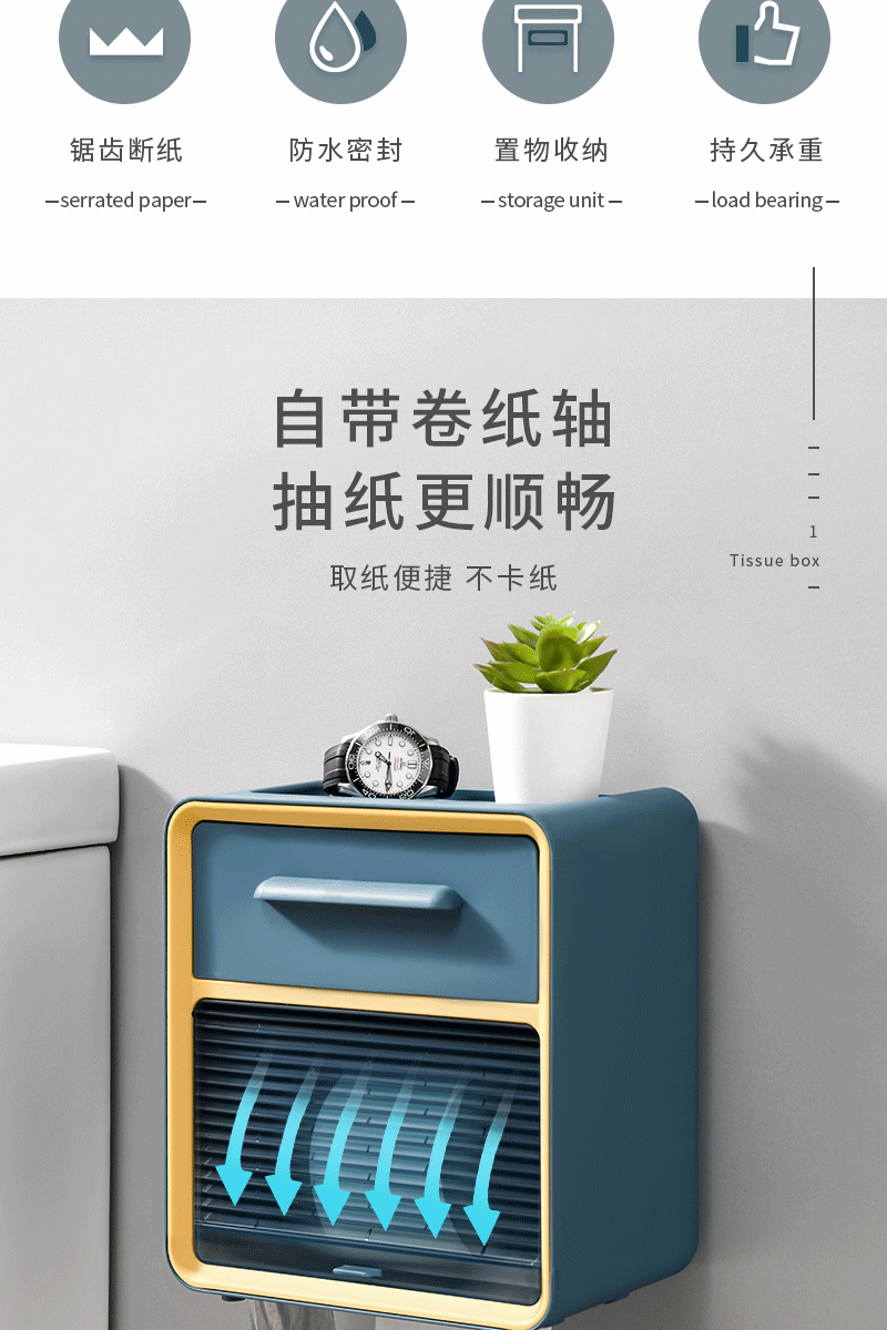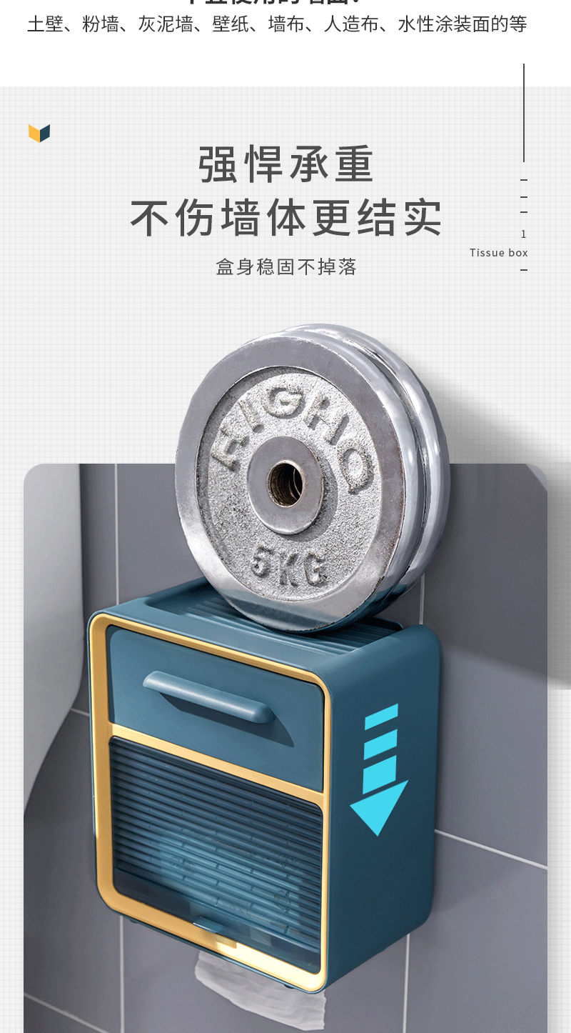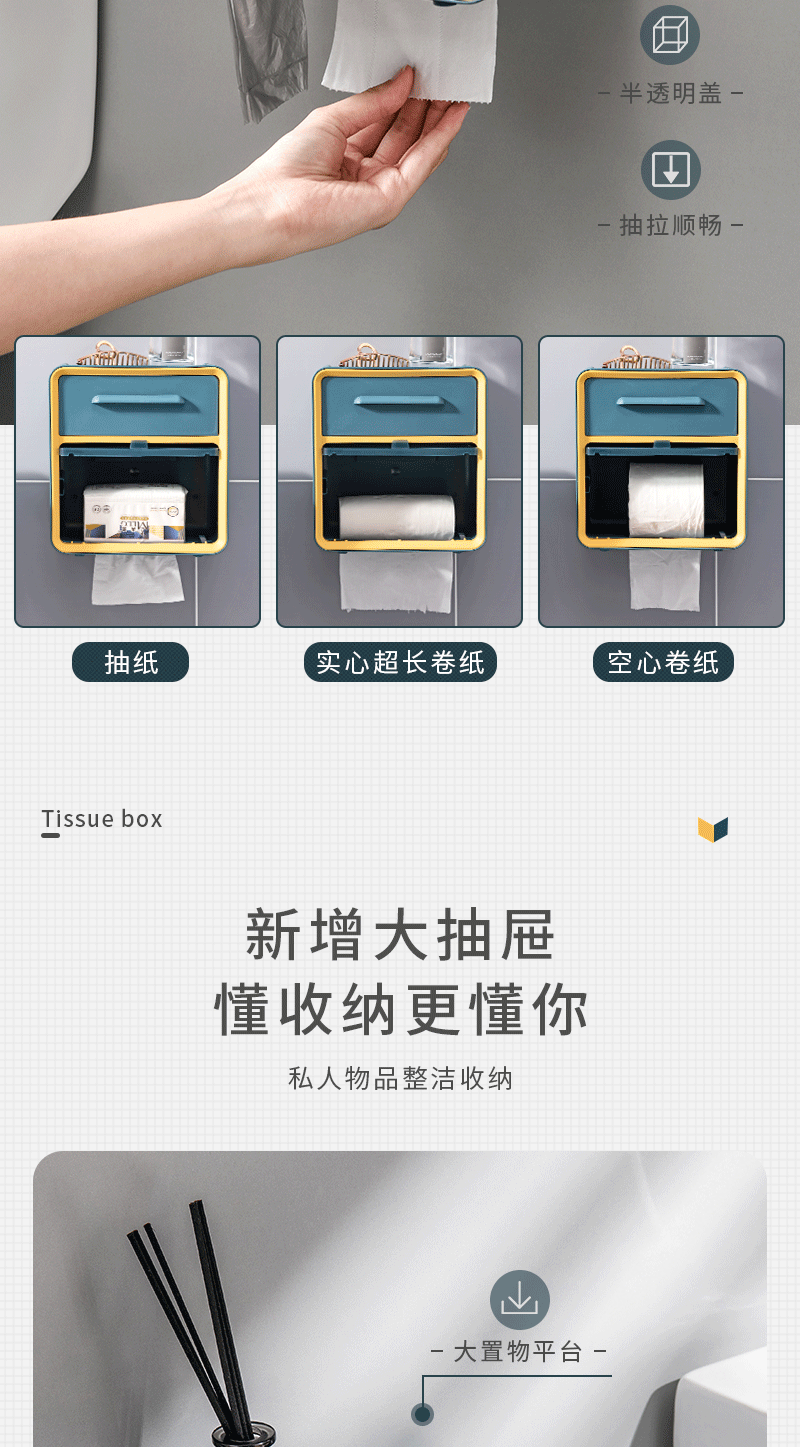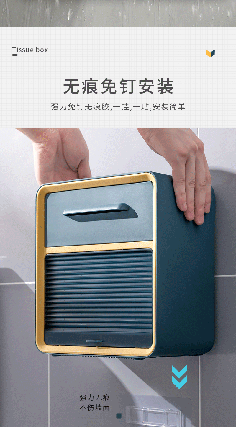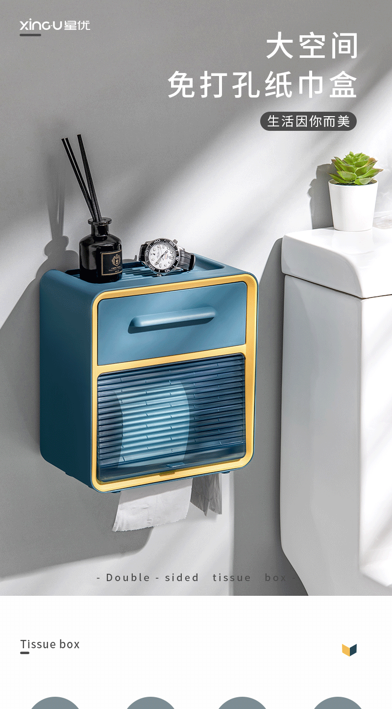 星优卫生间纸巾盒免打孔防水壁挂式卫生纸置物架卷纸盒厕所抽纸盒 经典蓝【升级款】