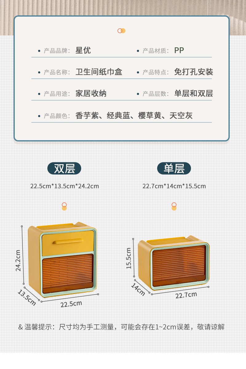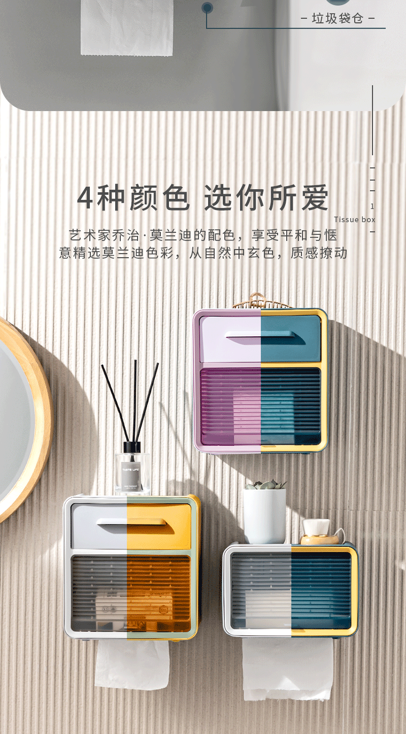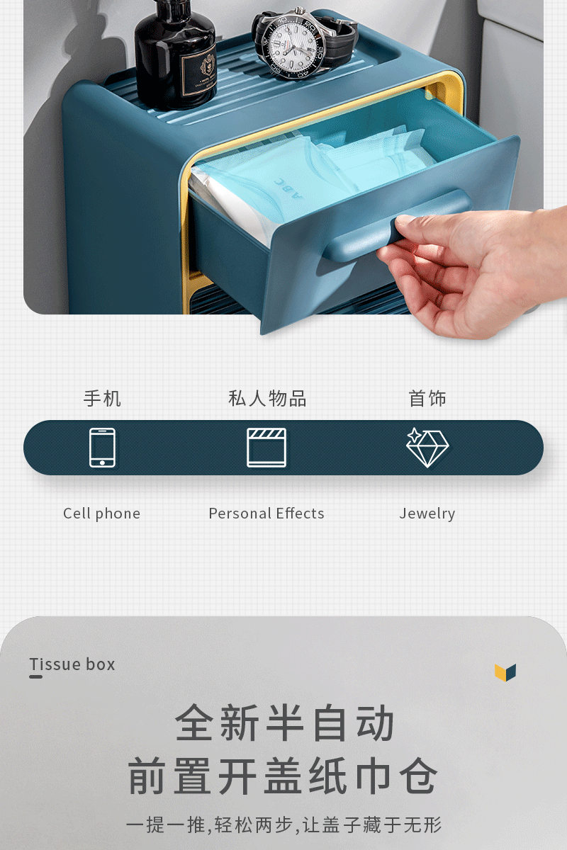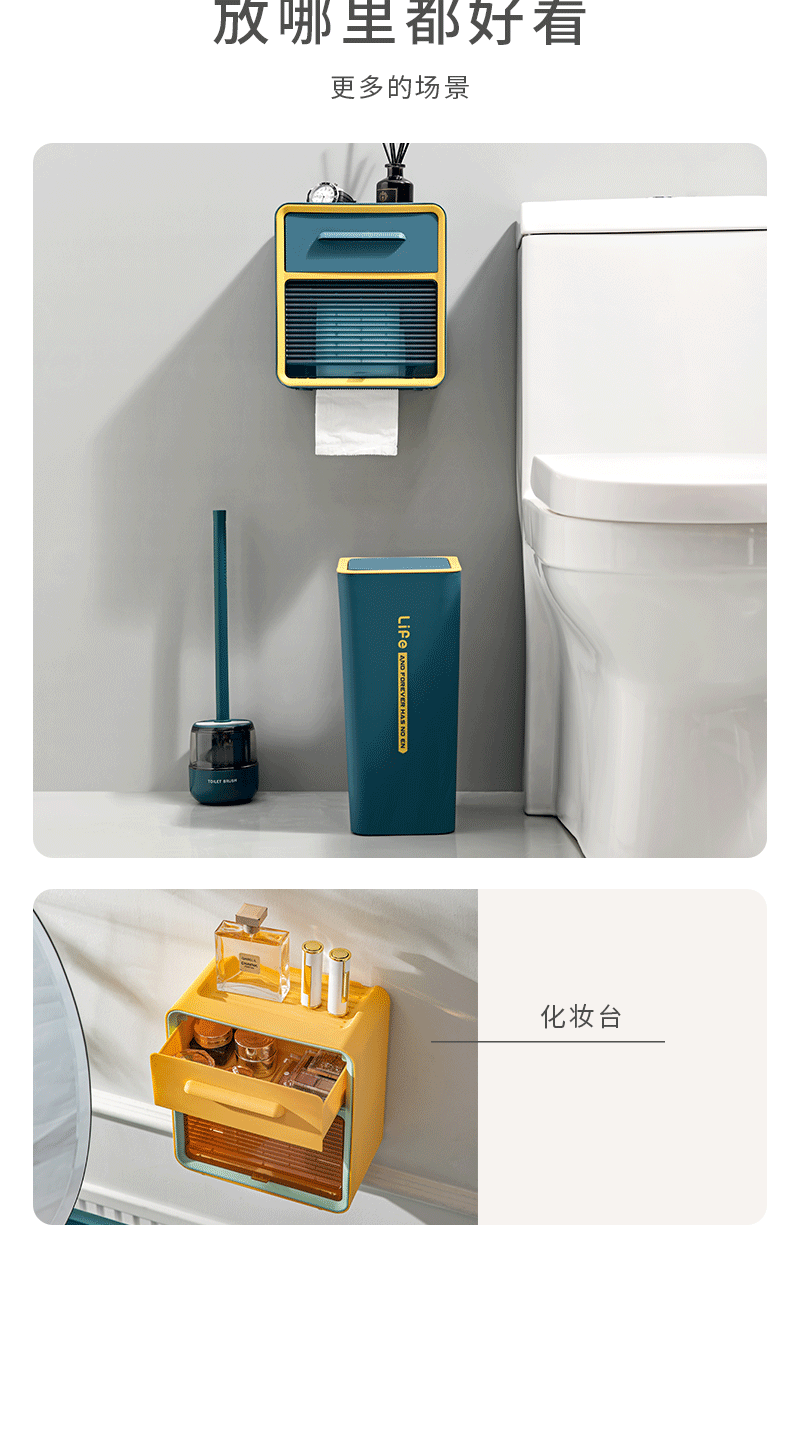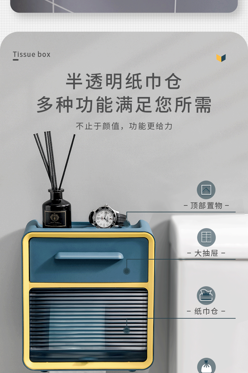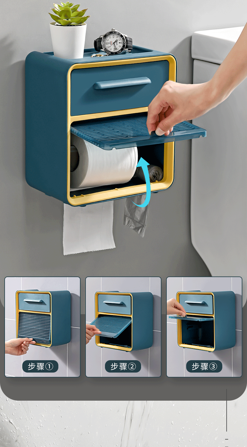 星优卫生间纸巾盒免打孔防水壁挂式卫生纸置物架卷纸盒厕所抽纸盒 经典蓝【升级款】
