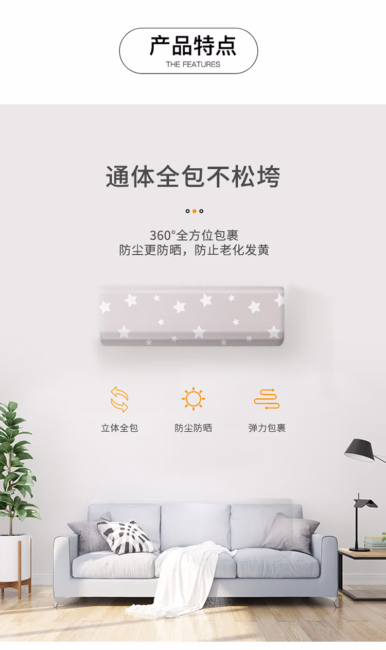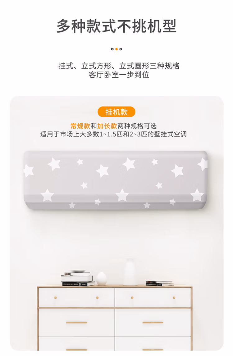 空调防尘罩家用挂机壁挂式柜机立式圆柱形布艺内机盖布套子袋罩子挂机常规款(灰色)