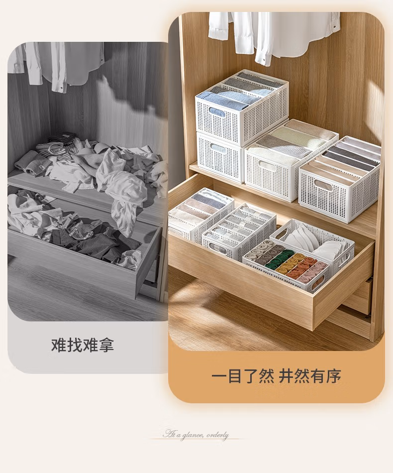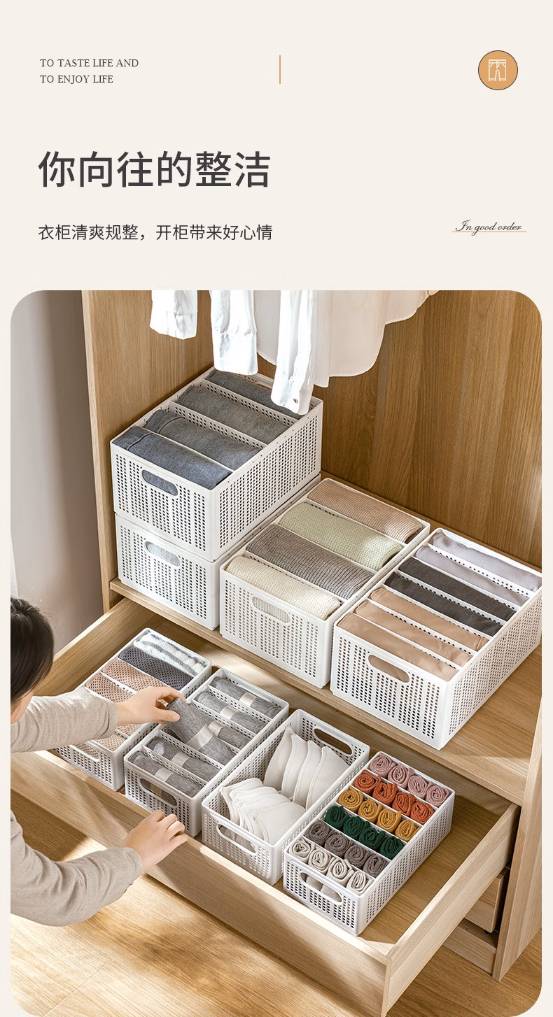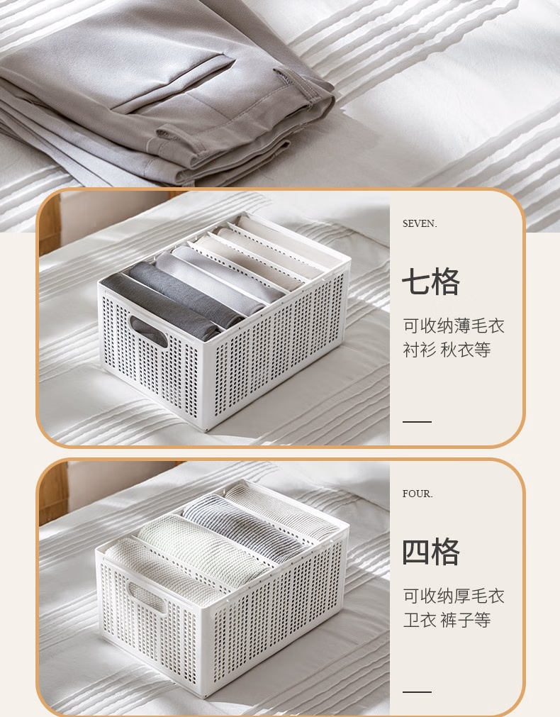 鲸言收纳盒裤子收纳神器衣物分格收纳箱衣柜抽屉衣服裤子可折叠分隔收纳储物整理箱 可折叠分隔收纳盒【大号7格】