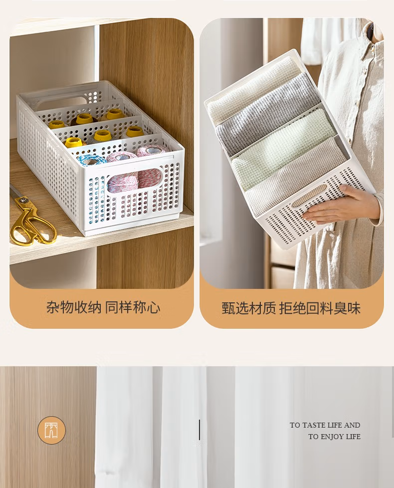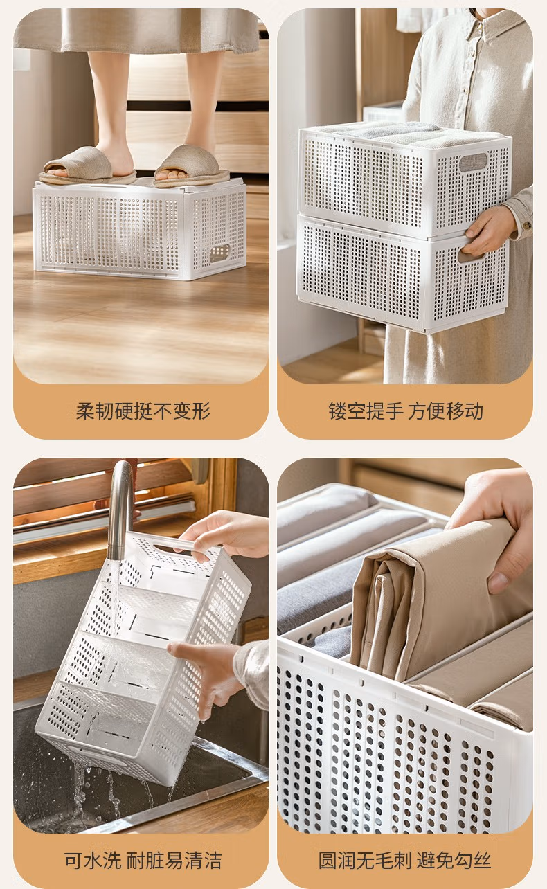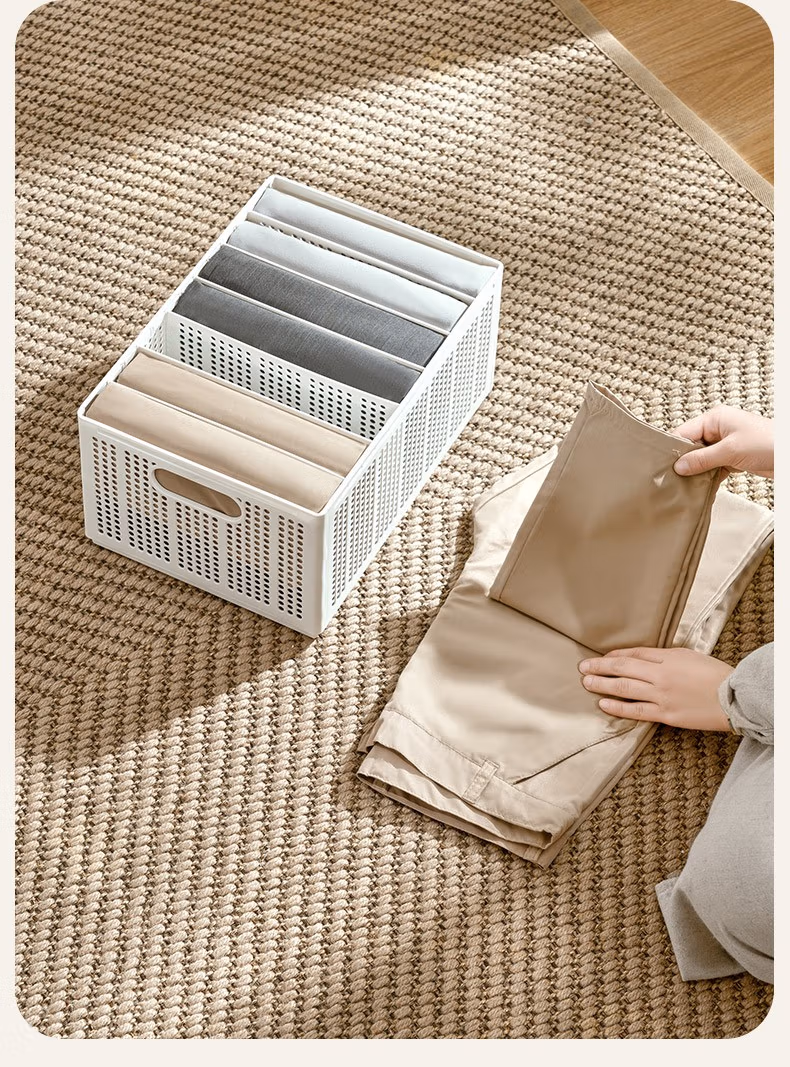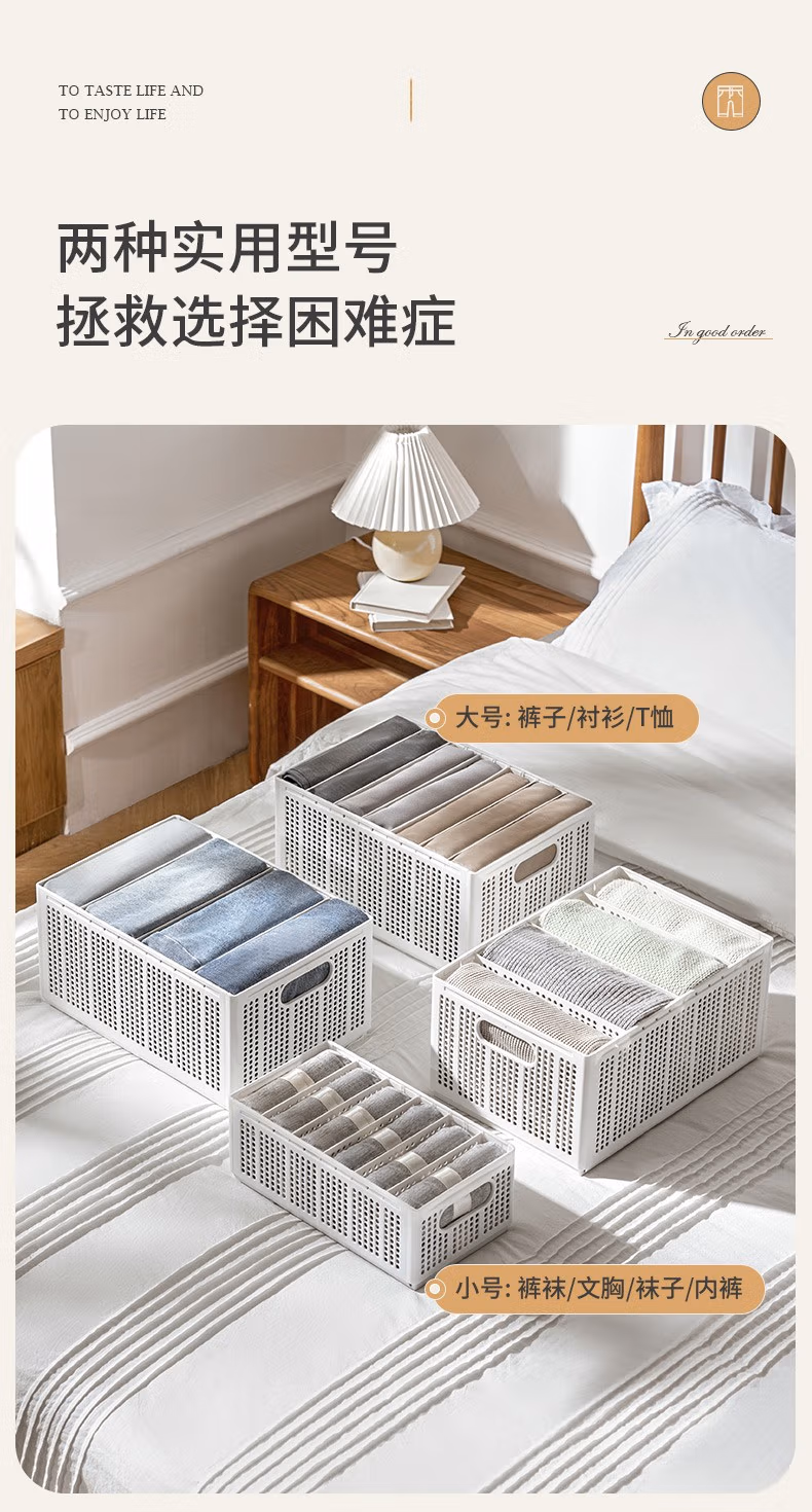 鲸言收纳盒裤子收纳神器衣物分格收纳箱衣柜抽屉衣服裤子可折叠分隔收纳储物整理箱 可折叠分隔收纳盒【大号7格】