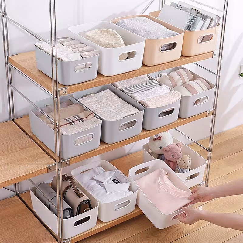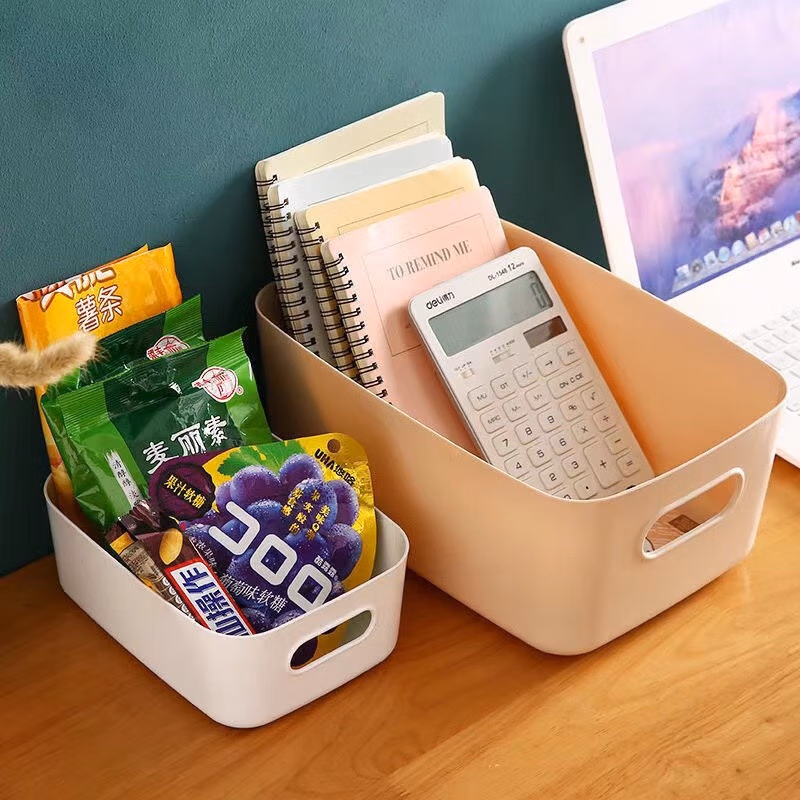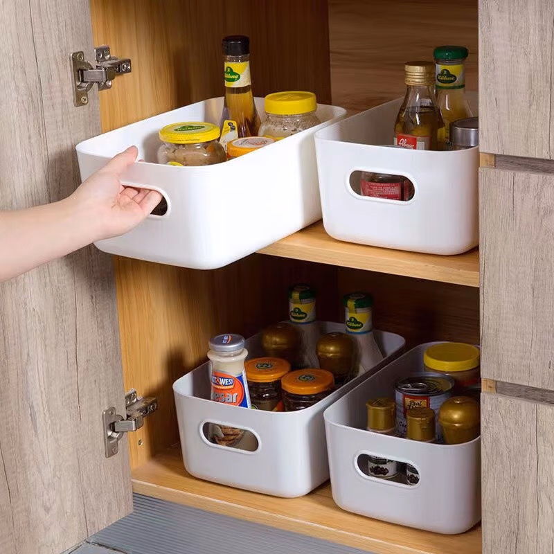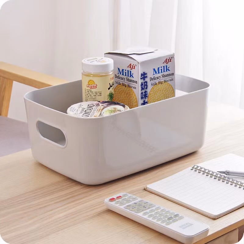 T.Sir杂物收纳盒桌面塑料方形收纳筐家用厨房整理化妆品零食收纳储物篮 3个【白色】