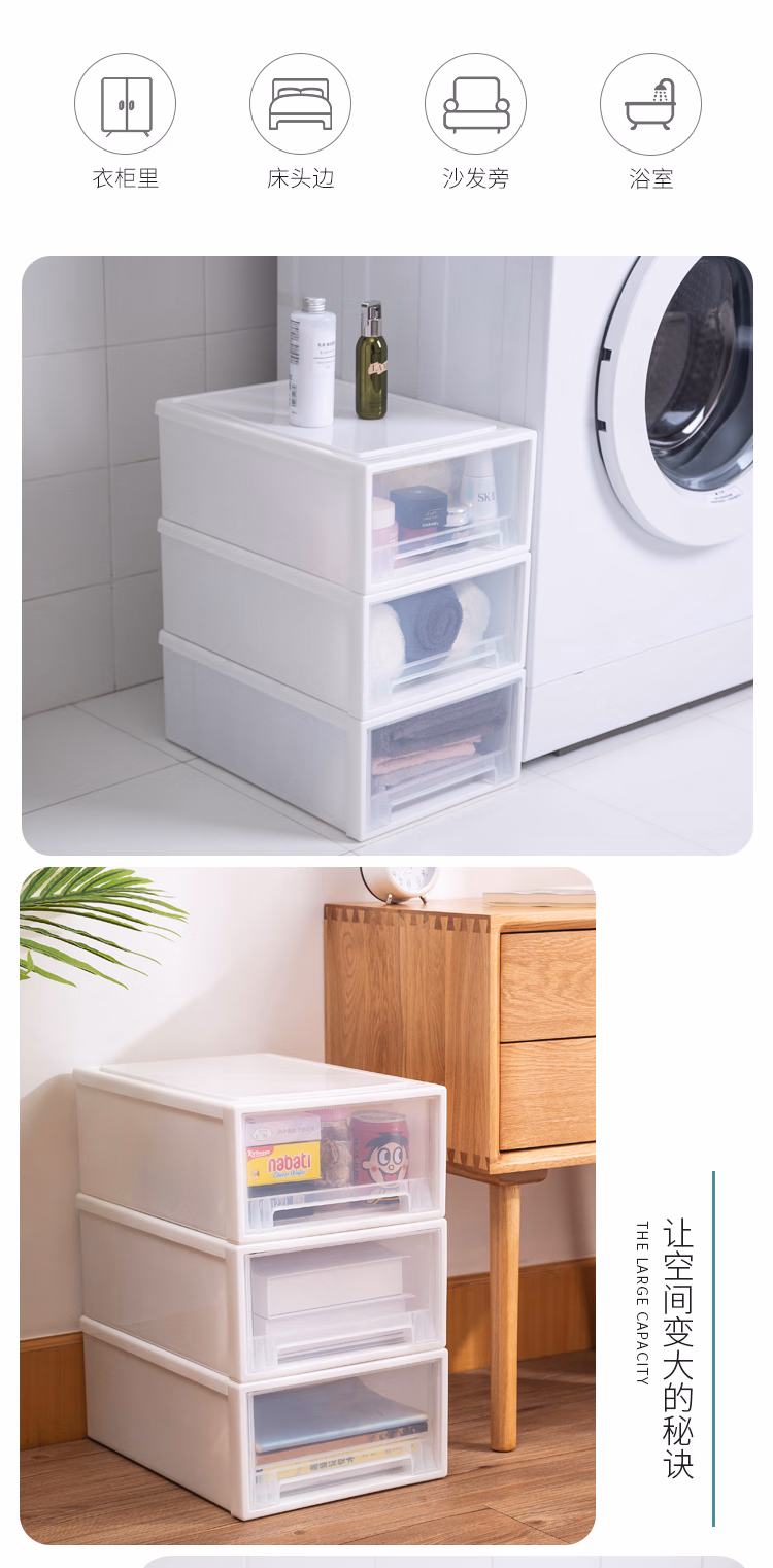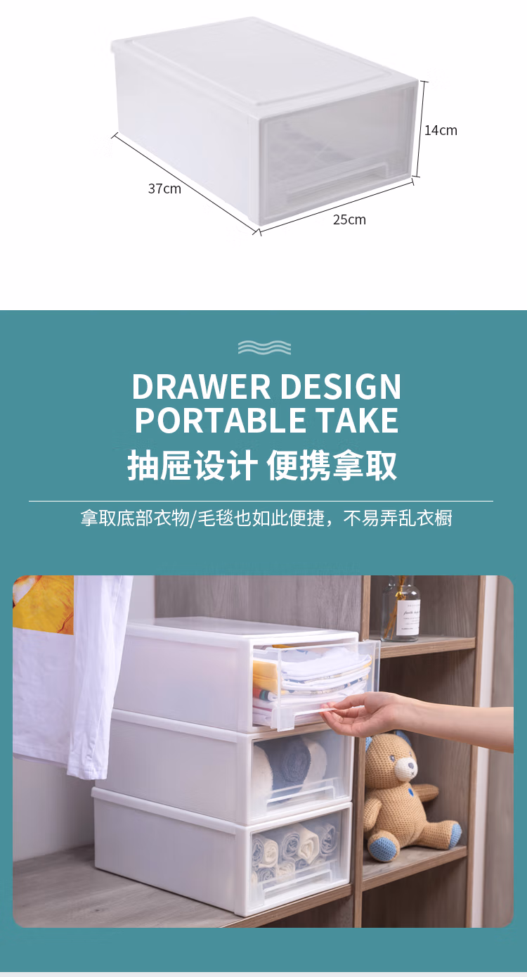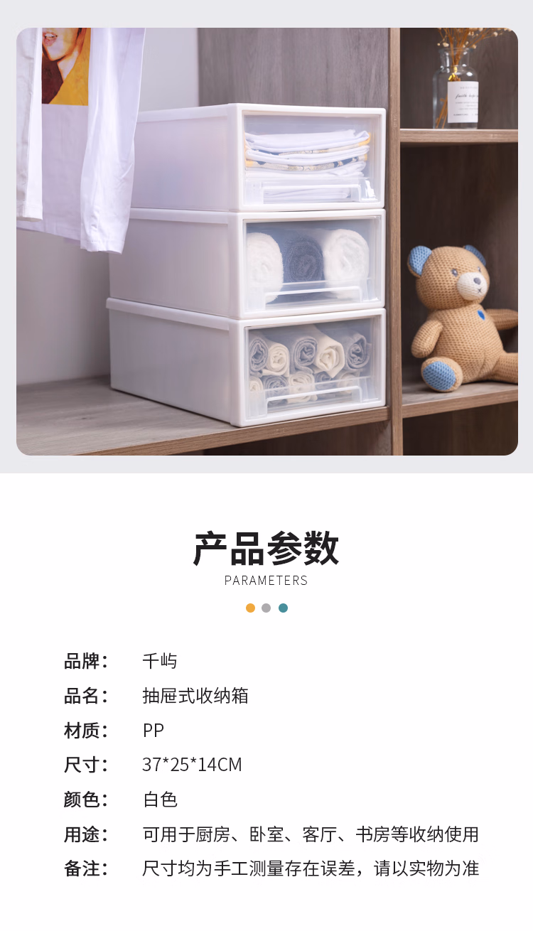 千屿13L大号抽屉式收纳盒抽屉柜宿舍神器单个衣柜整理箱桌面收纳箱塑料宝宝儿童透明储物柜子1个装