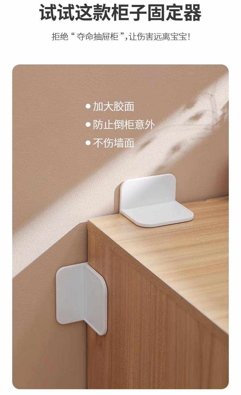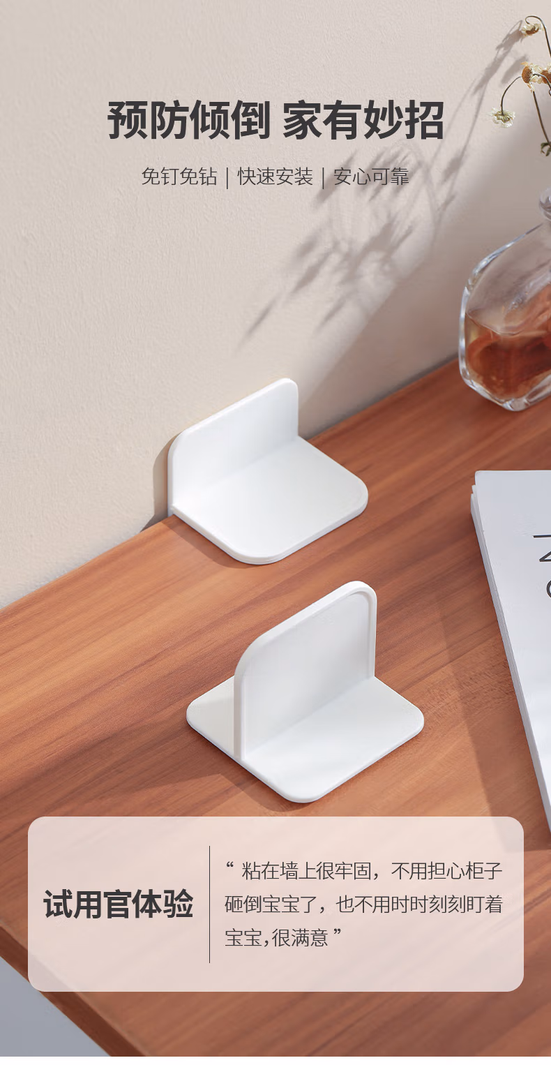 柯锐迩家具防倾倒固定器【2个装】 橱柜鞋柜书架防倒神器 免打孔柜子防倒固定神器