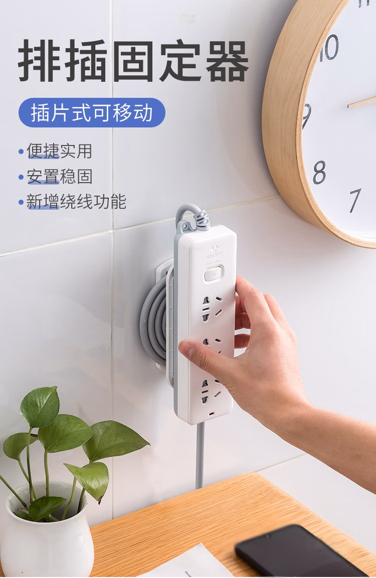 家の物语排插固定器插座插线板路由器无痕免打孔墙壁走线神器电线理线墙上贴置物架 排插固定器(绕线款)
