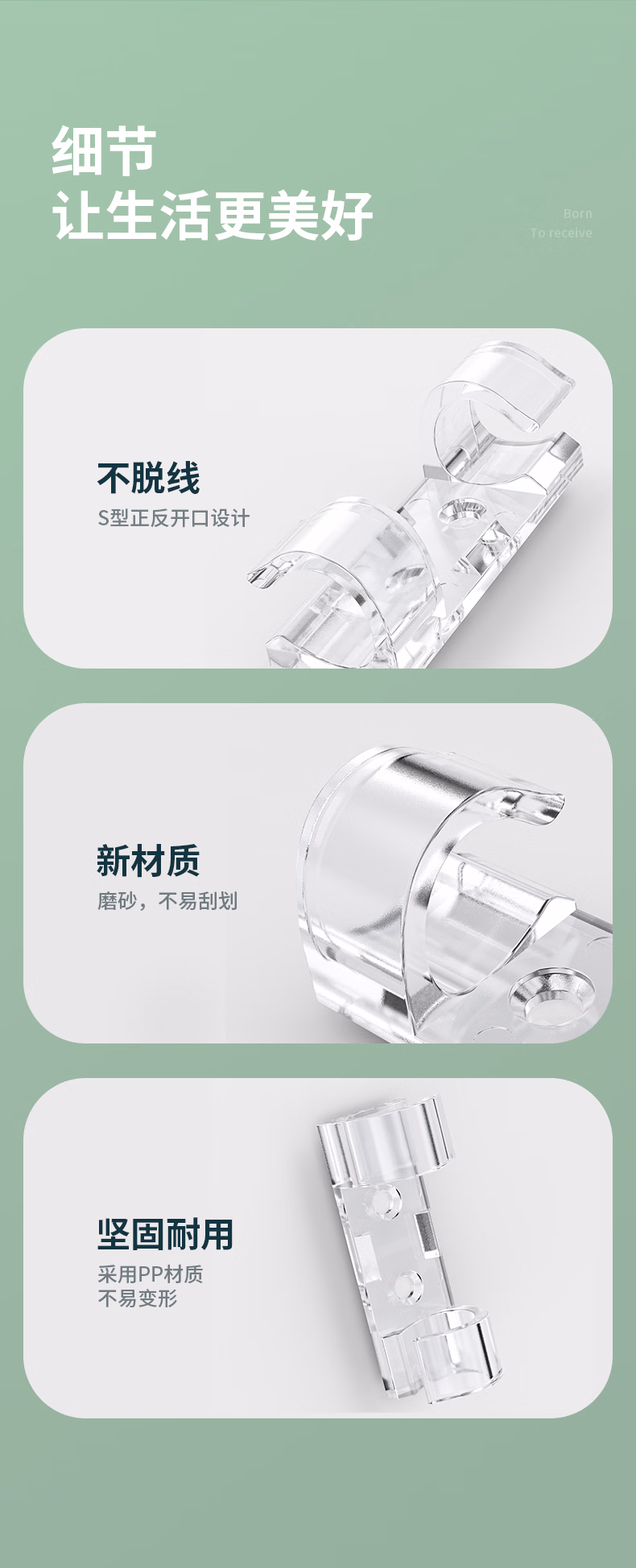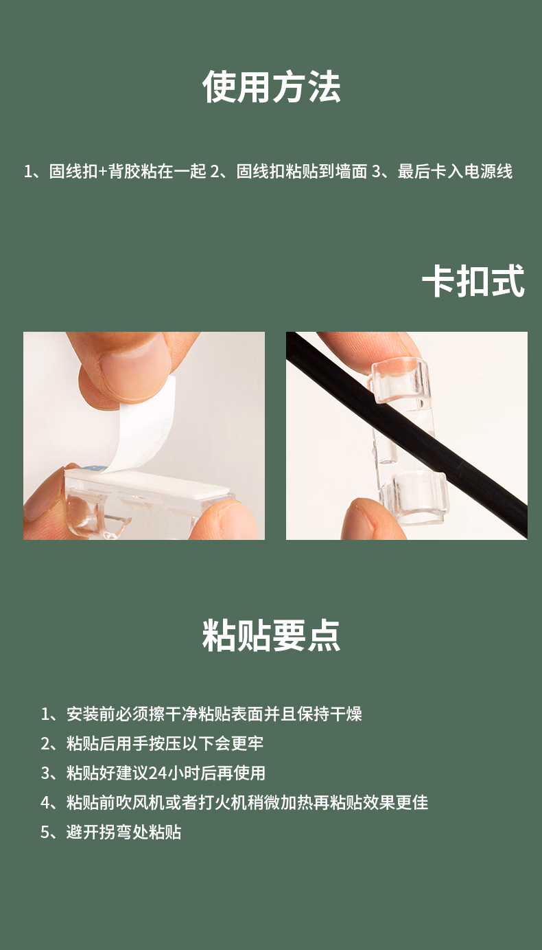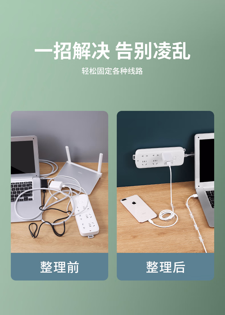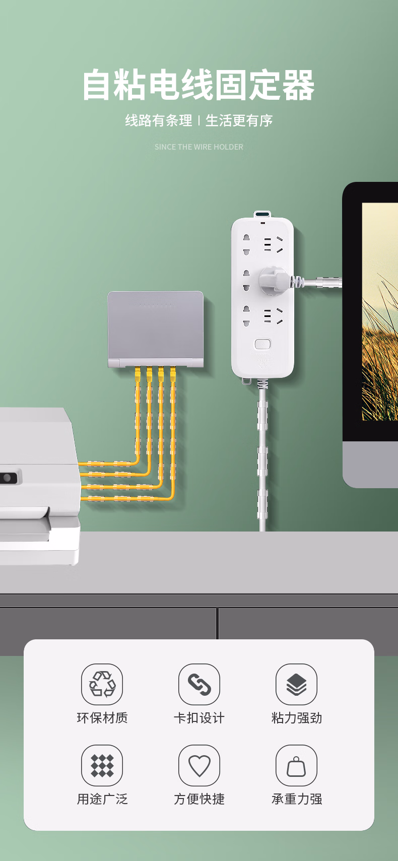 领臣理线器【升级两用款强力背胶】电线固定扣免钉无痕卡线扣网线卡扣自粘神器卡子 50个中号透明款
