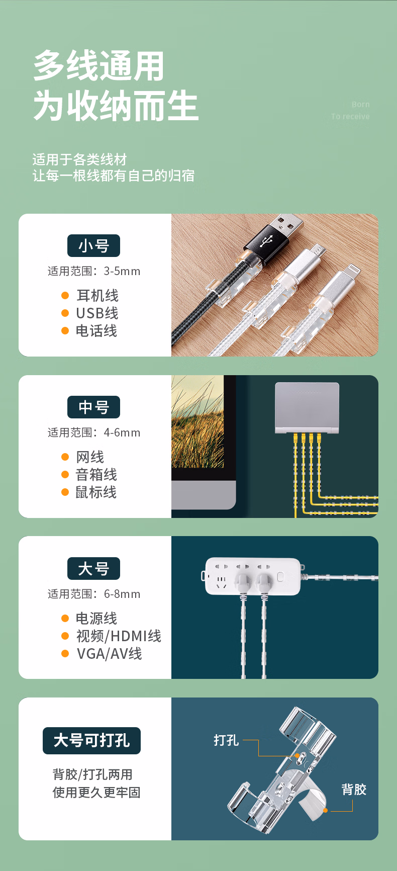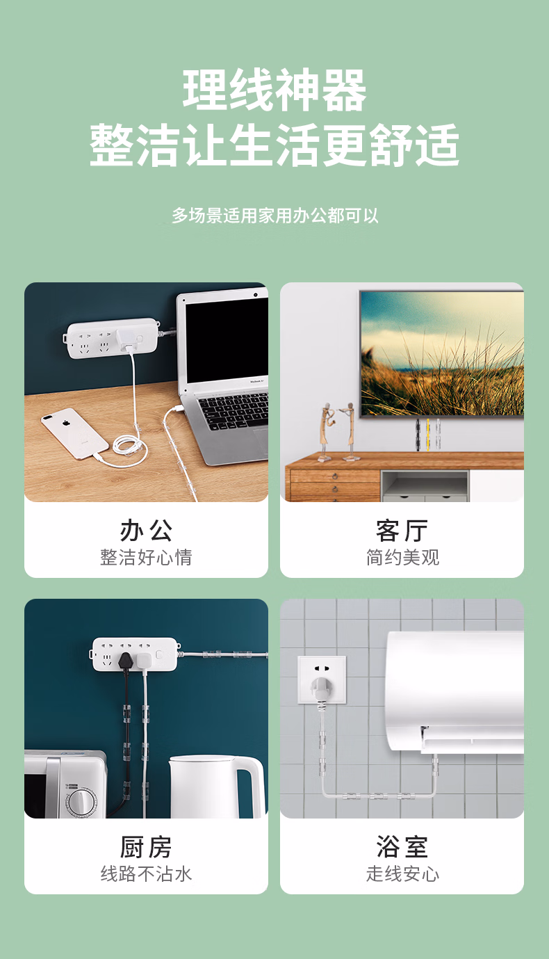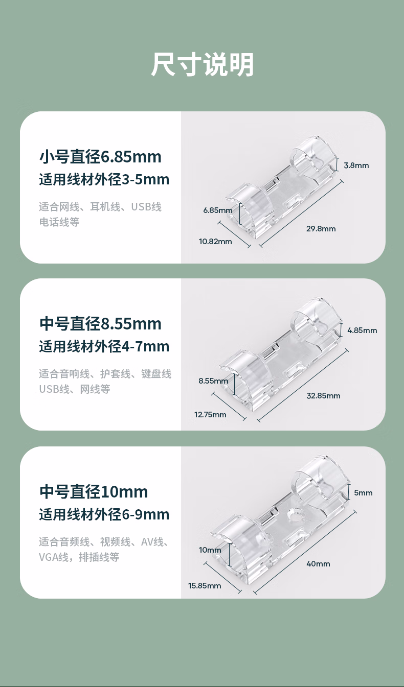 领臣理线器【升级两用款强力背胶】电线固定扣免钉无痕卡线扣网线卡扣自粘神器卡子 50个中号透明款