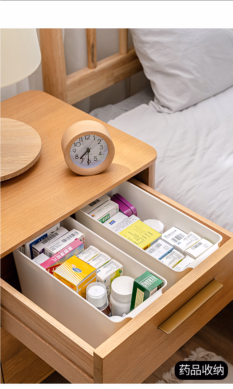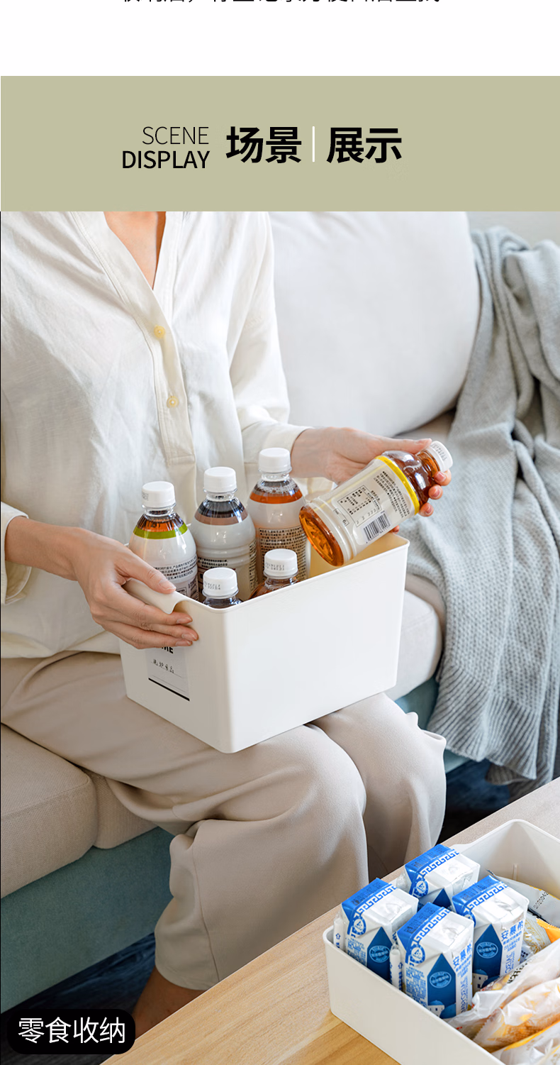百露杂物收纳盒北欧ins厨房橱柜收纳筐桌面面膜零食化妆品储物盒子办公桌收纳圆孔宽型大号收纳盒白