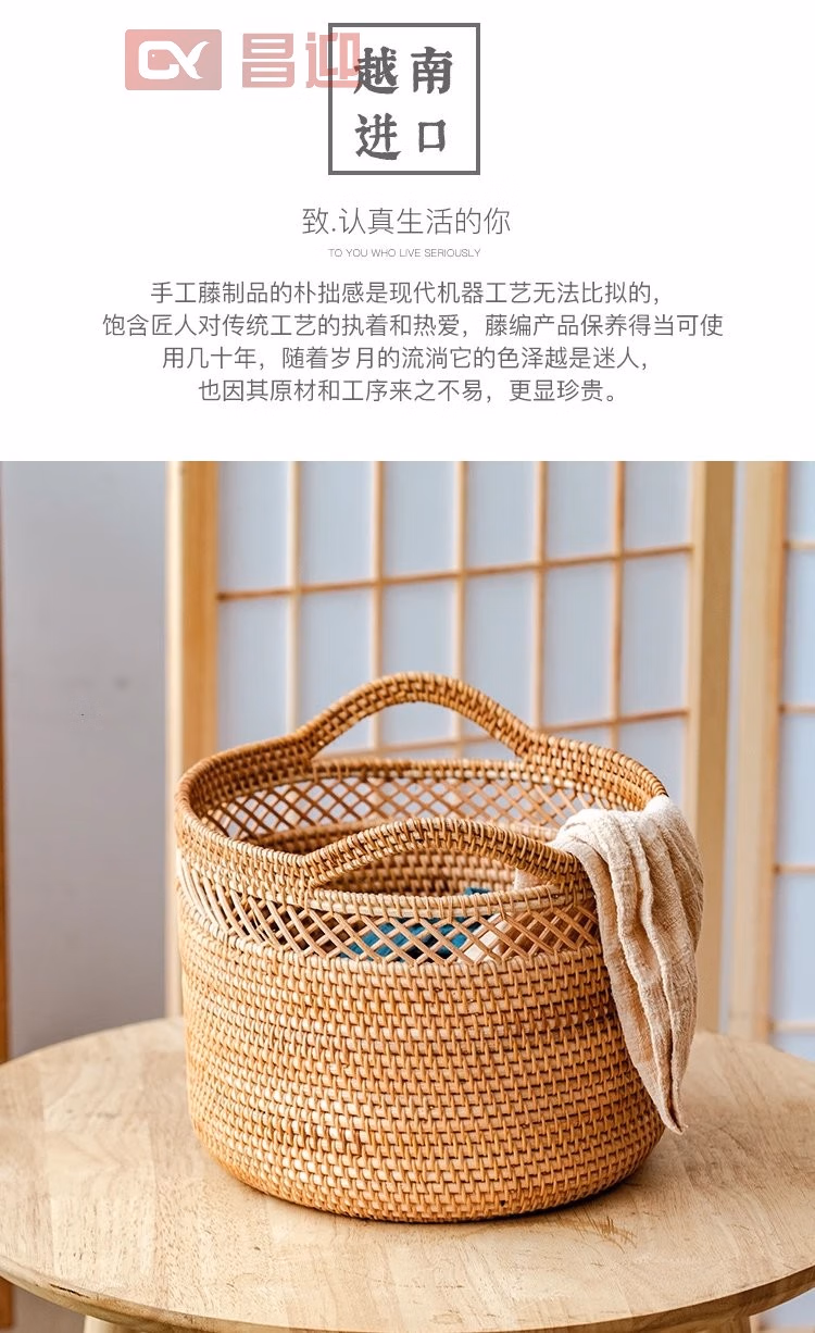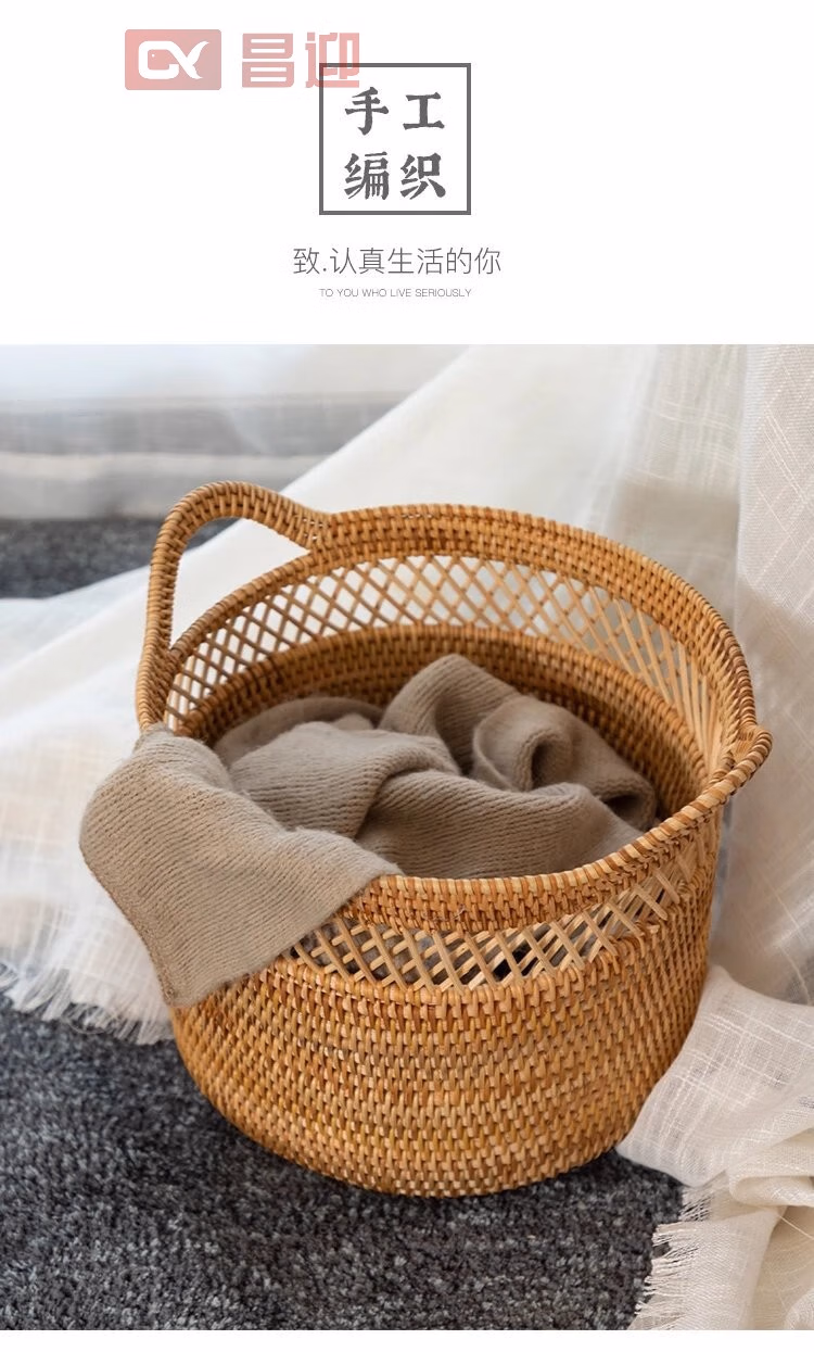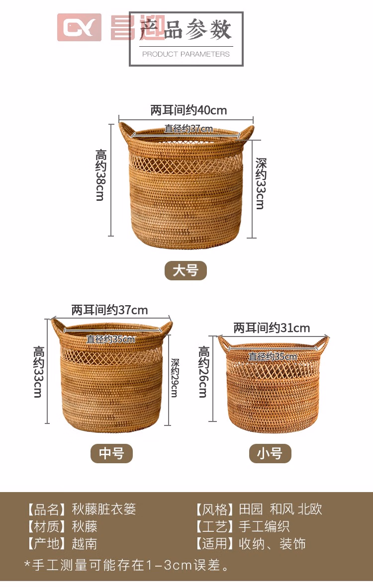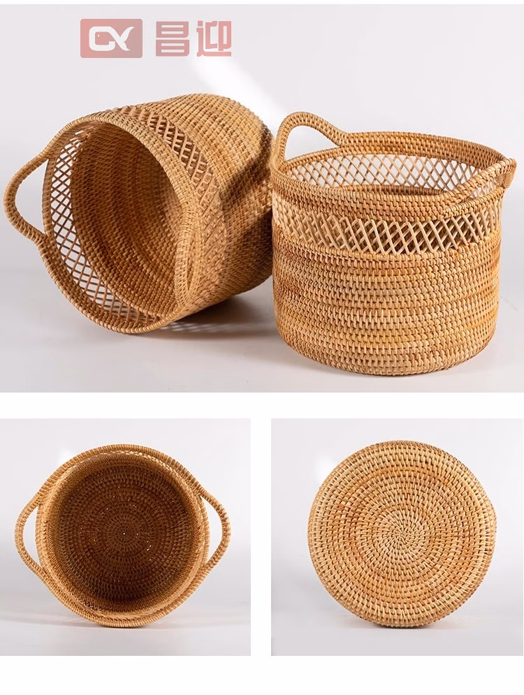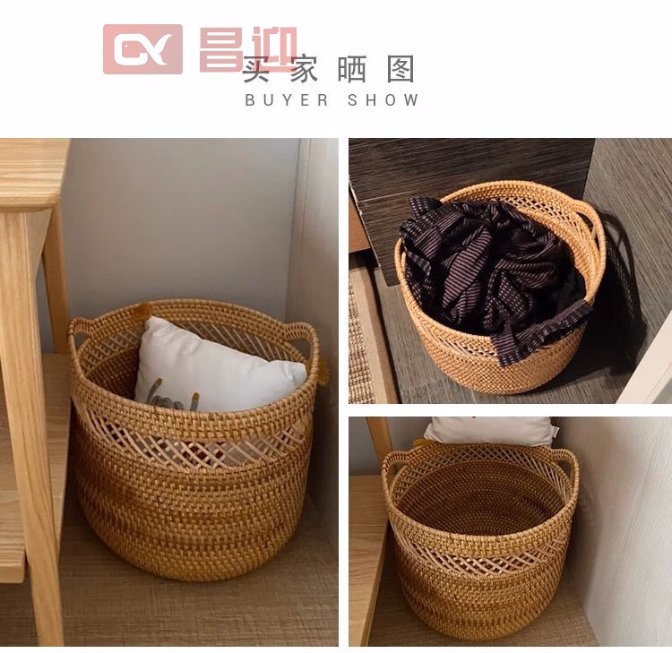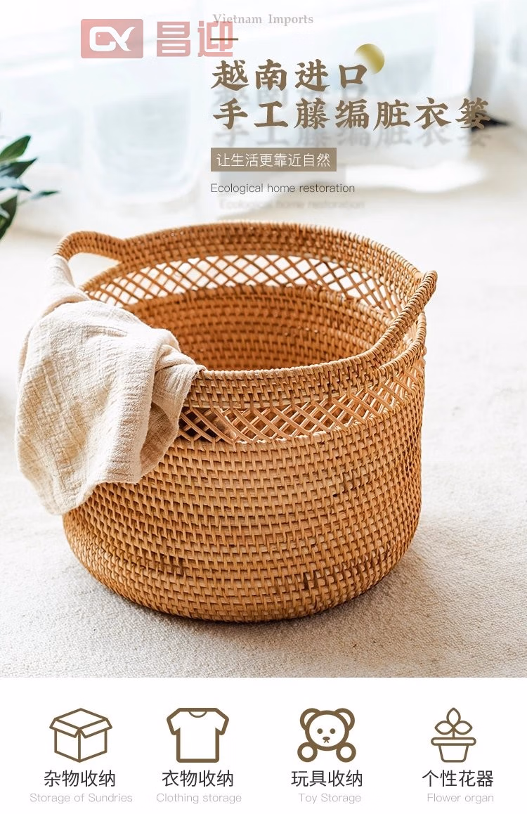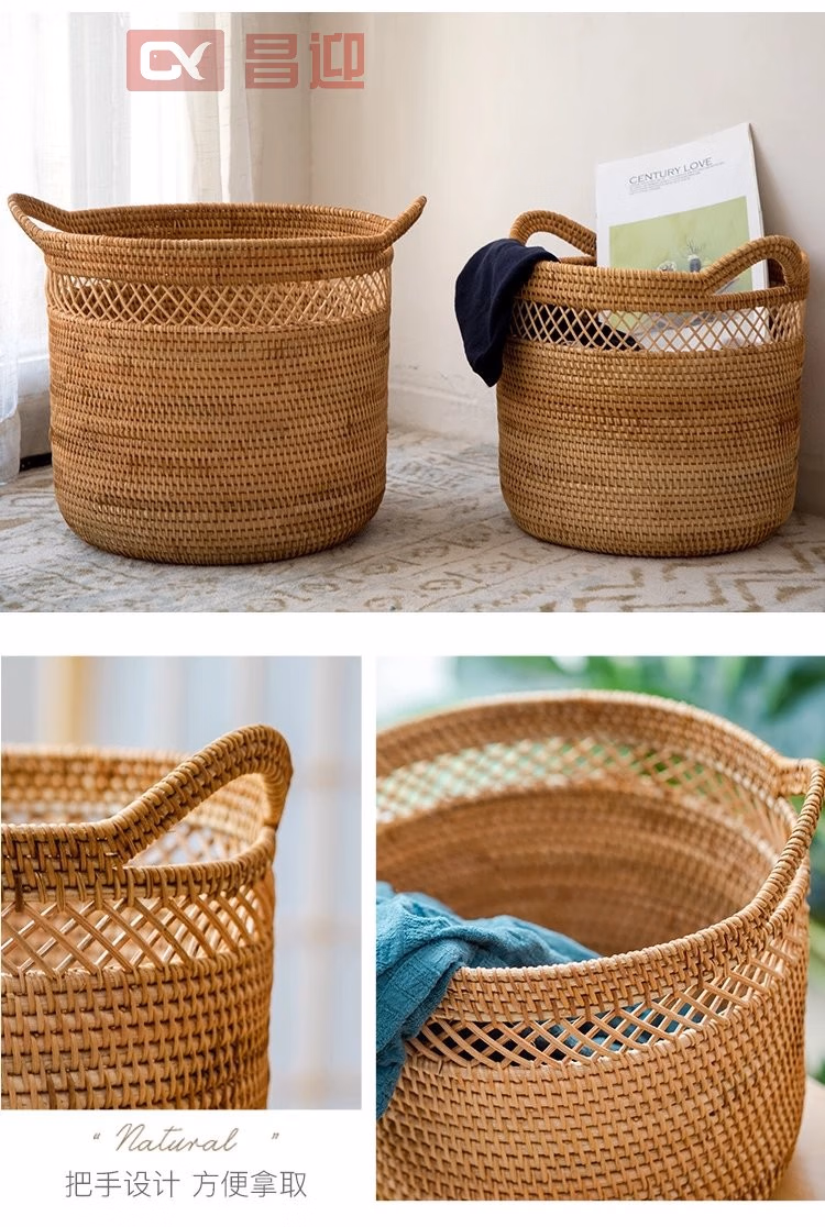 昌迎晚上睡觉放衣服床边放衣服神器 藤编脏衣篮脏衣服收纳筐浴室家用脏衣篓放衣物收纳桶洗衣篮子20 镂空小号 高27cm口直径29cm