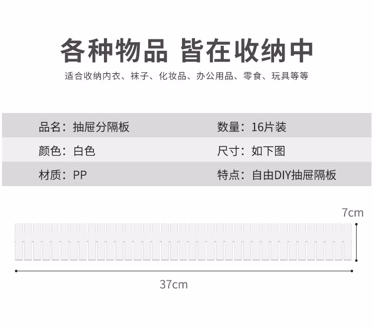 侑家良品【16片装】加厚收纳隔板抽屉分类收纳分隔板自由组合分格收纳