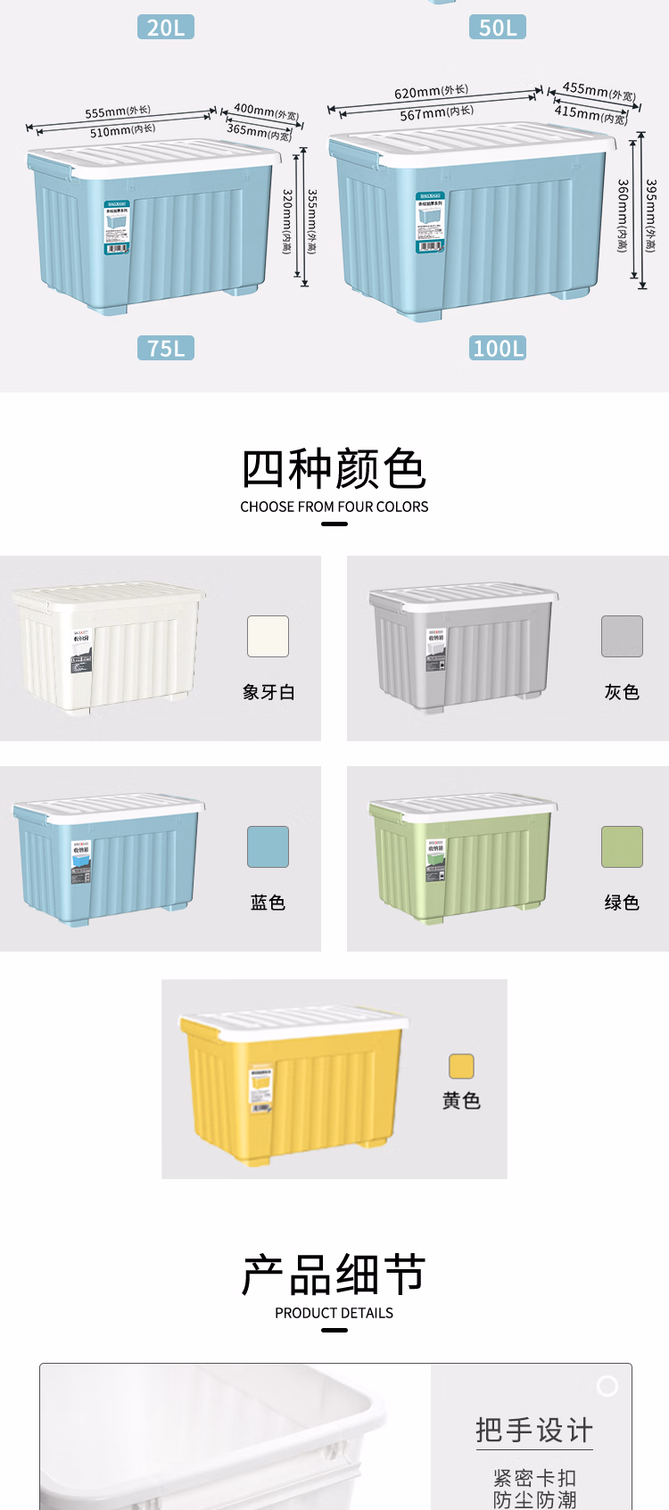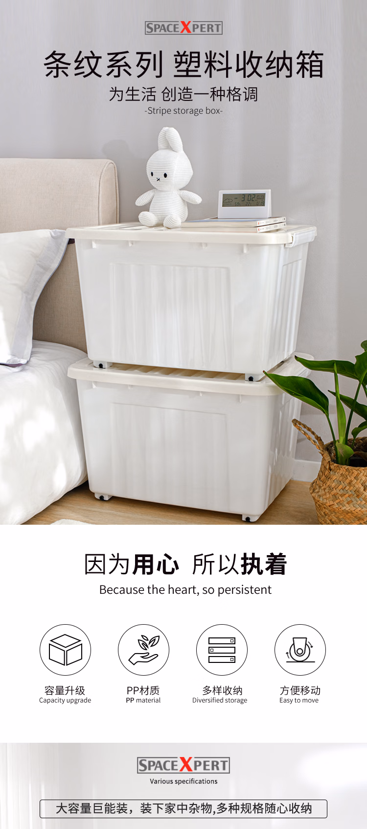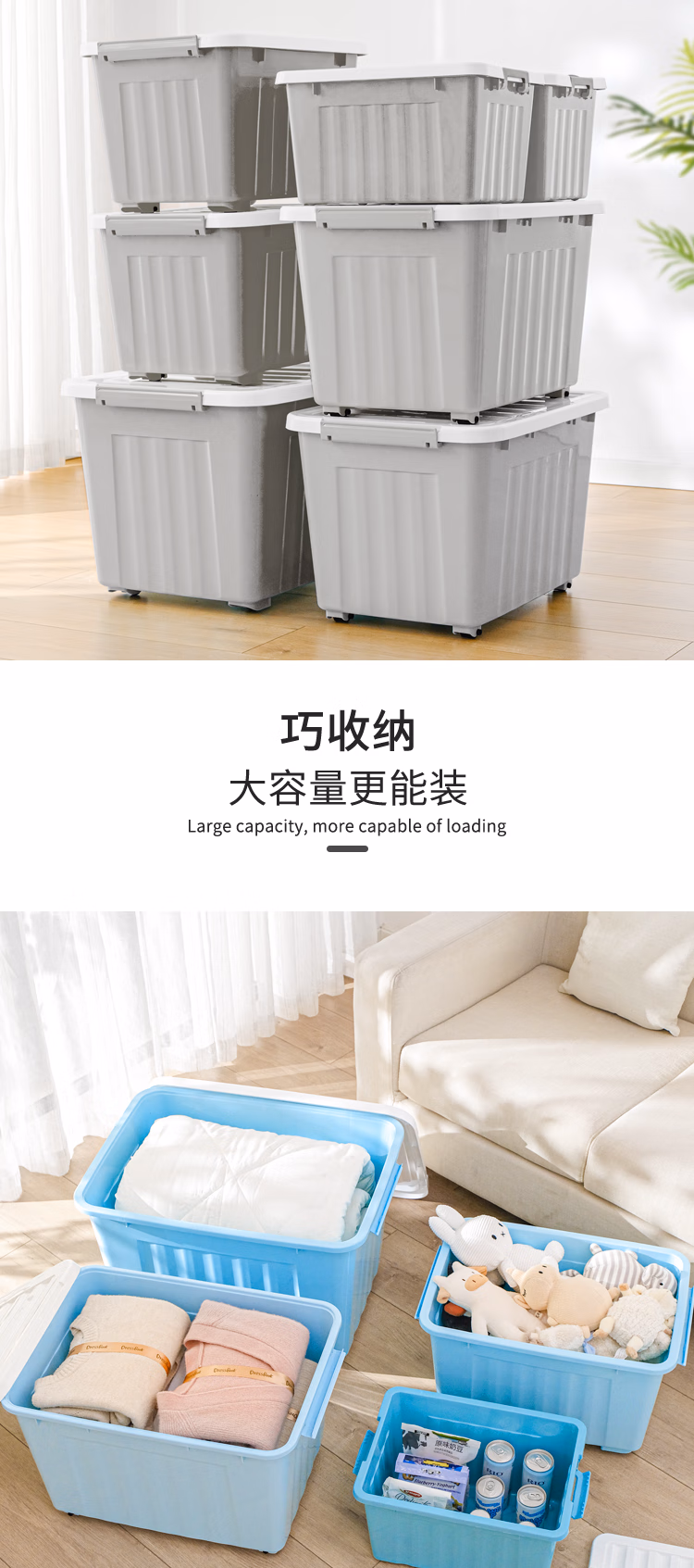 SPACEXPERT加厚塑料收纳箱 20L蓝色 加厚衣服被子整理箱储物箱儿童玩具收纳盒搬家箱打包箱子