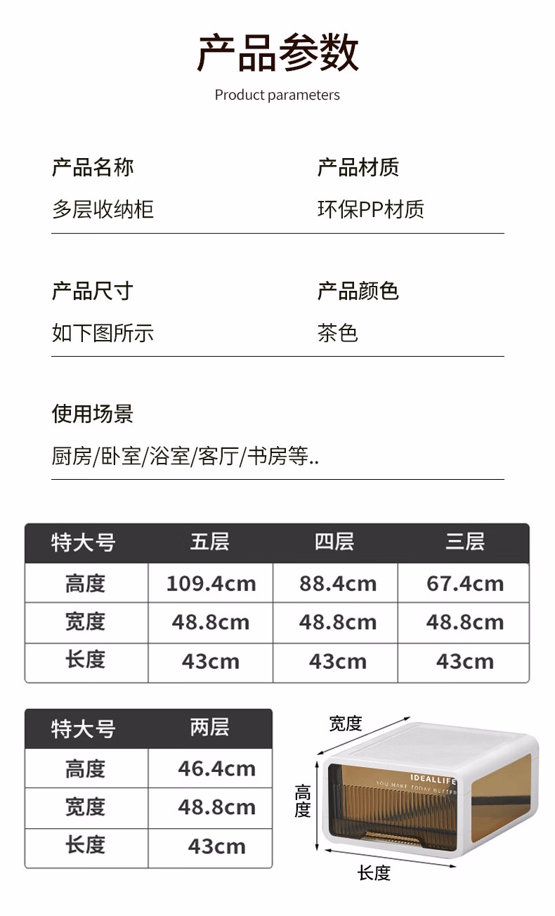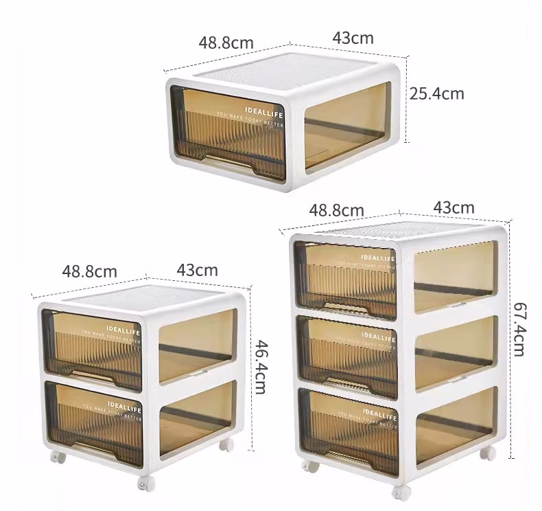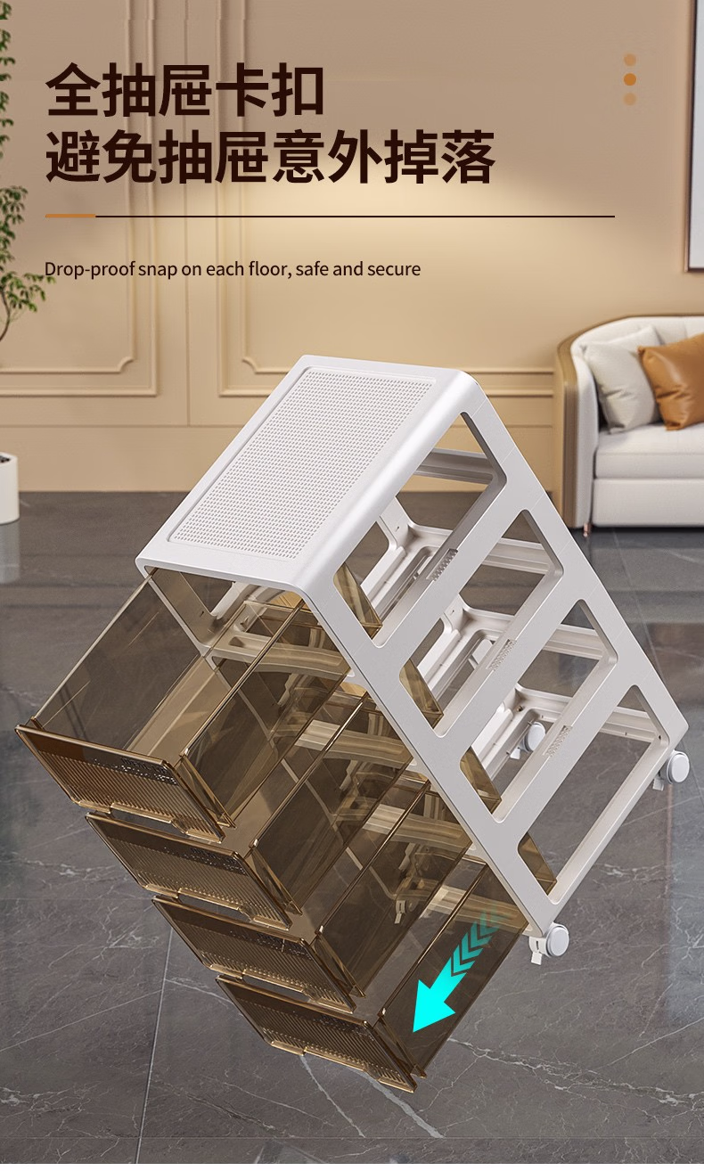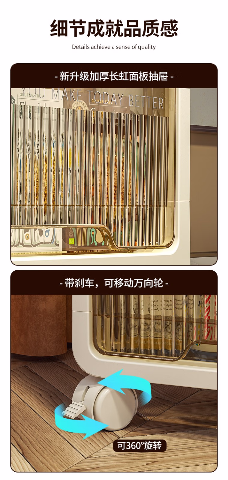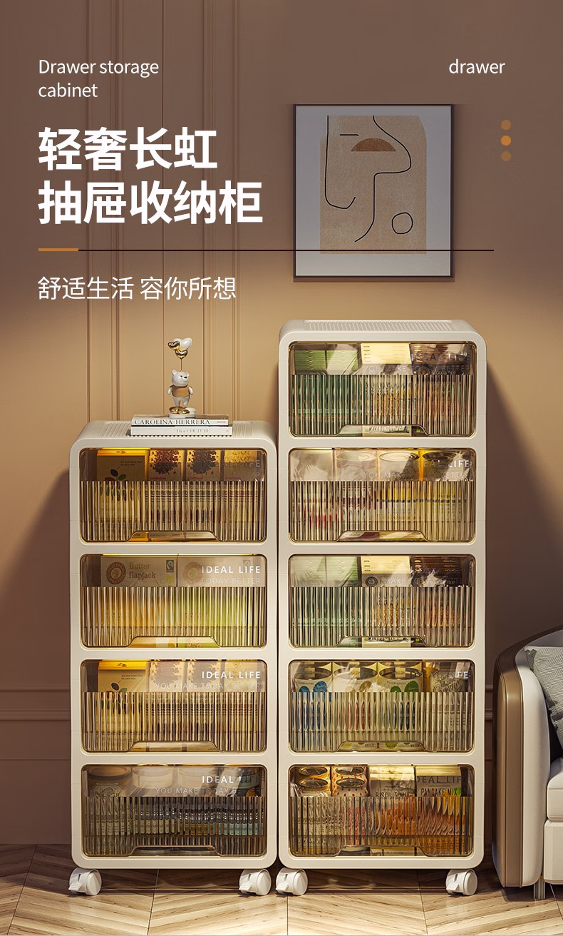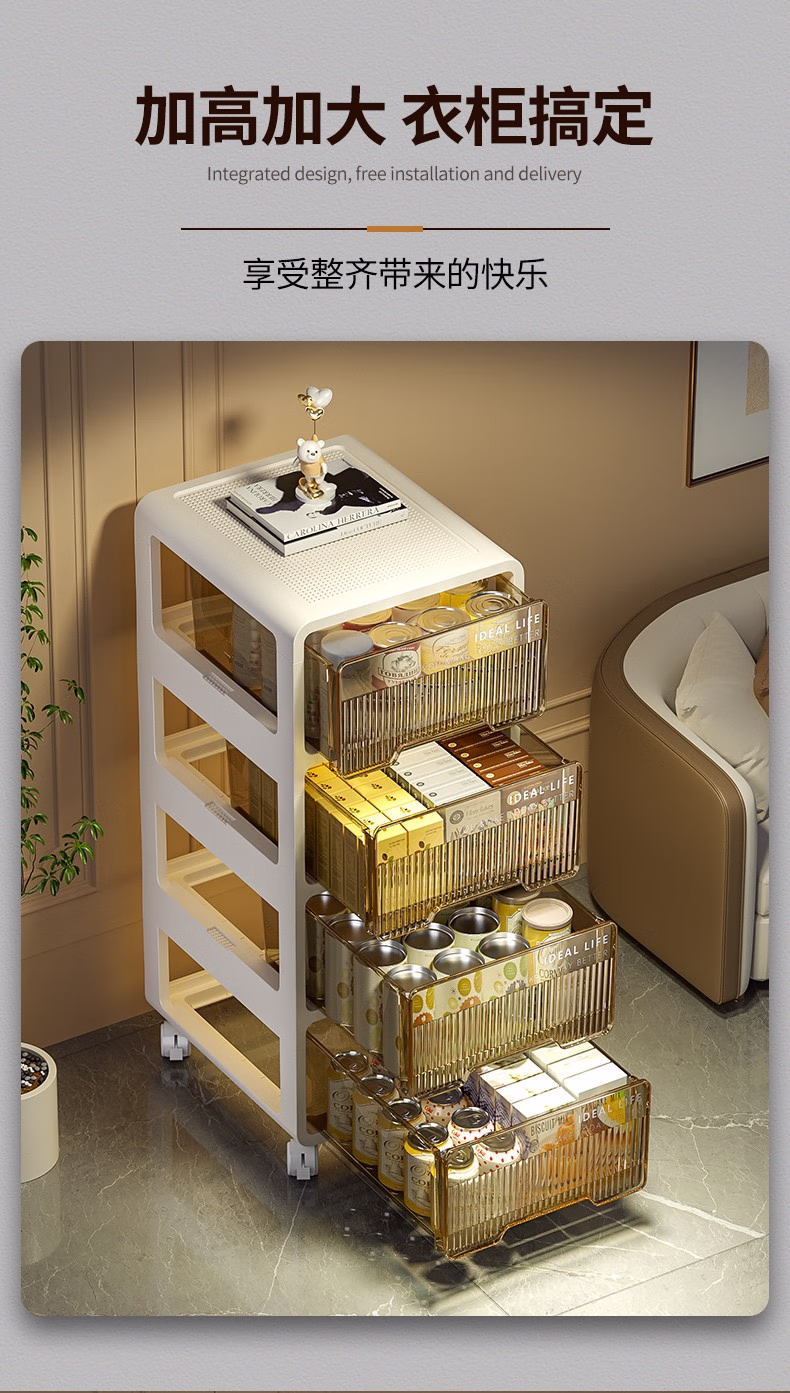 KAMAN抽屉式收纳柜轻奢床头柜家用客厅整理箱置物柜免安装零食柜 1层特大号【免安装/加厚加固/可叠加】