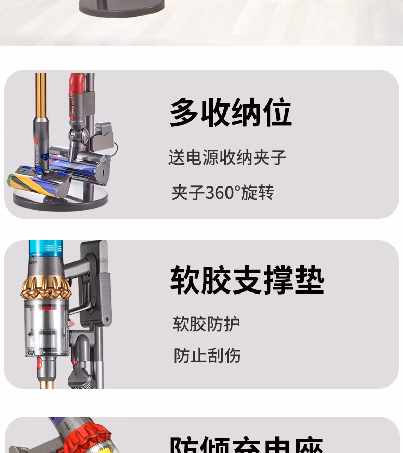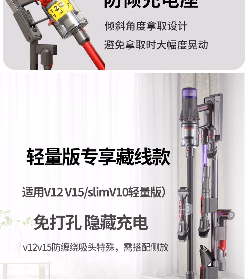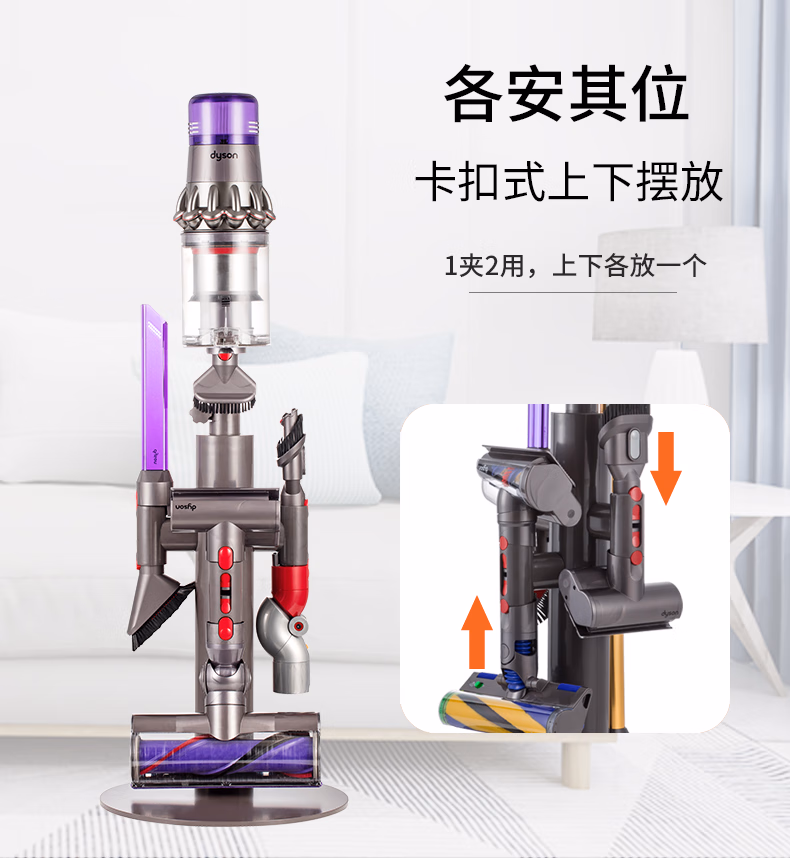 思隆适配戴森吸尘器支架收纳架v7 v8 v10 v11 v12 v15slim置物免打孔充电挂架子 [超值尊享版]电源夹 2个收纳夹(适配戴森全系列)