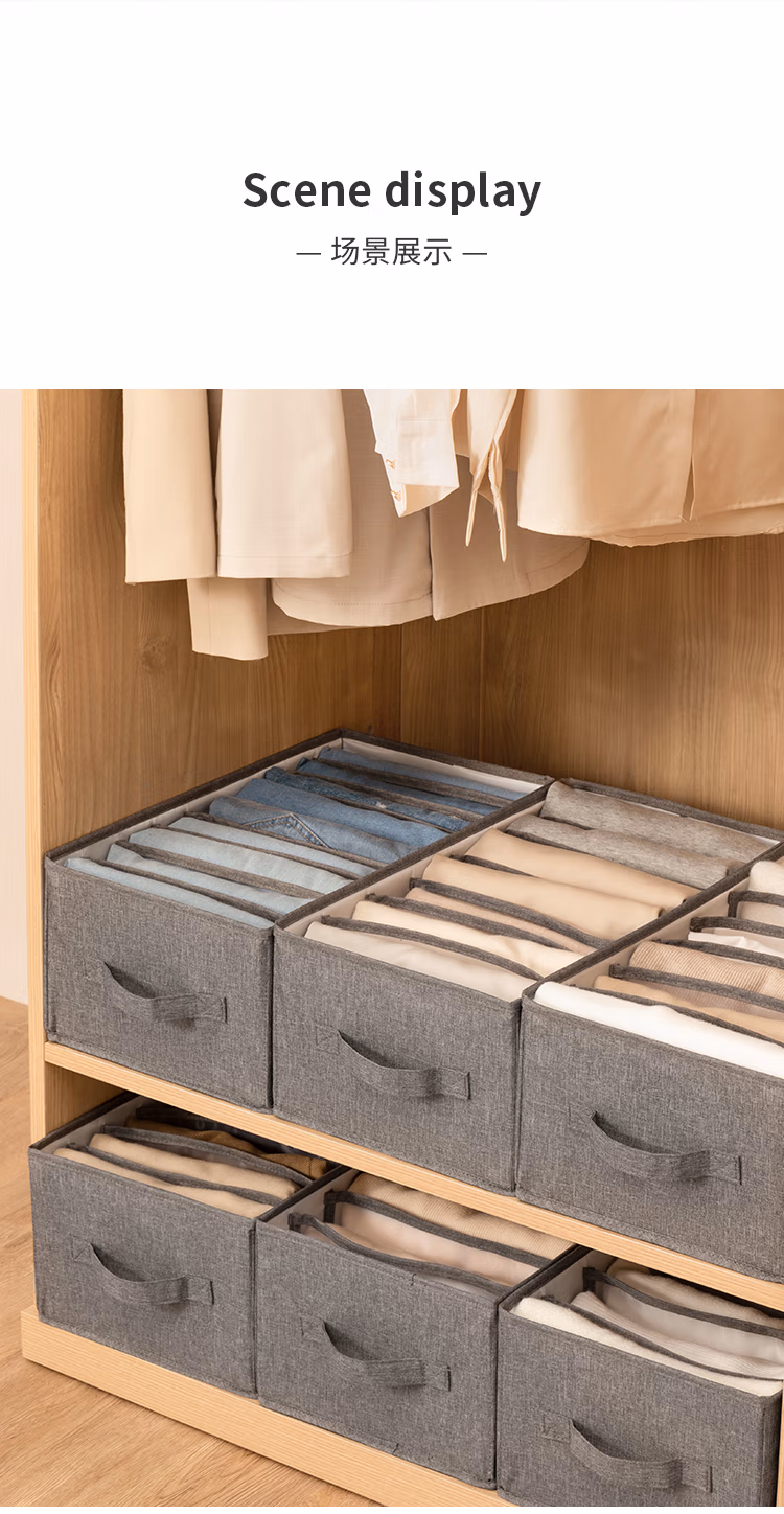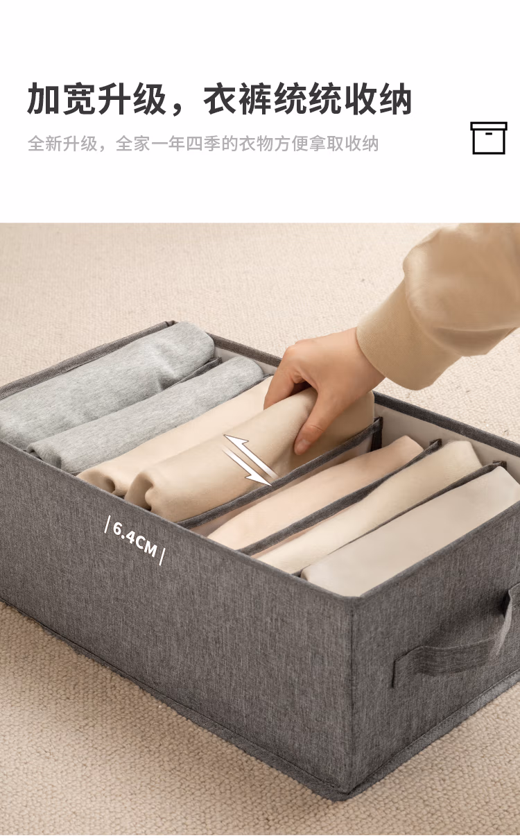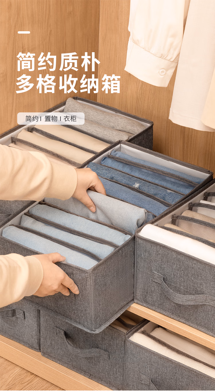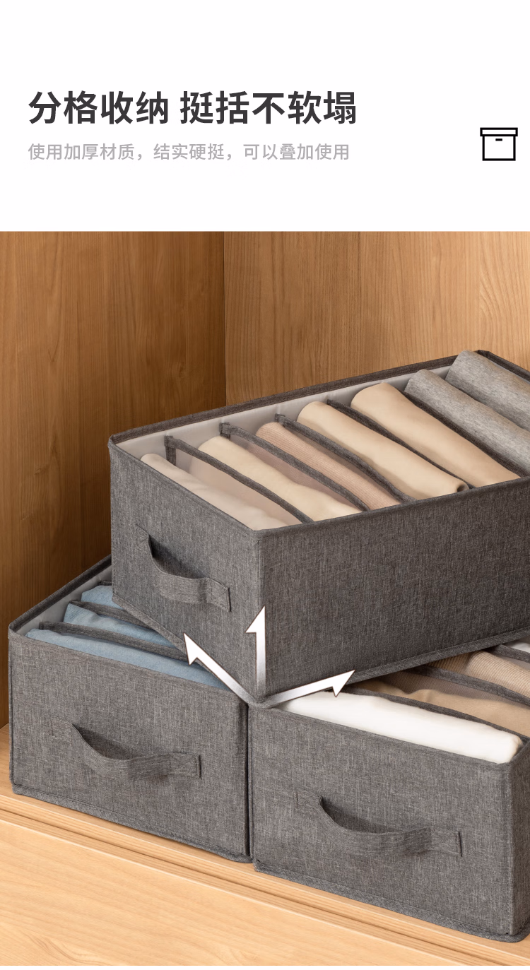 EACHY衣服裤子收纳盒子衣柜收纳神器分隔牛仔裤分格整理收纳箱套装 深灰-7格【格宽6.4 收纳长裤/牛仔裤】